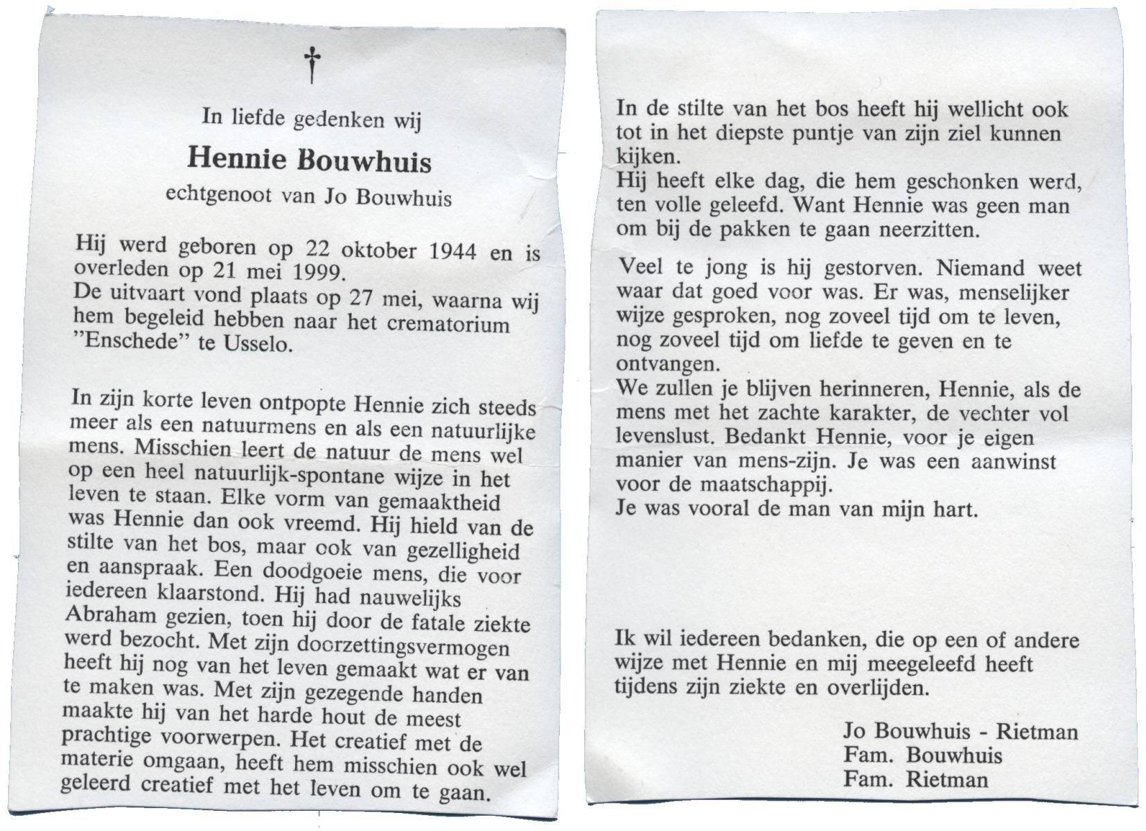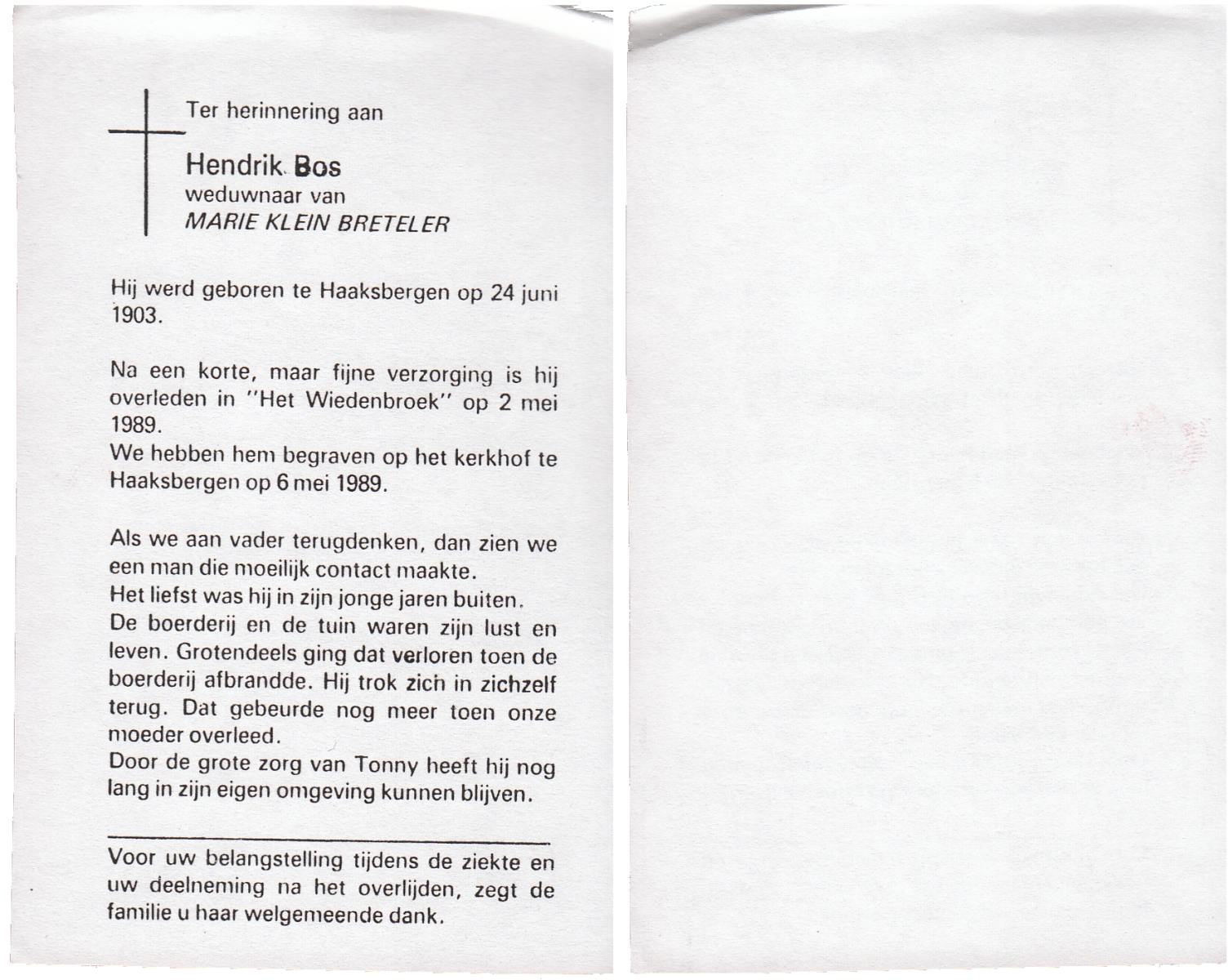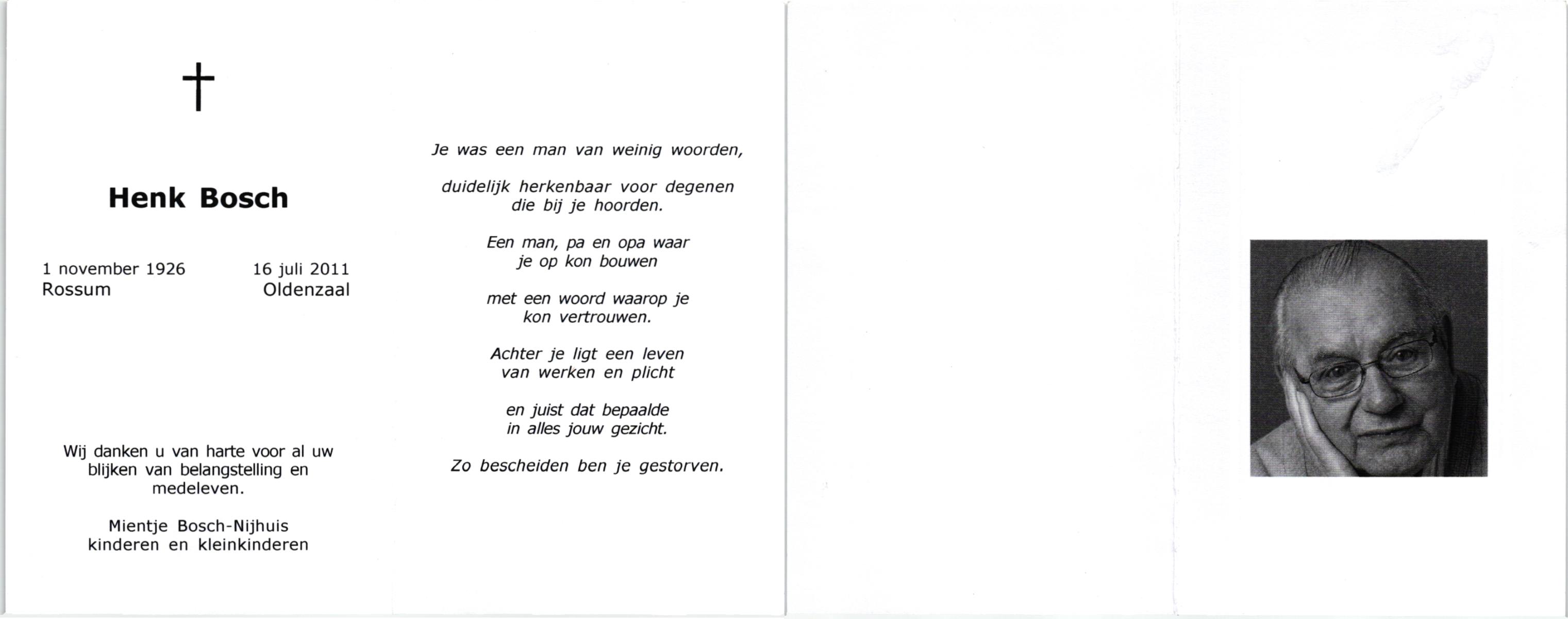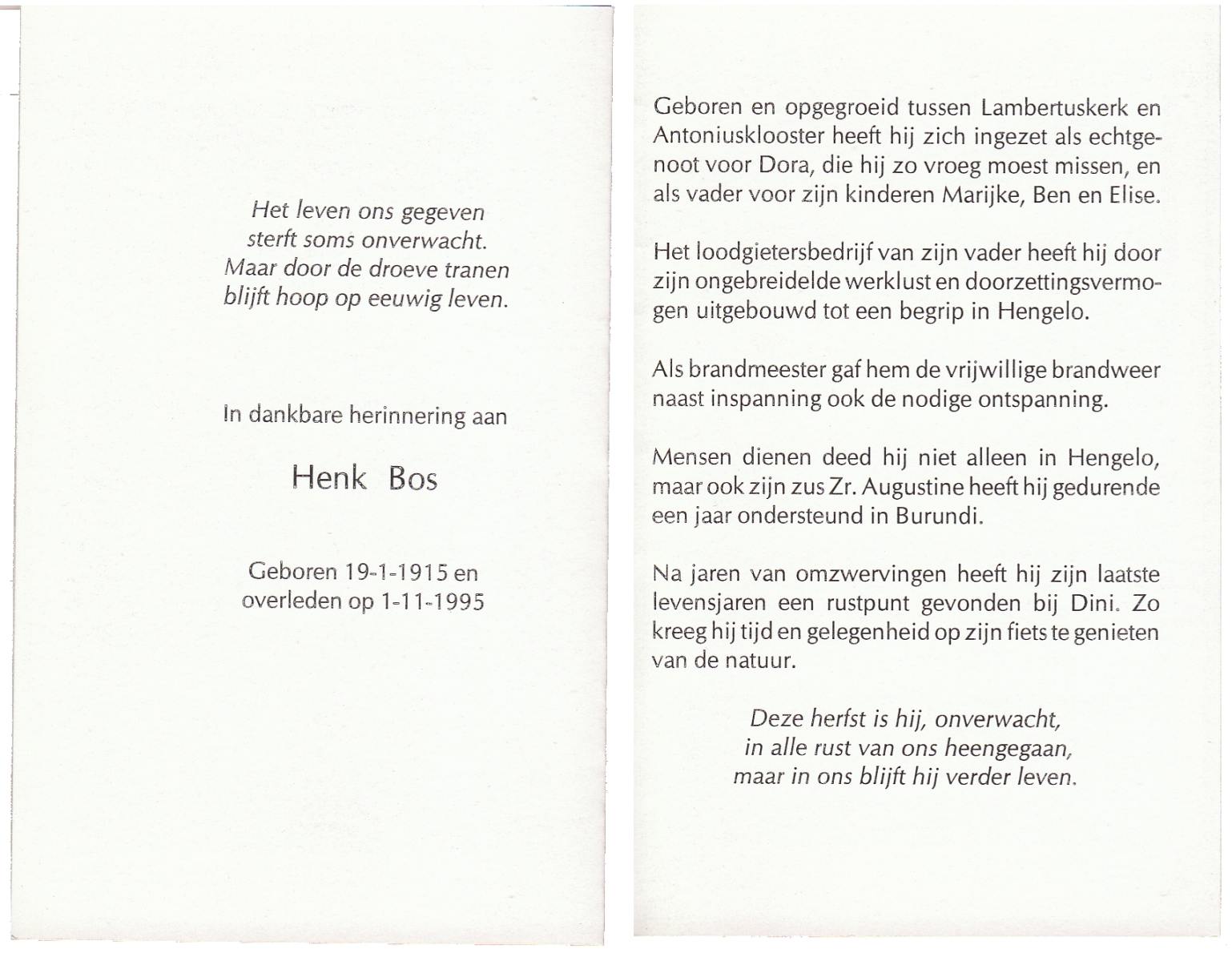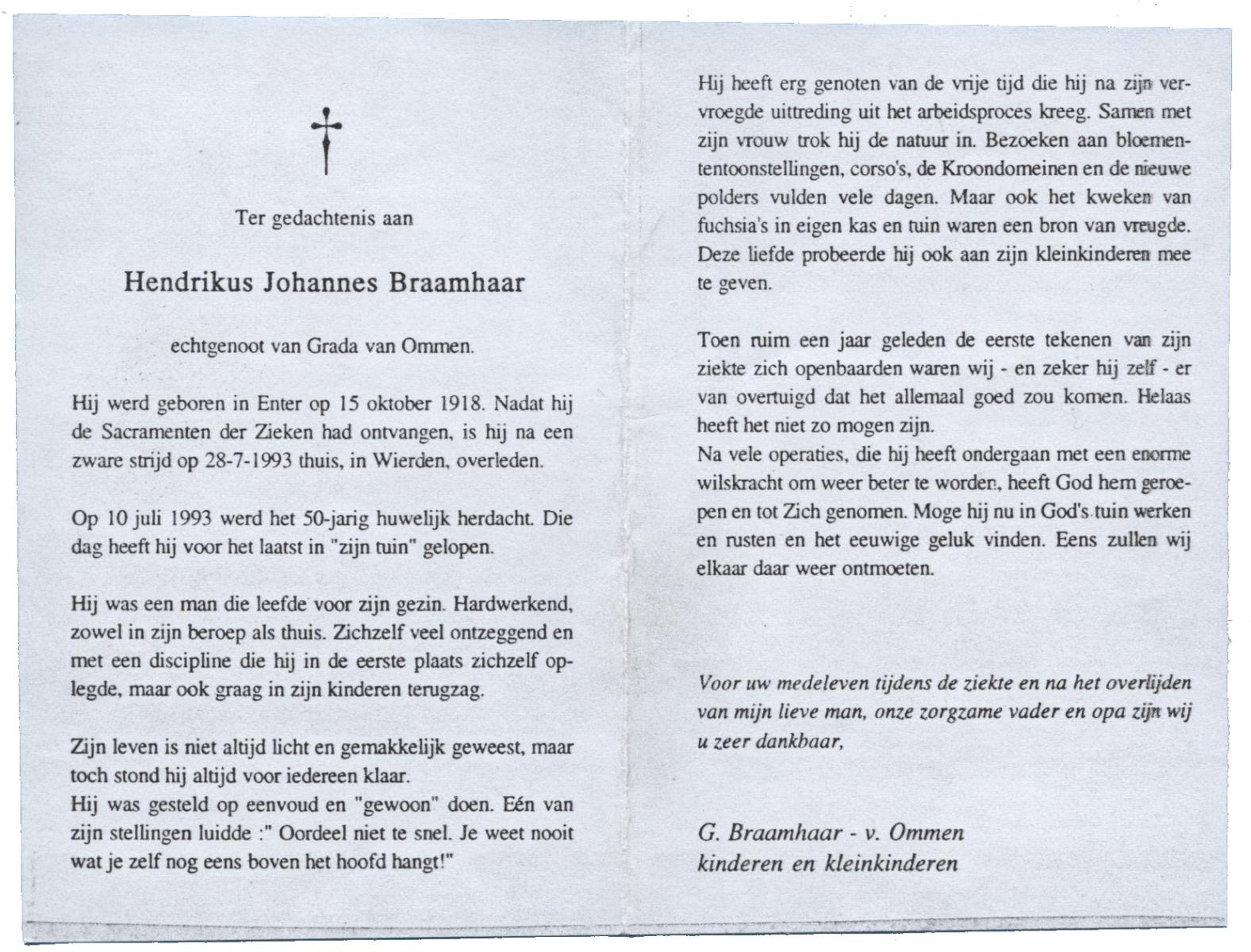 BRAAMHAAR, Hendrikus Johannes, geboren op 15-10-1918 te Enter, overleden op 28-7-1993 te Wierden op 74-jarige leeftijd.