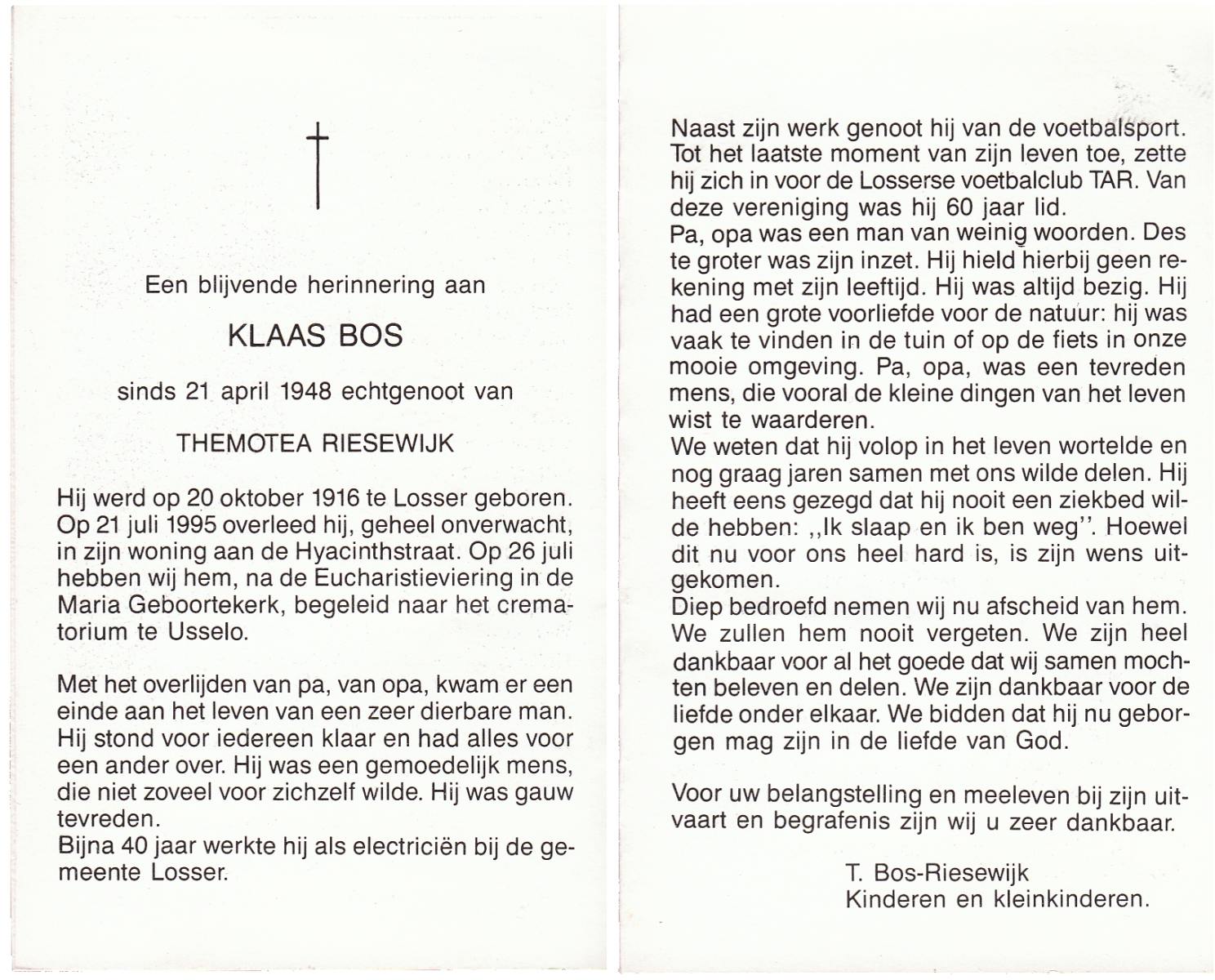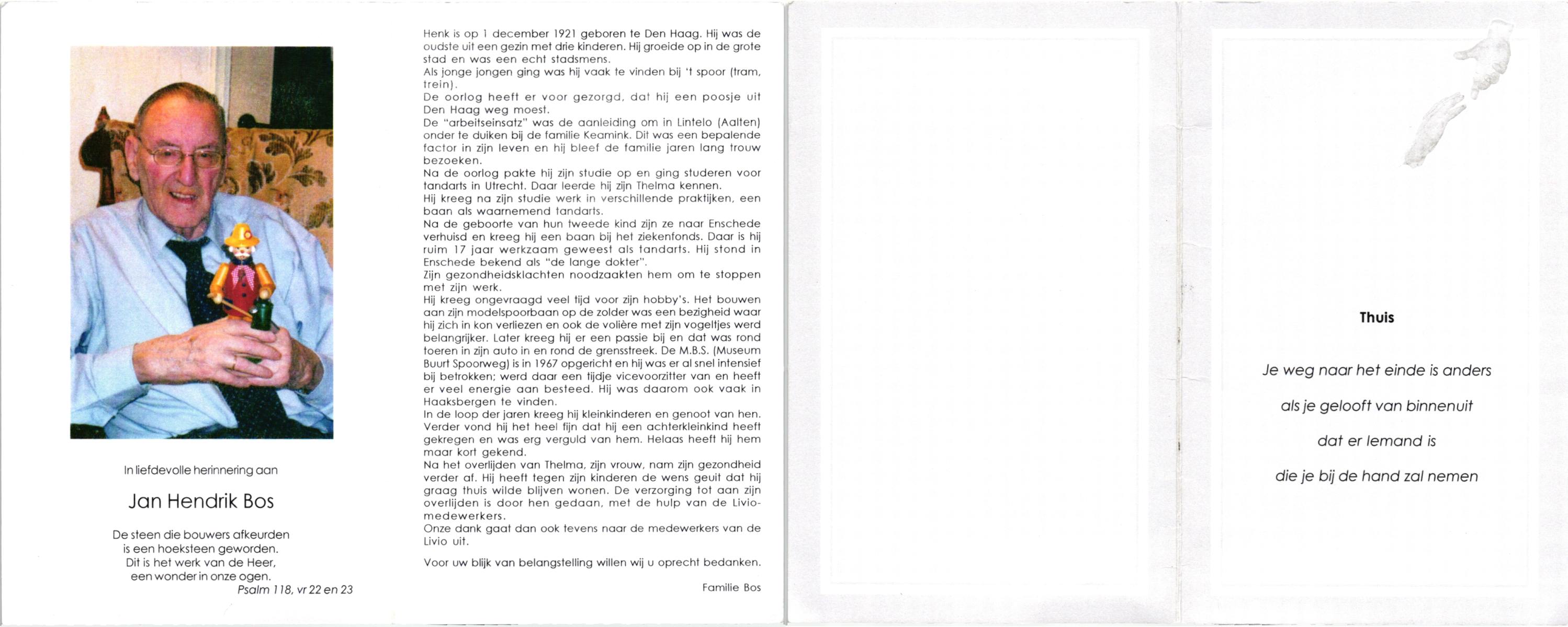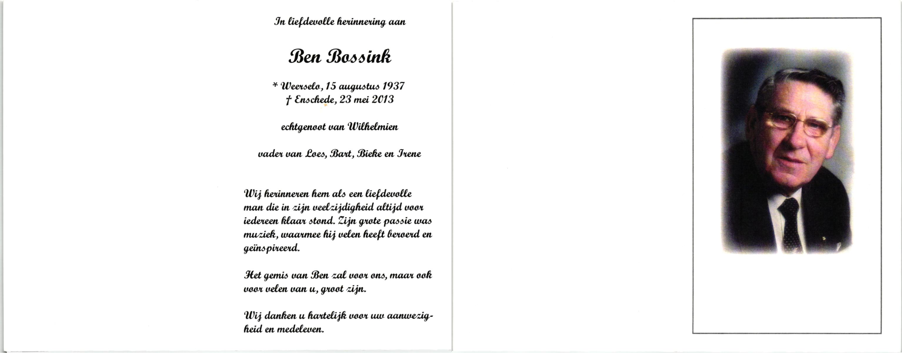 BOOMKAMP, , Bernard, geboren op 25-6-1914 te Weerselo, overleden op 5-1-2007 op 92-jarige leeftijd.