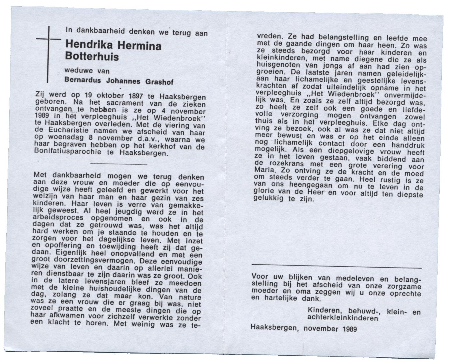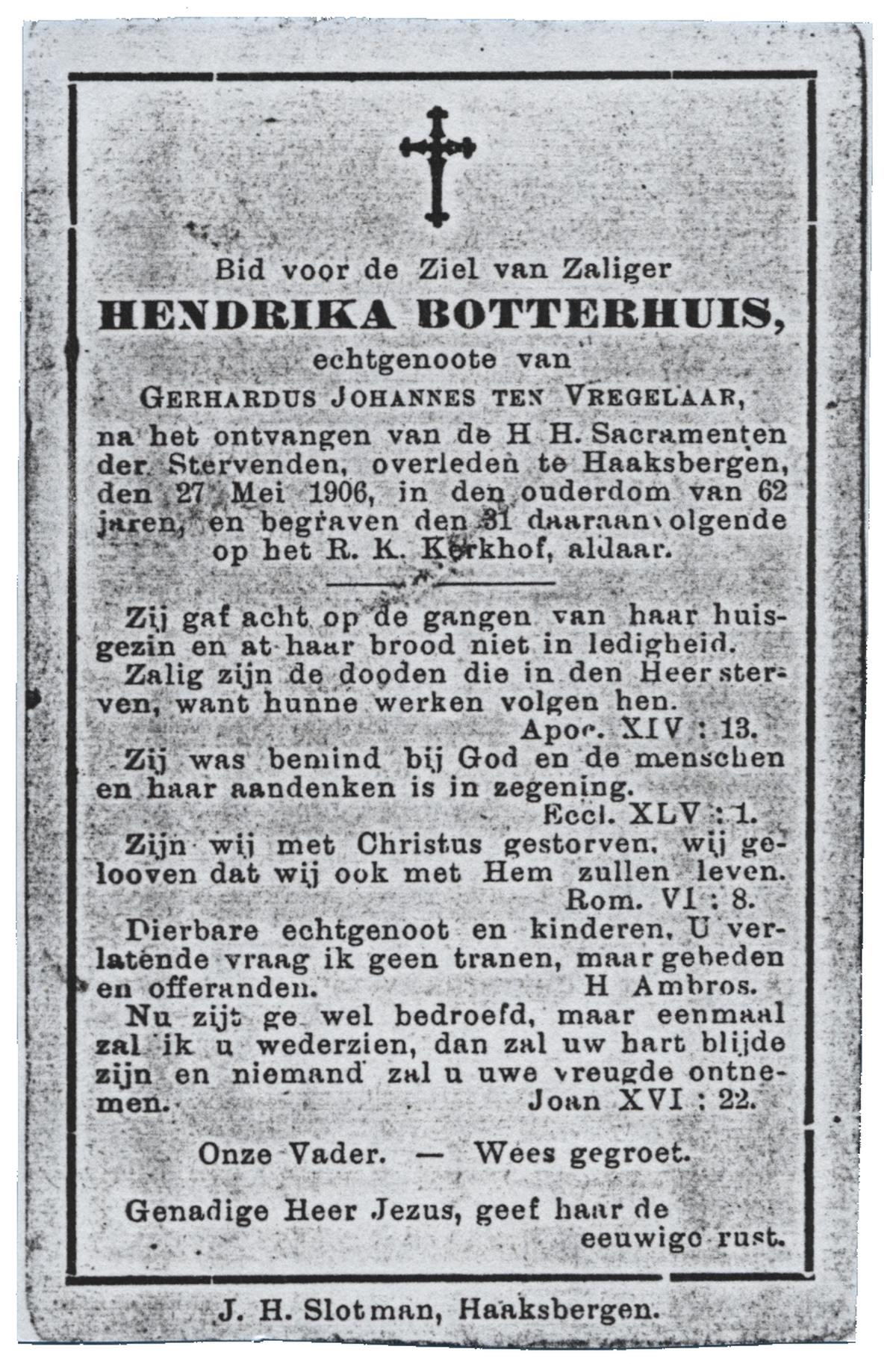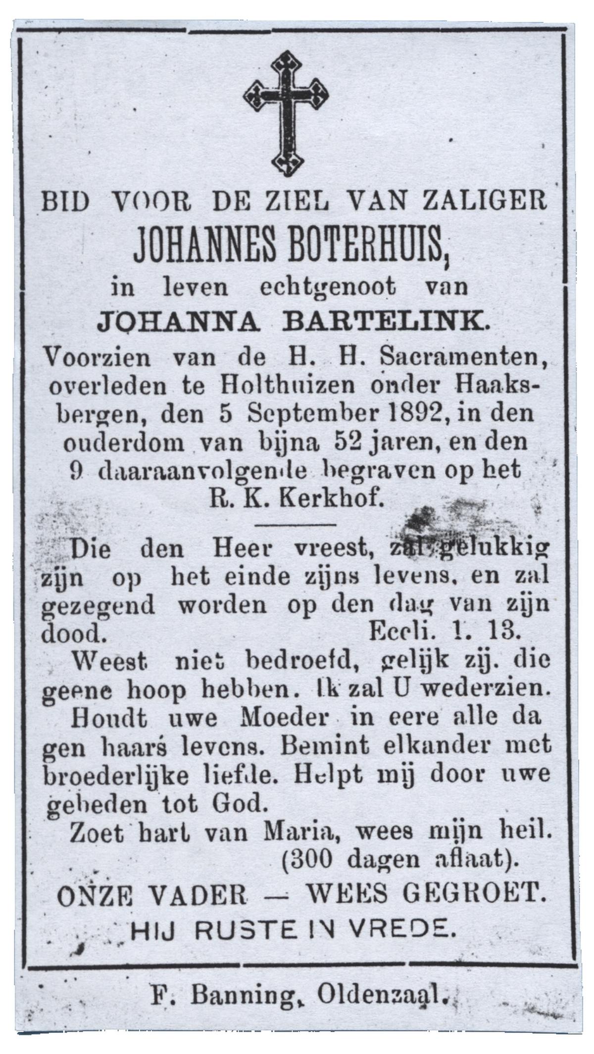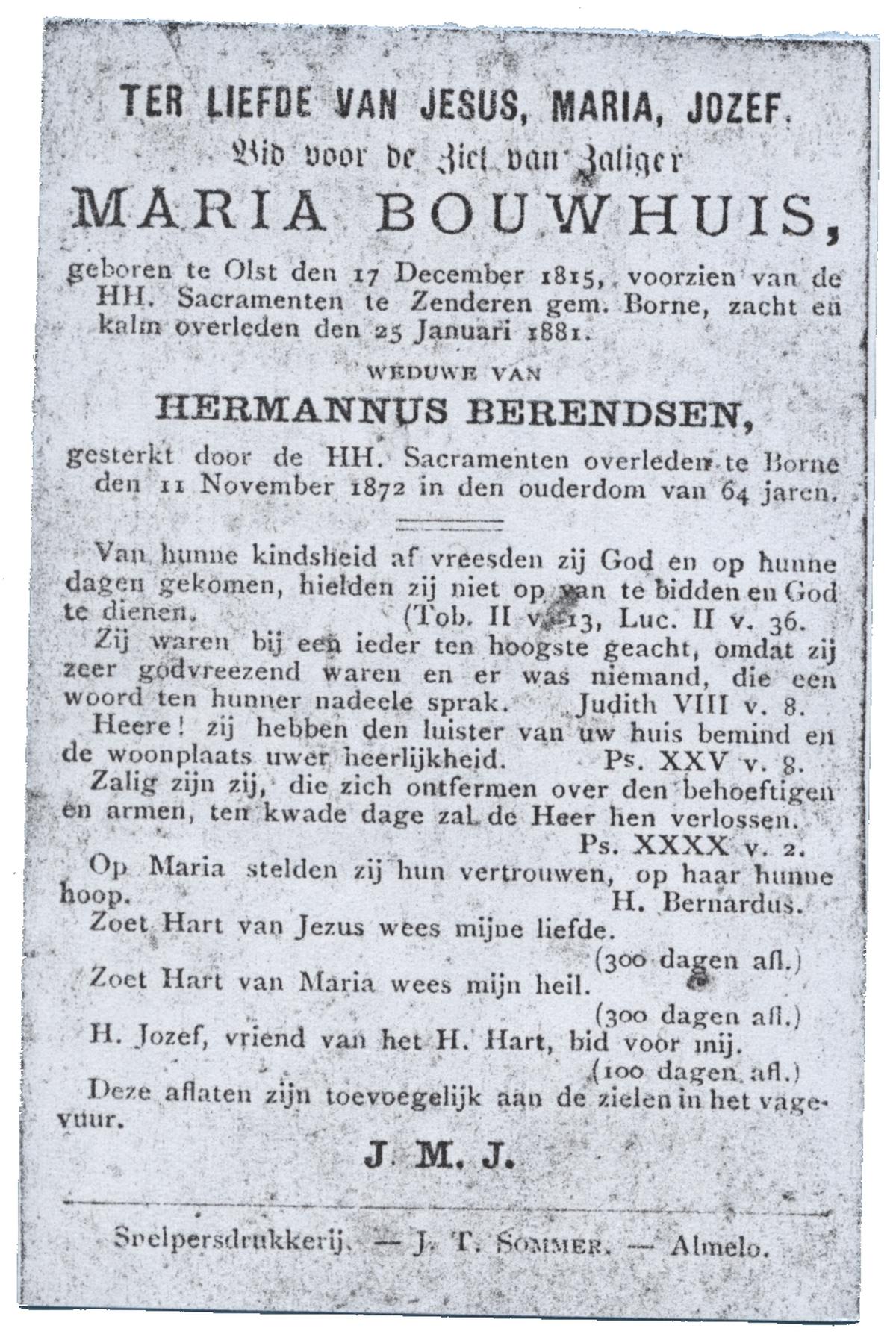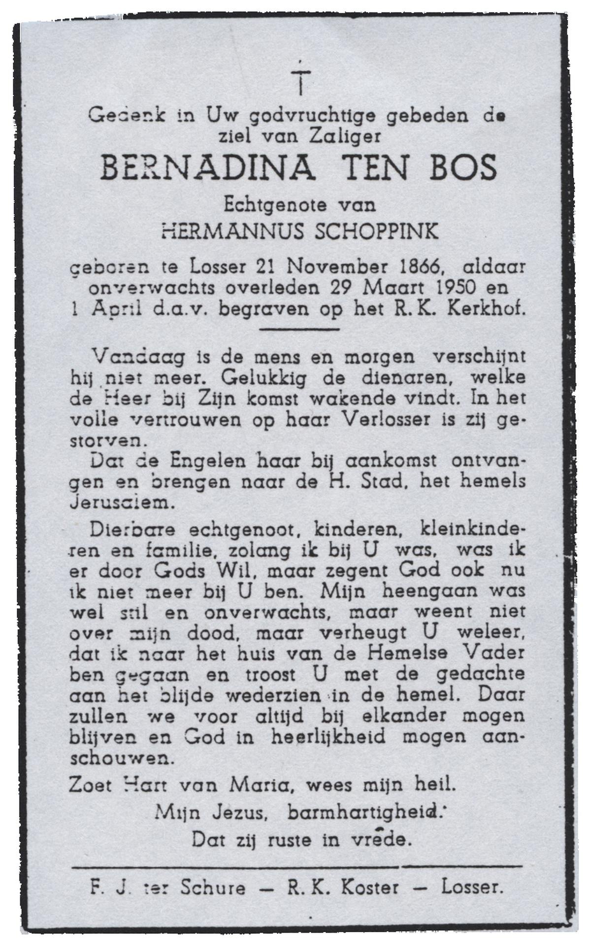 BRAAK, ter, Maria, geboren op 18-08-1863 te Delden, Ambt, overleden op 19-3-1954 te Bornerbroek op 90-jarige leeftijd, begraven op 23-3-1954 te Bornerbroek.