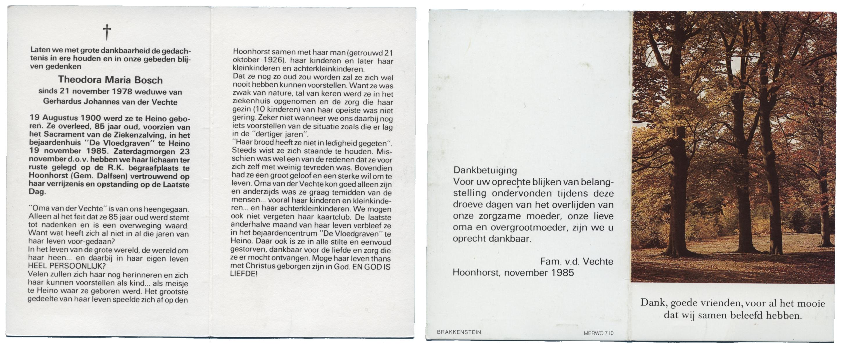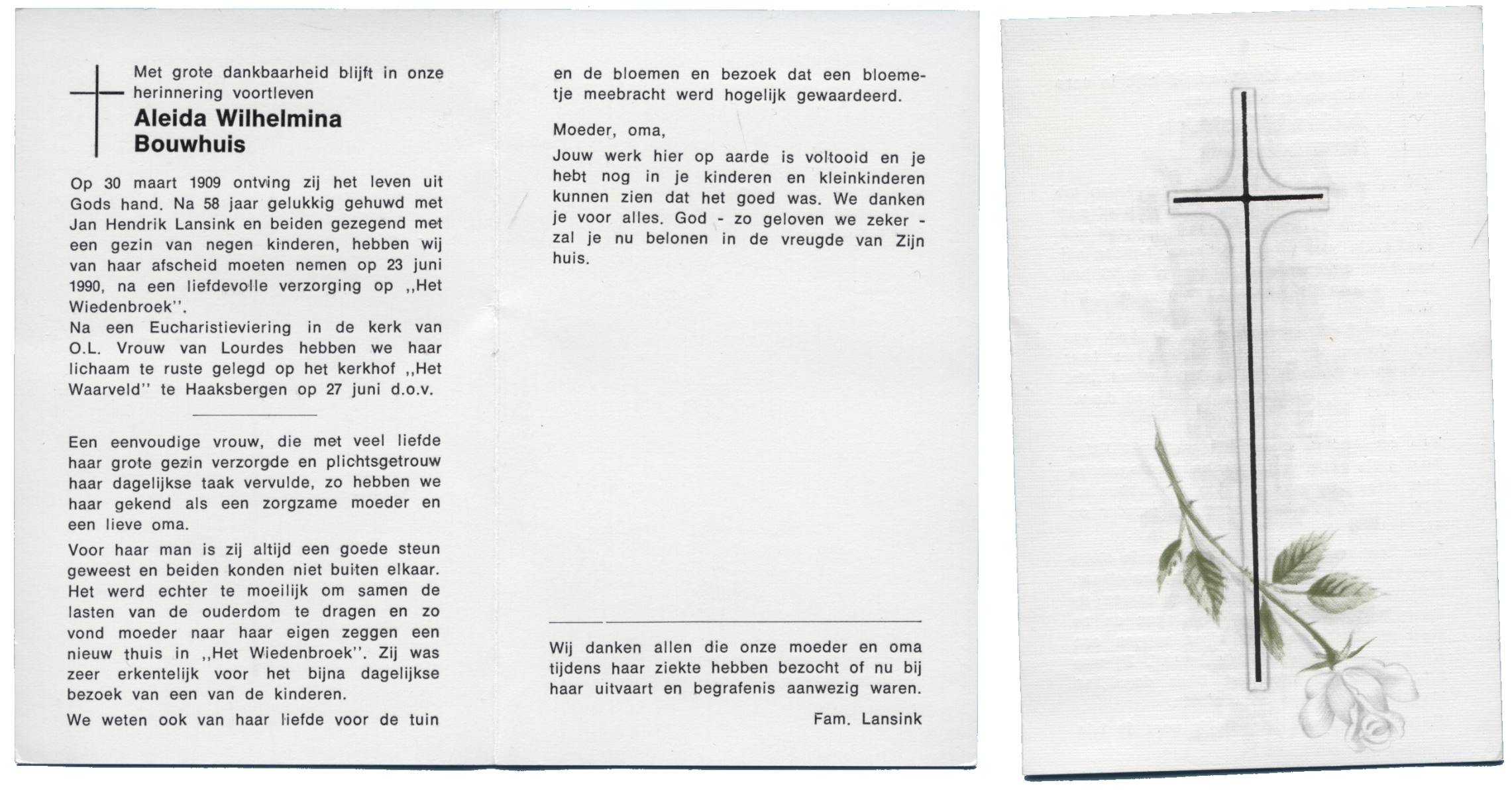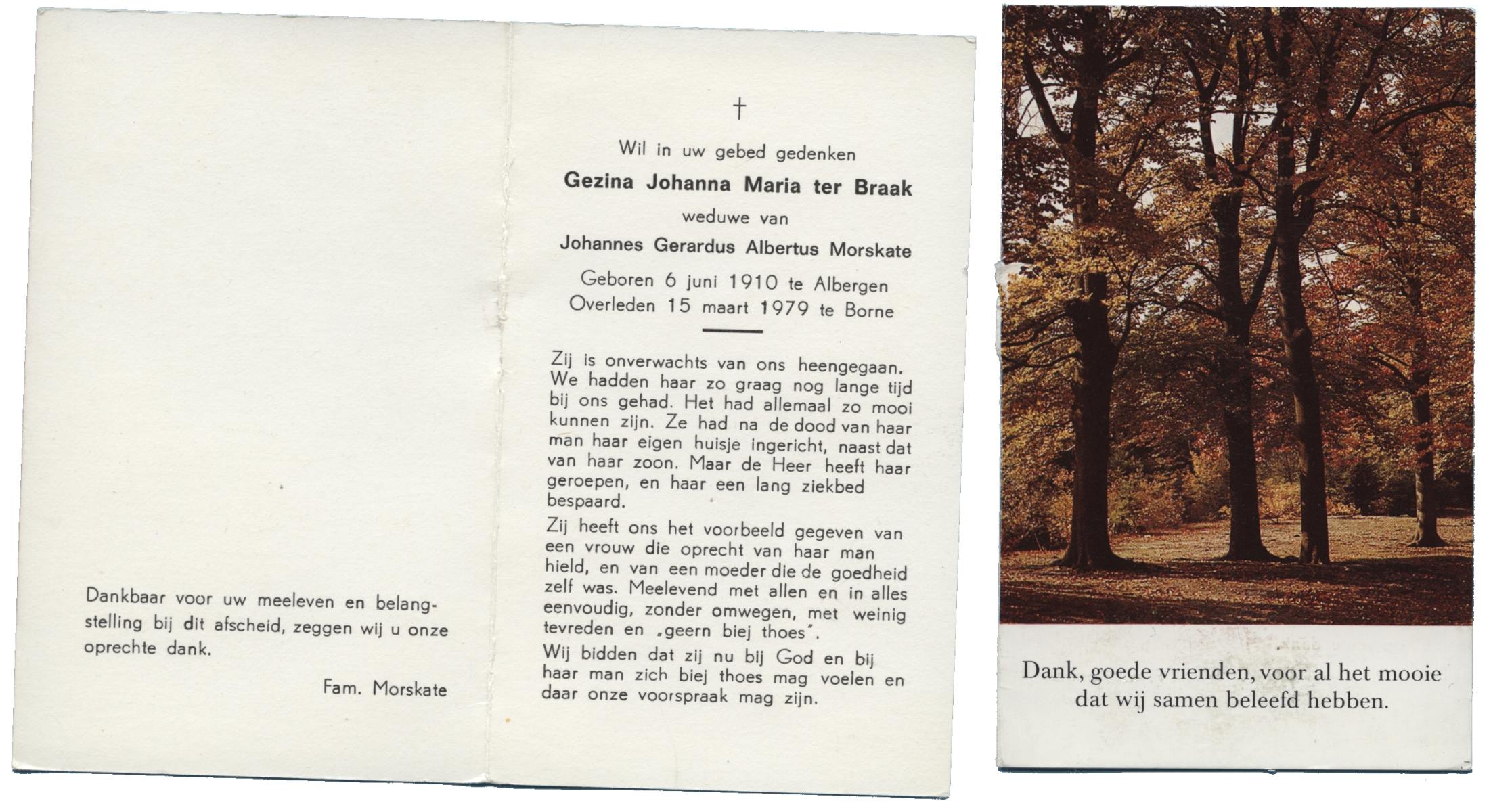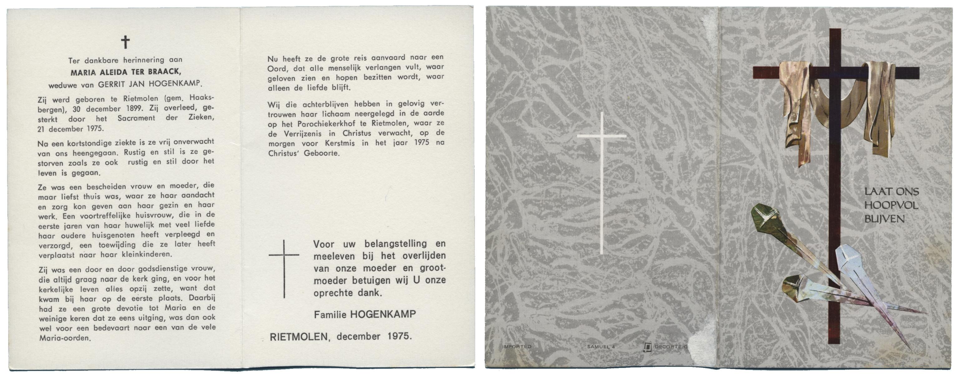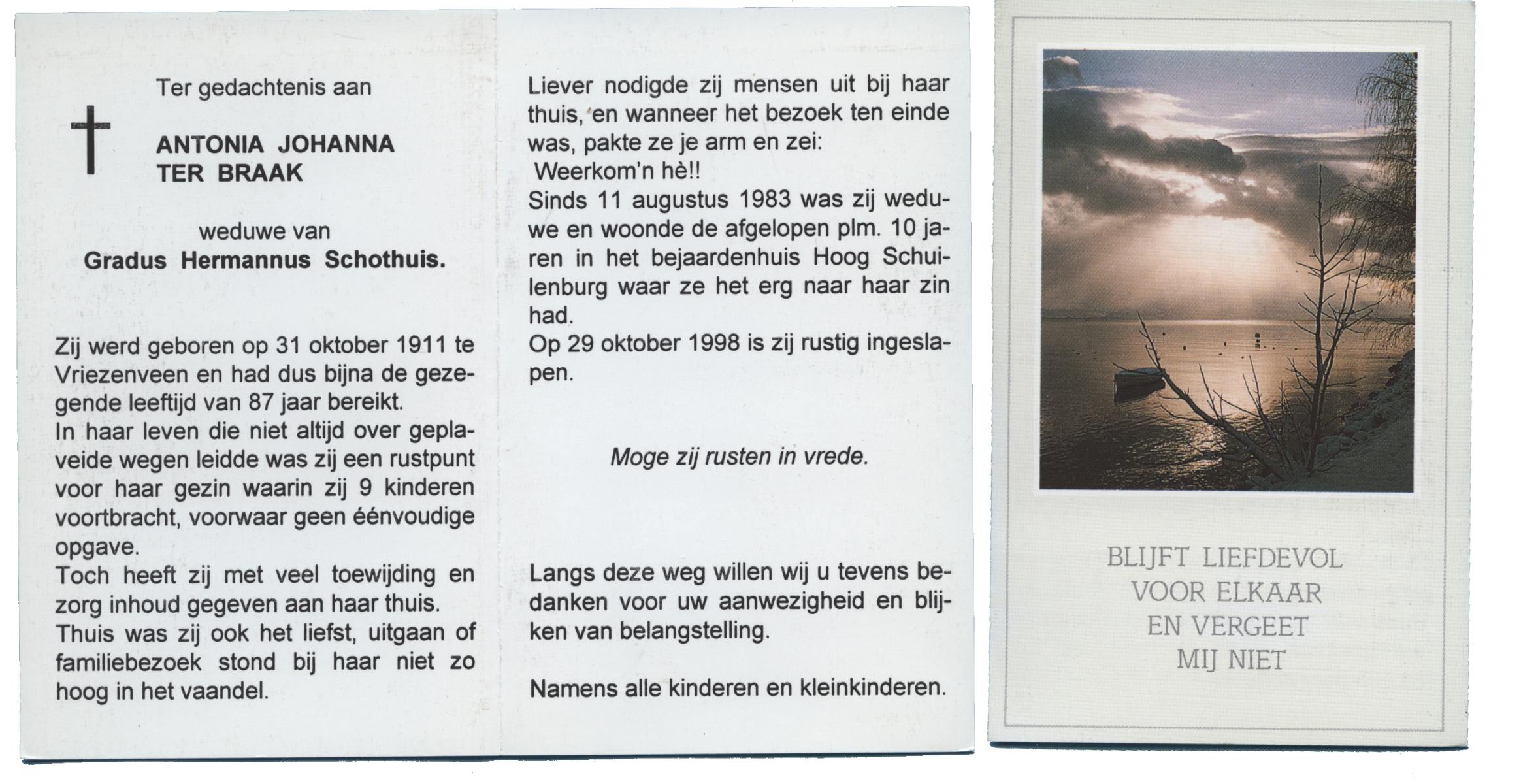 BRAAK, Ter, Johanna Aleida, geboren op 08-03-1890 te Langeveen, overleden op 15-3-1978 te Almelo op 88-jarige leeftijd, begraven op 18-3-1978 te Langeveen.