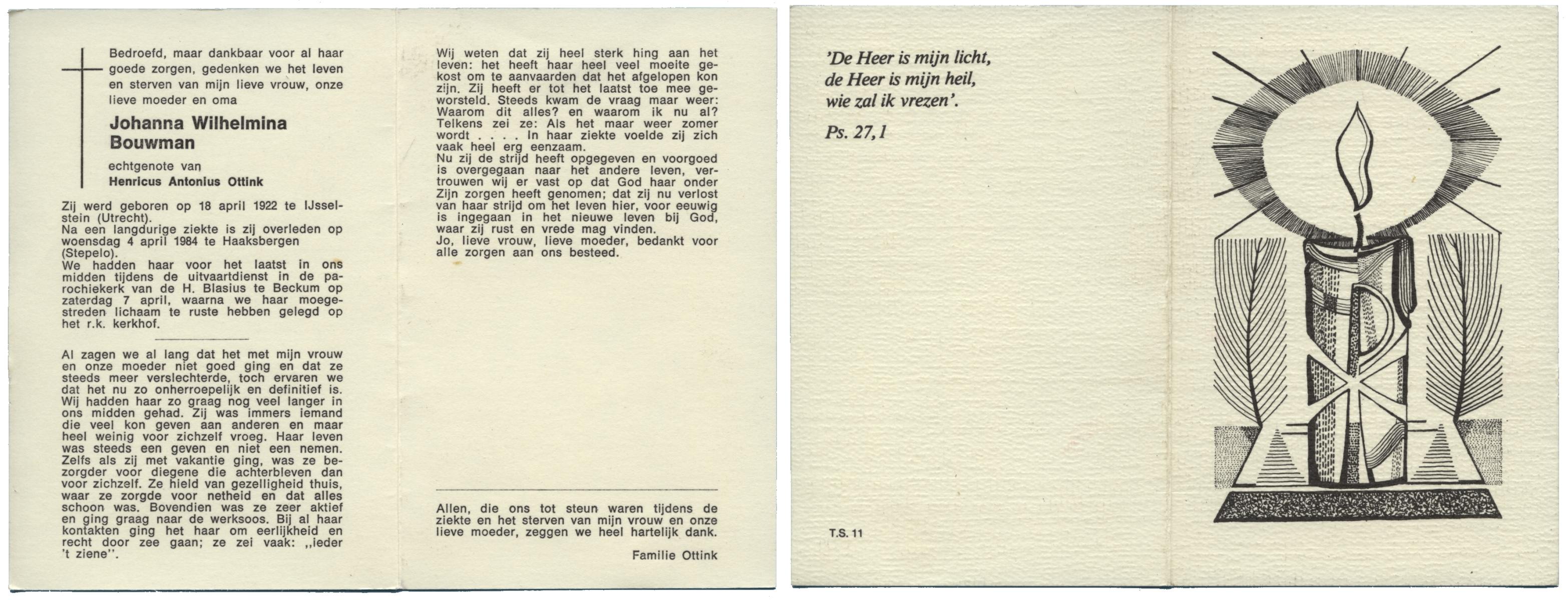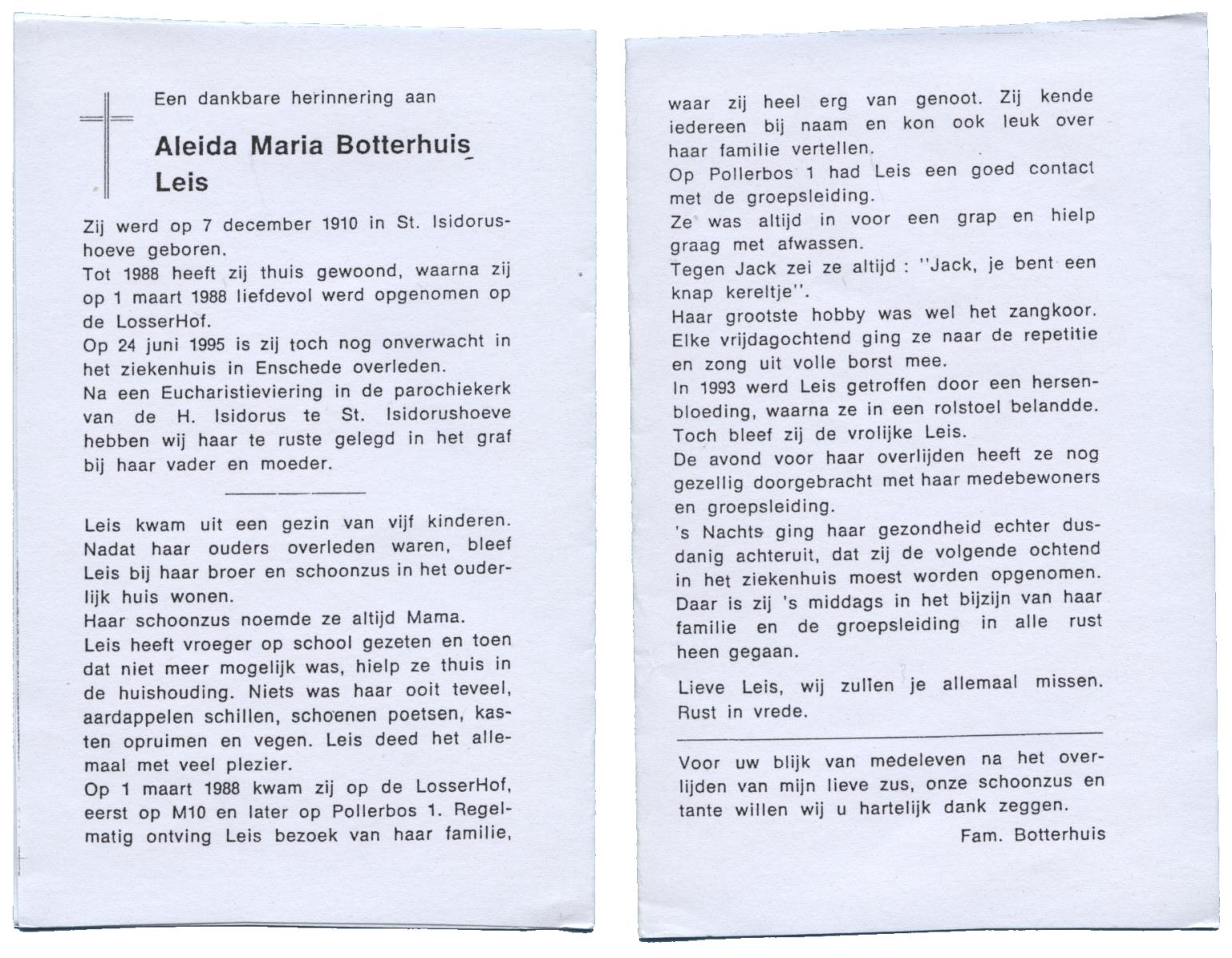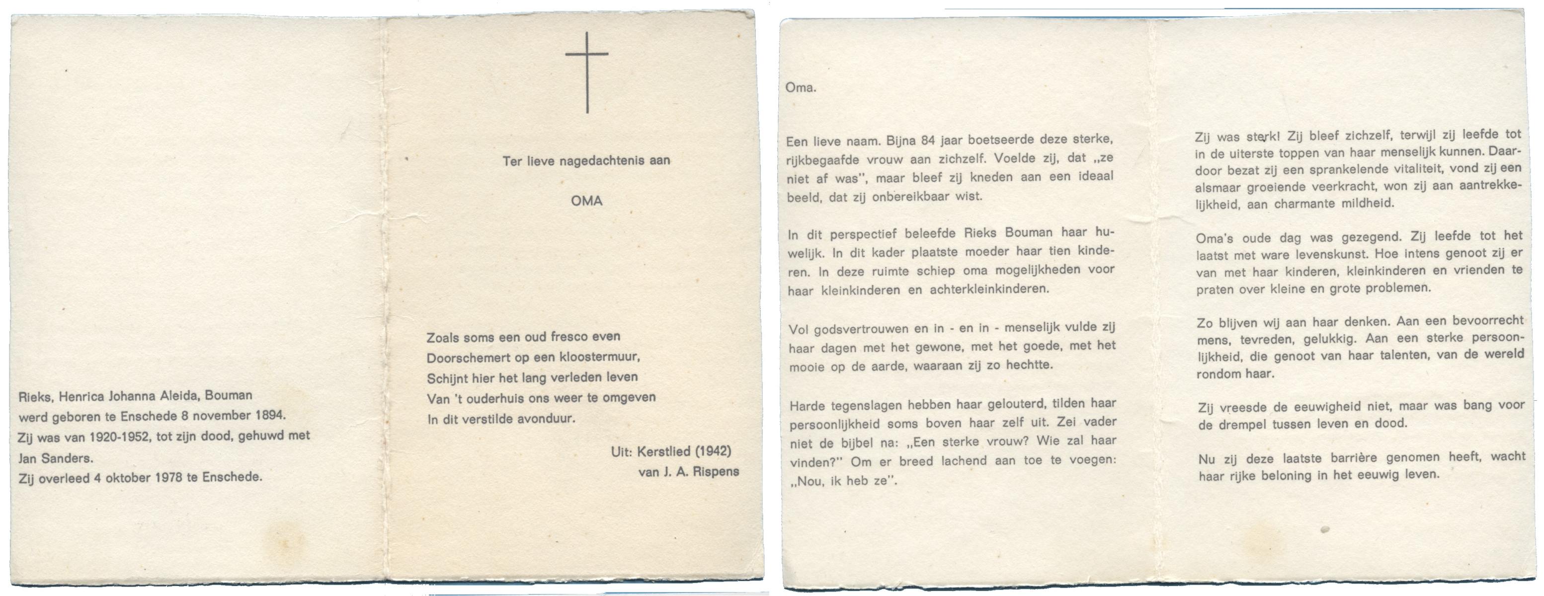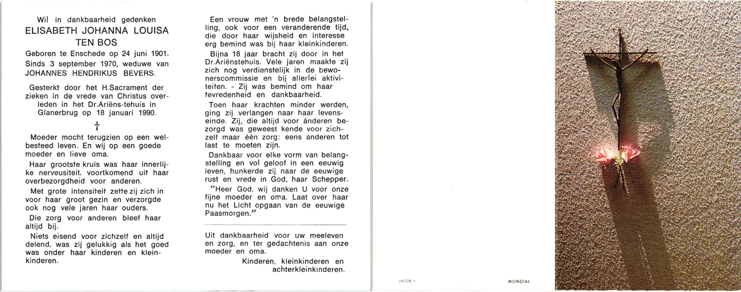 BRAAK, Ter, Johanna Aleida, geboren op 08-03-1890 te Langeveen, overleden op 15-3-1978 te Almelo op 88-jarige leeftijd, begraven op 18-3-1978 te Langeveen.