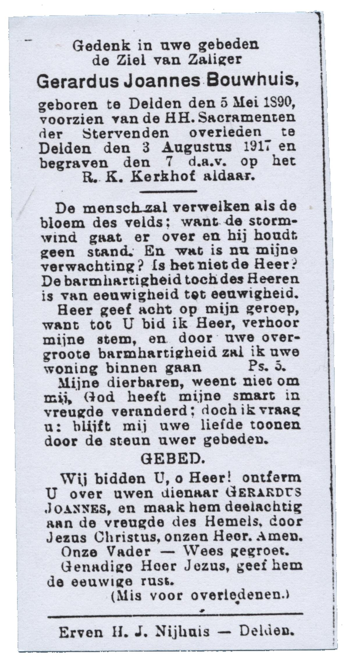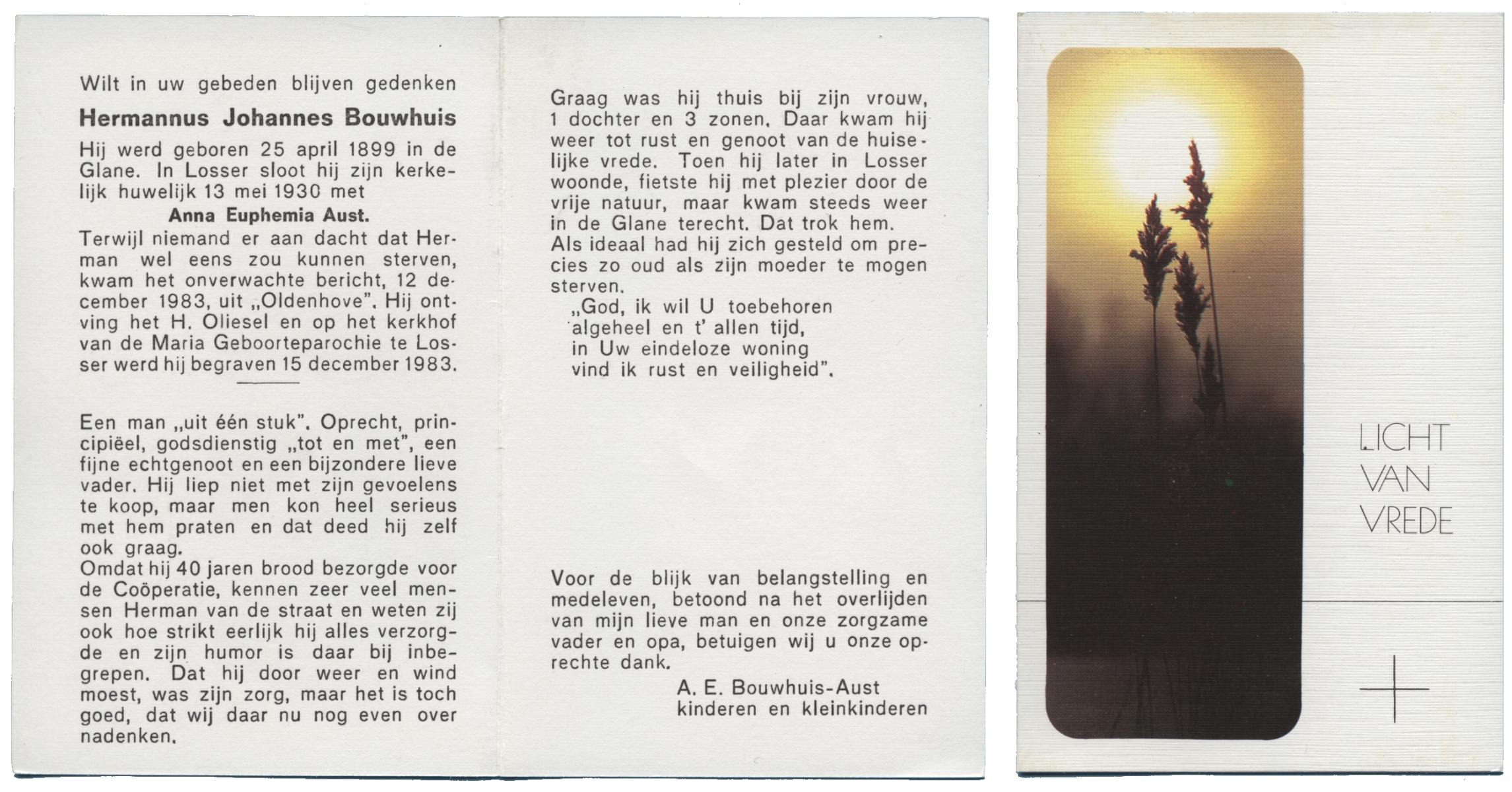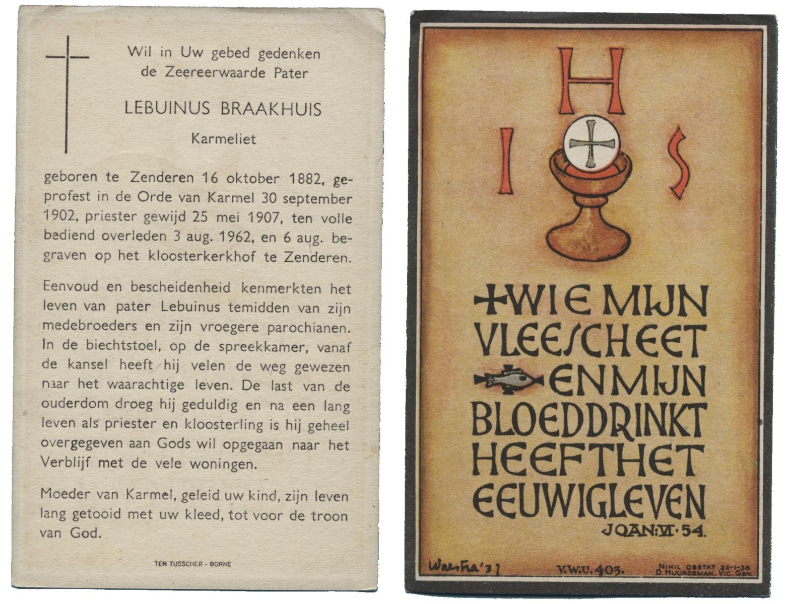 BRAAKHUIS, Lebuinus, geboren op 16-10-1883 te Zenderen, overleden op 3-8-1962 te Zenderen op 78-jarige leeftijd, begraven op 6-8-1962 te Zenderen.