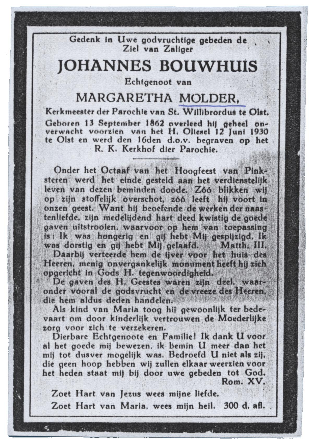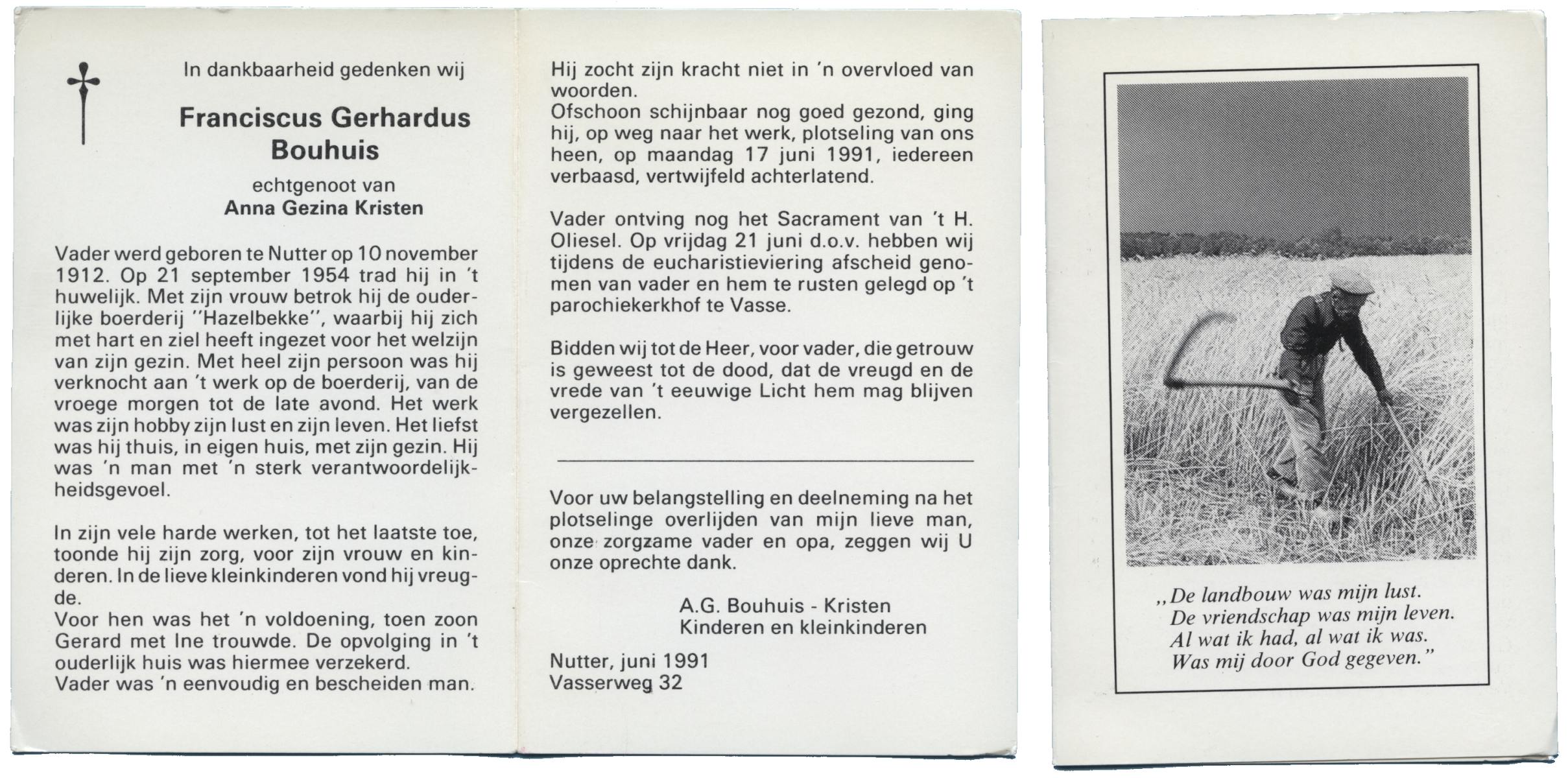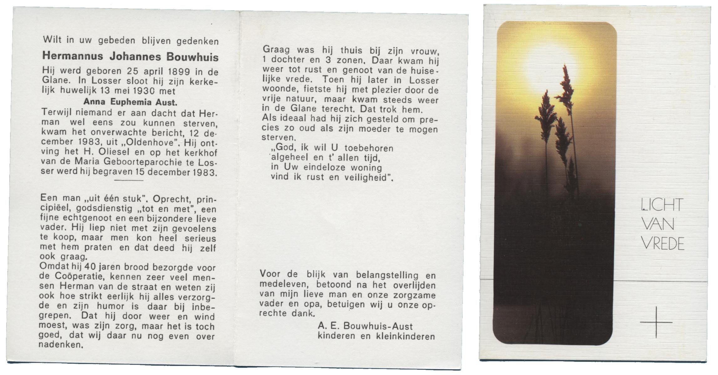 BRAAKHUIS, Lebuinus, geboren op 16-10-1883 te Zenderen, overleden op 3-8-1962 te Zenderen op 78-jarige leeftijd, begraven op 6-8-1962 te Zenderen.