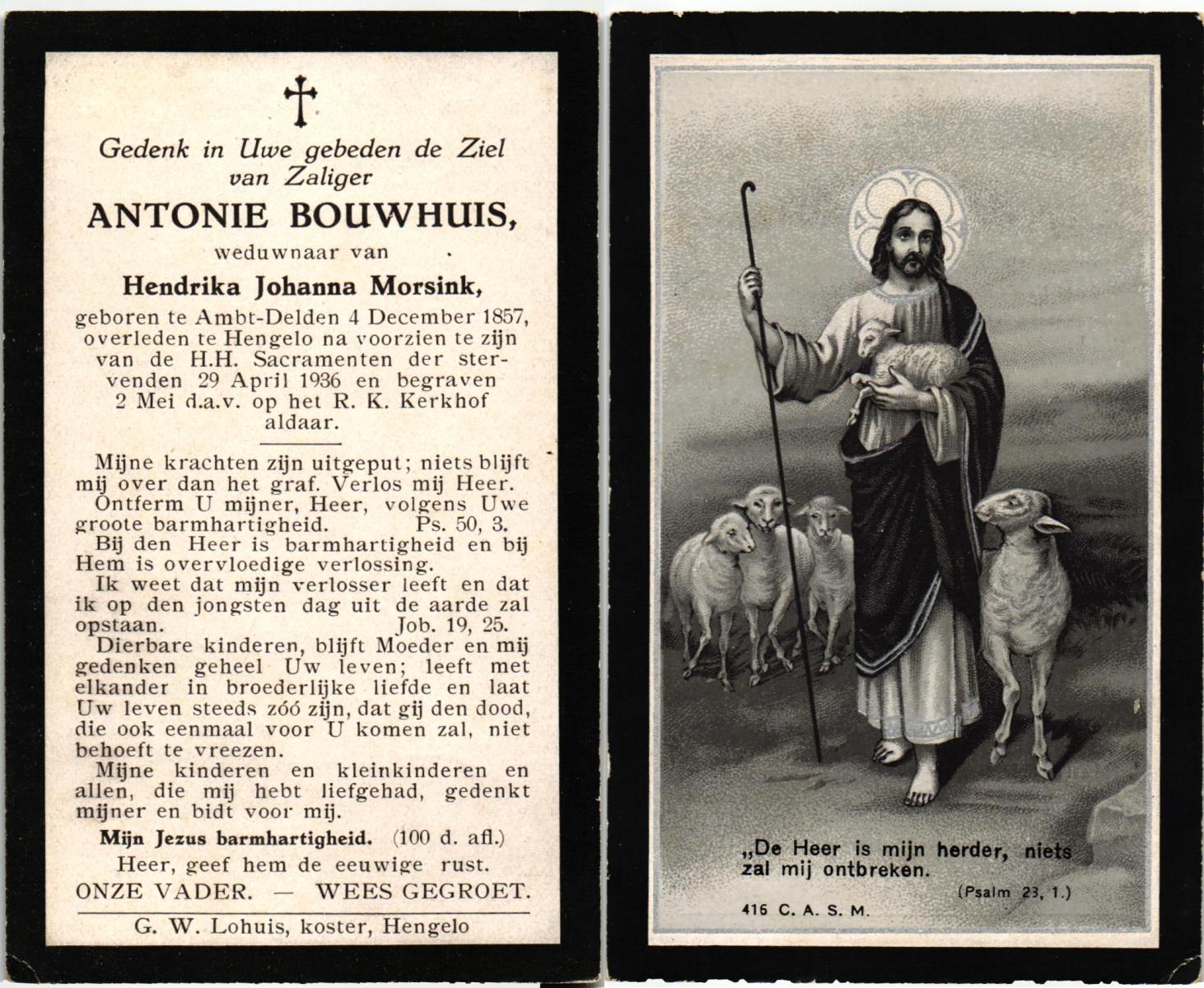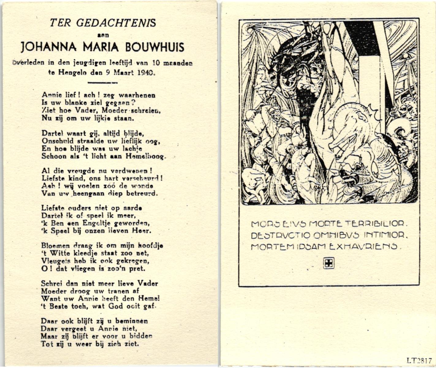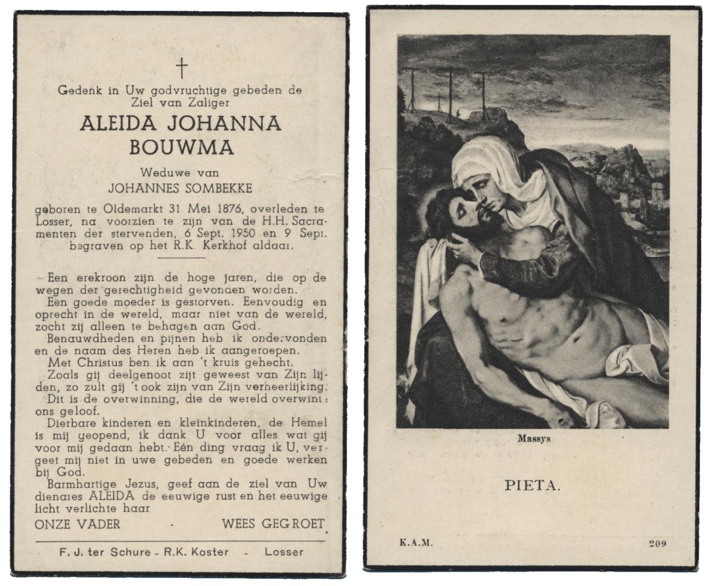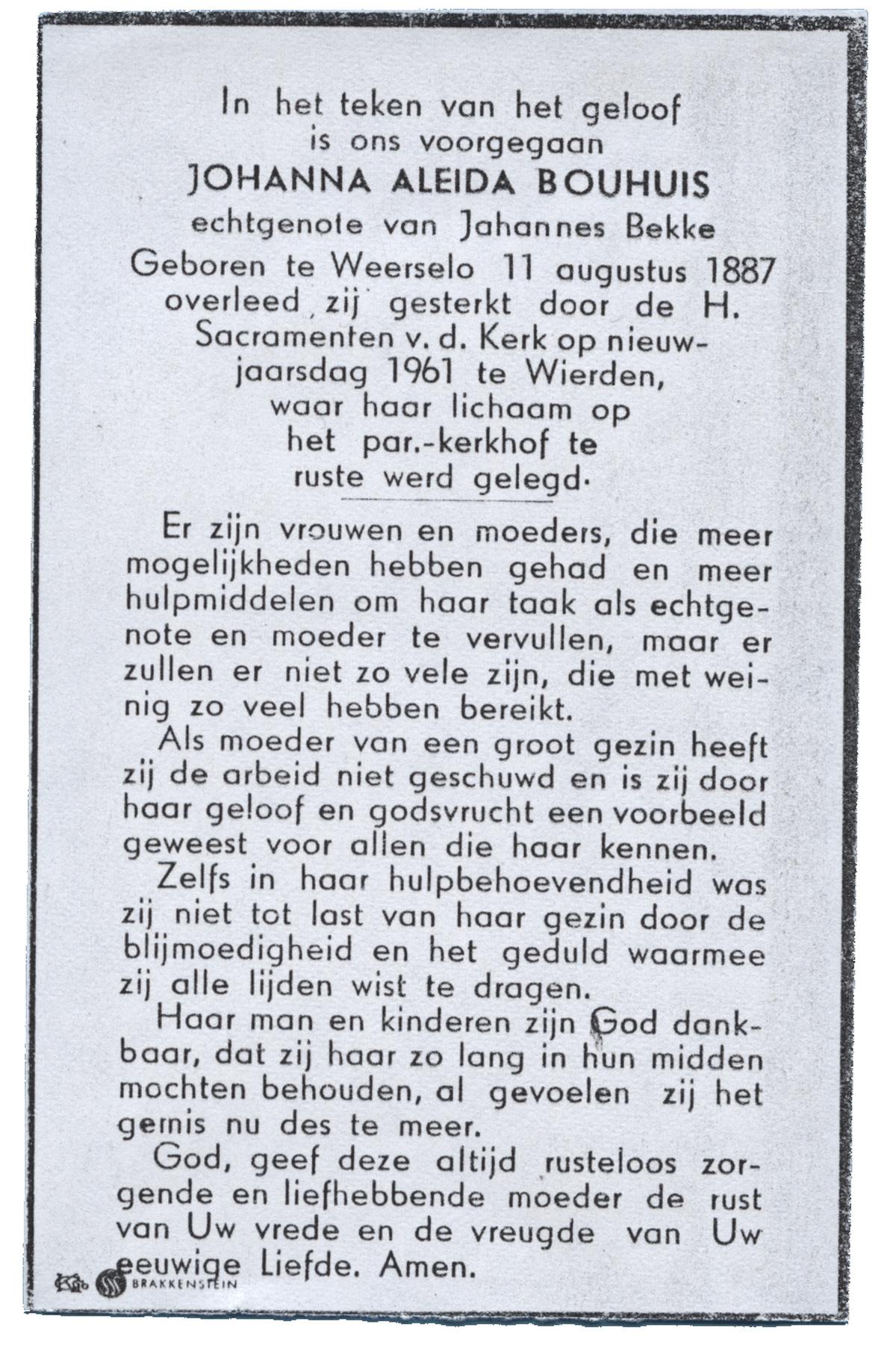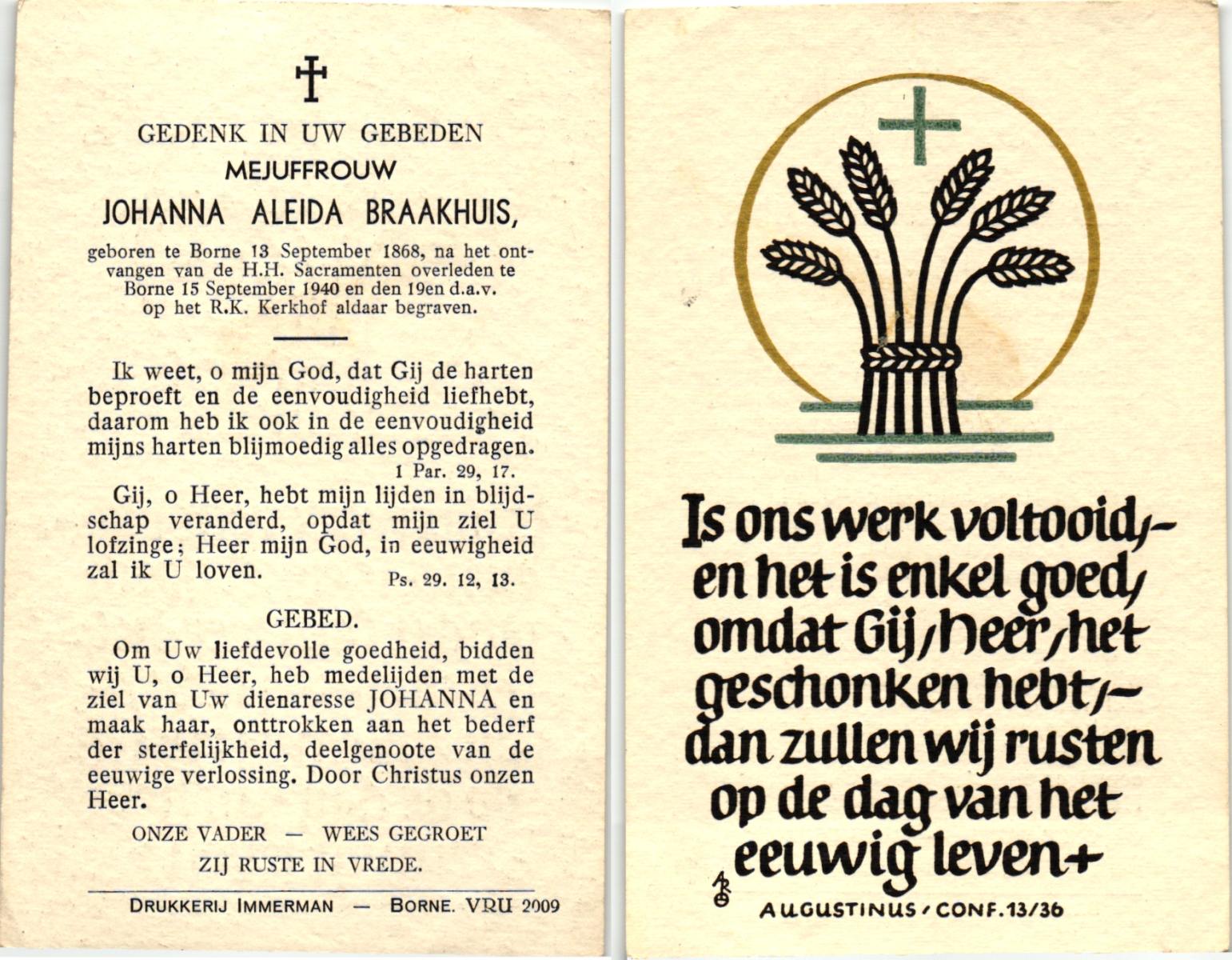 BRAAKHUIS, , Johanna Aleida, geboren op 13-09-1868 te Borne, overleden op 15-9-1940 te Borne op 72-jarige leeftijd, begraven op 19-9-1940 te Borne.
