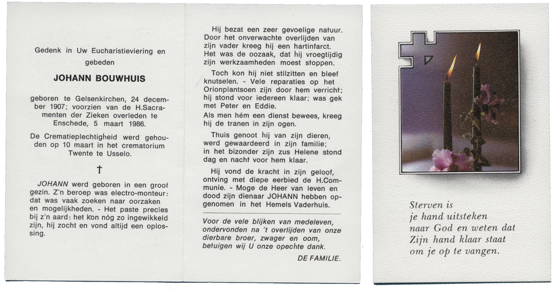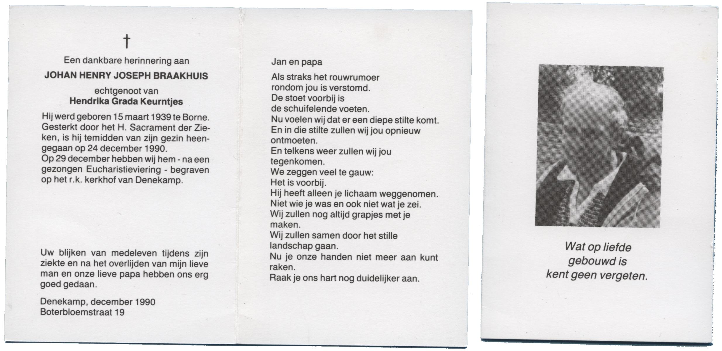 BRAAKHUIS, Johan Henry Joseph, geboren op 15-3-1939 te Borne, overleden op 24-12-1990 te Denekamp op 51-jarige leeftijd, begraven op 29-12-1990 te Denekamp.