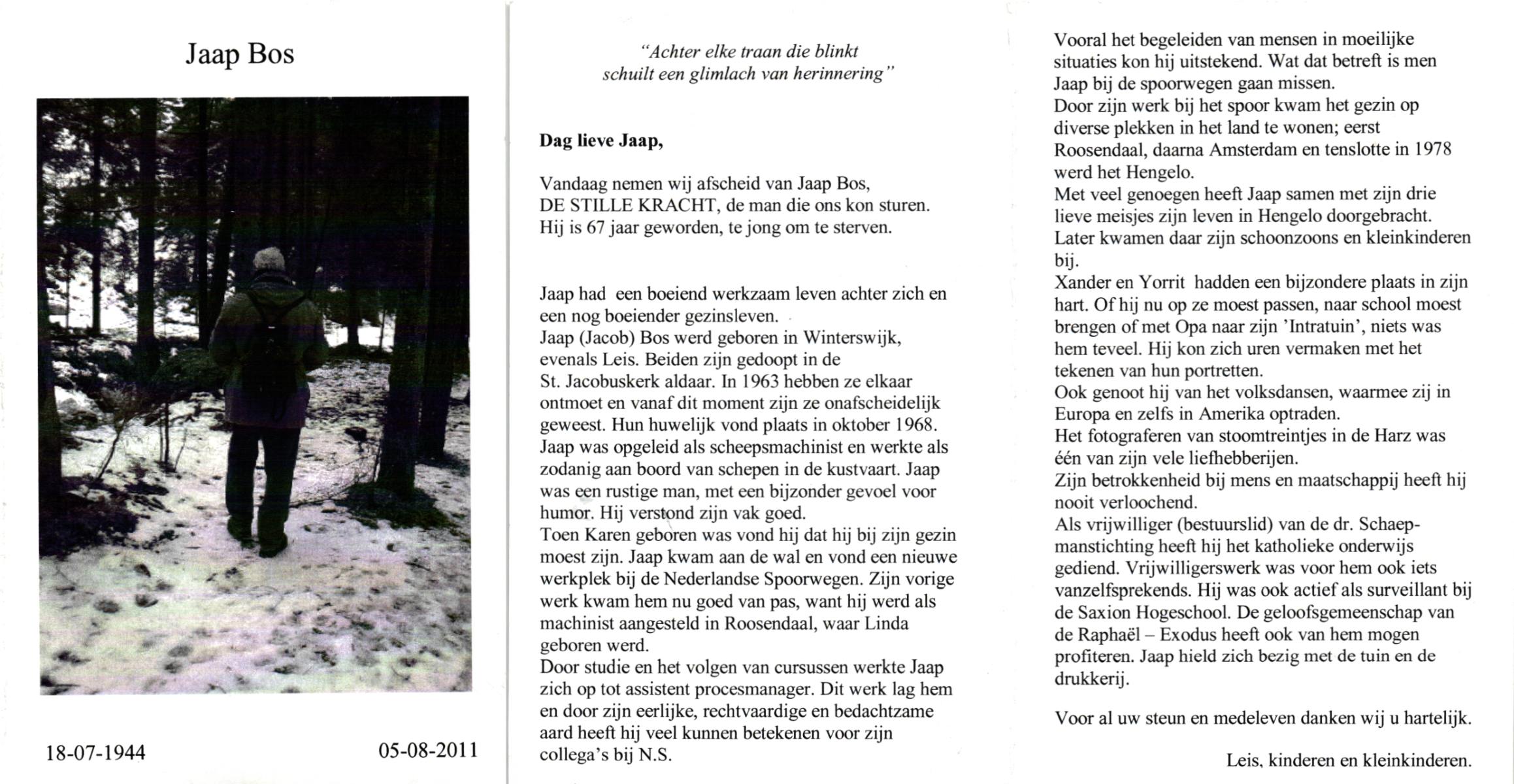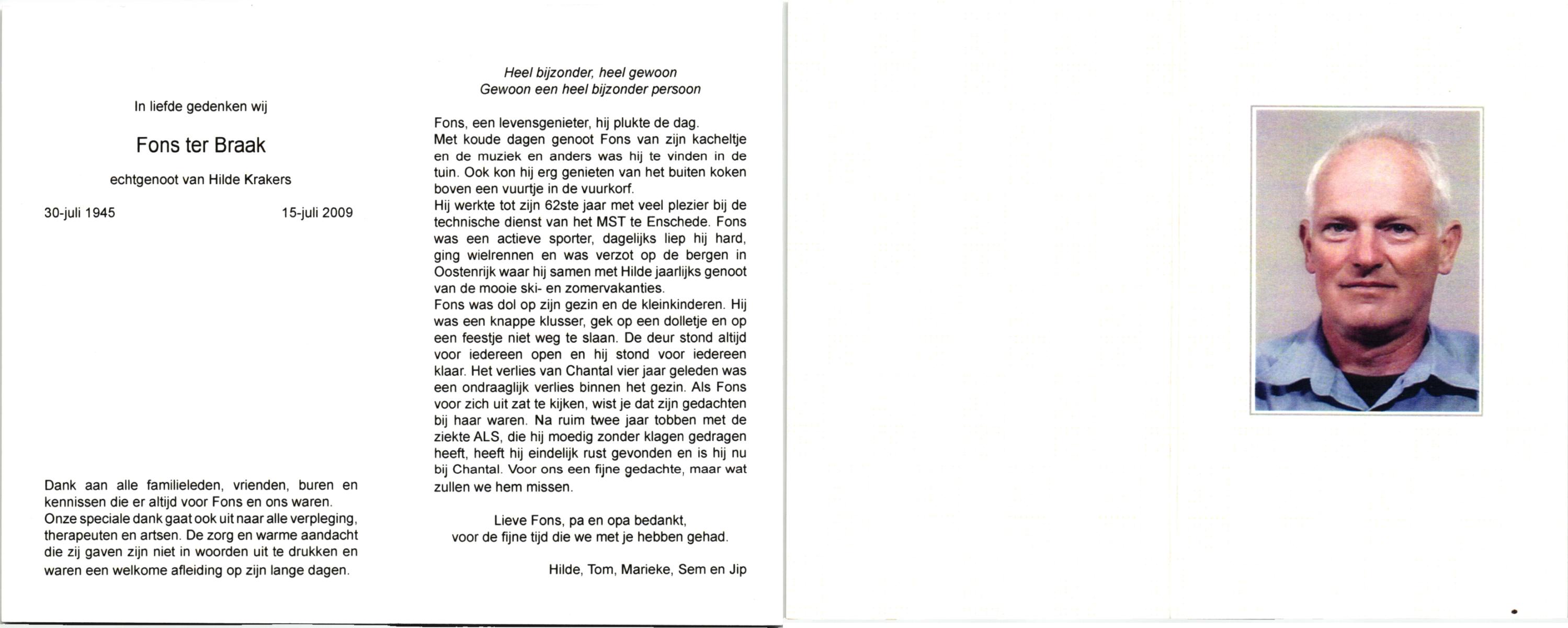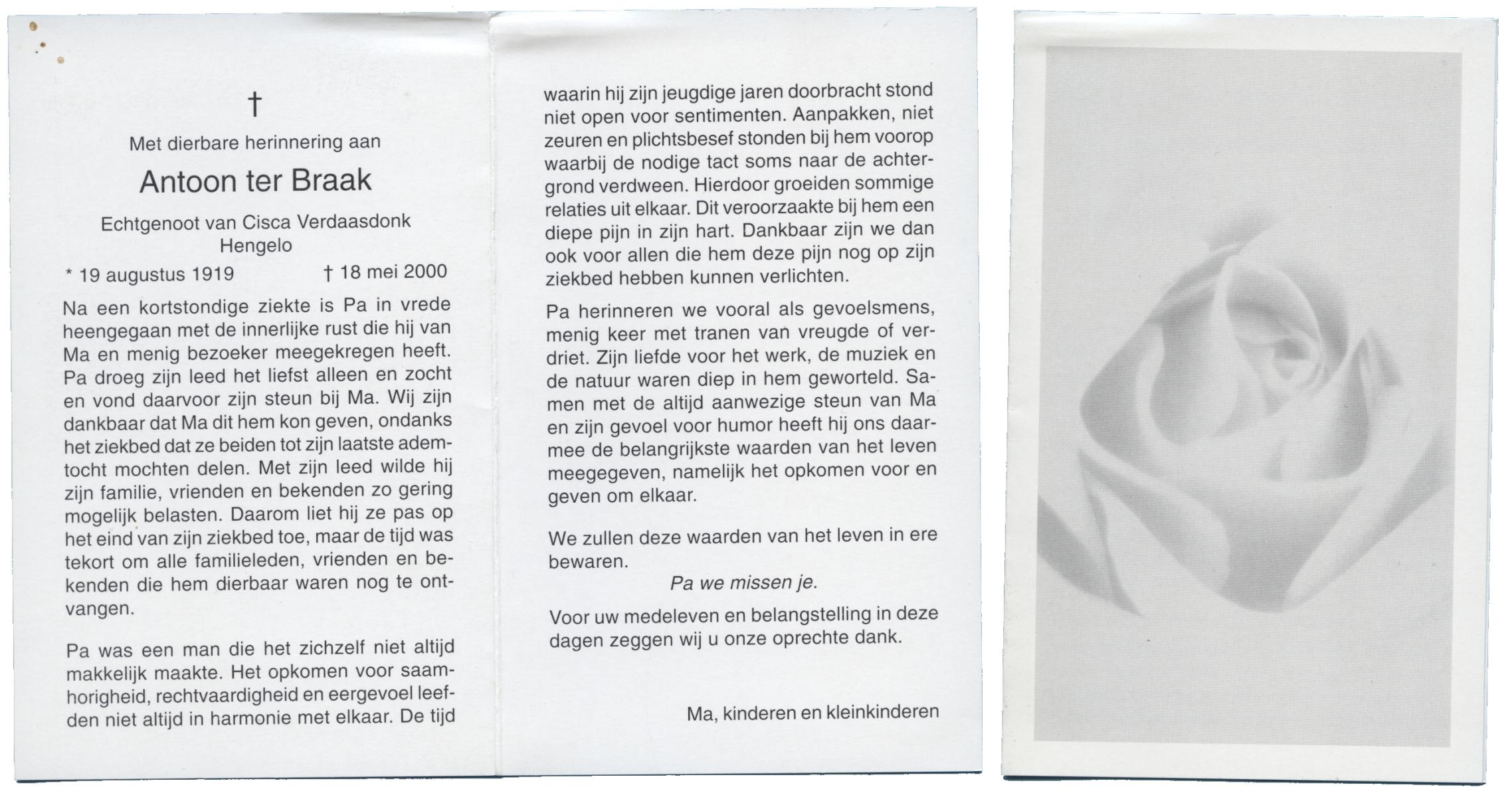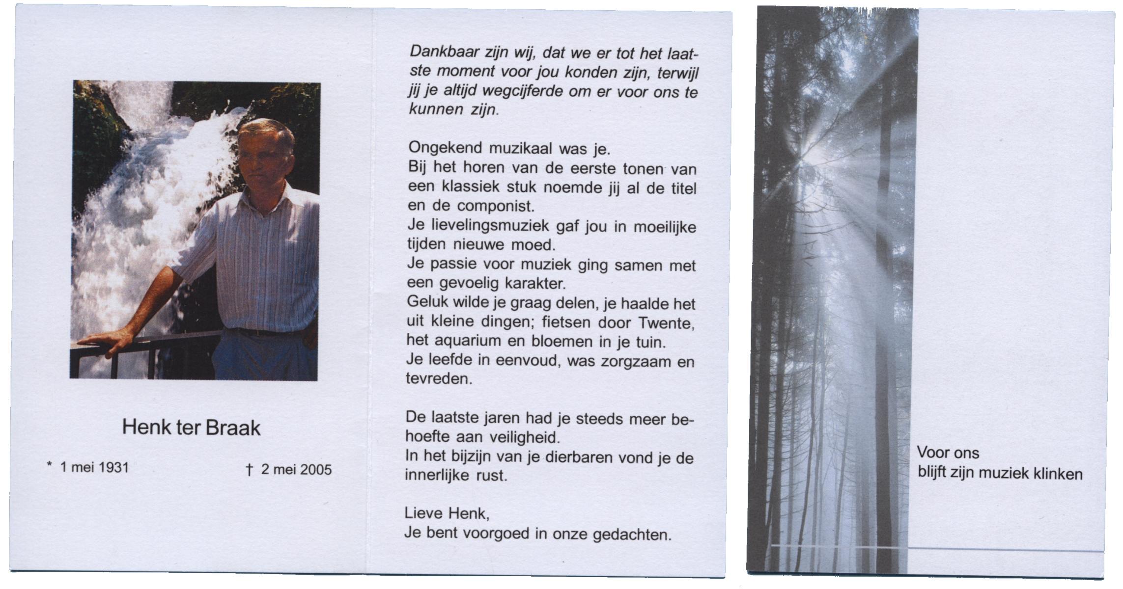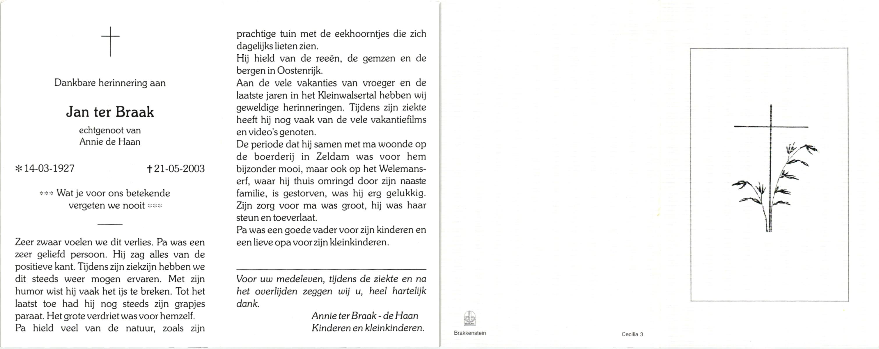 BRAAK, ter, Jan, geboren op 14-3-1927, overleden op 21-5-2003 op 76-jarige leeftijd.