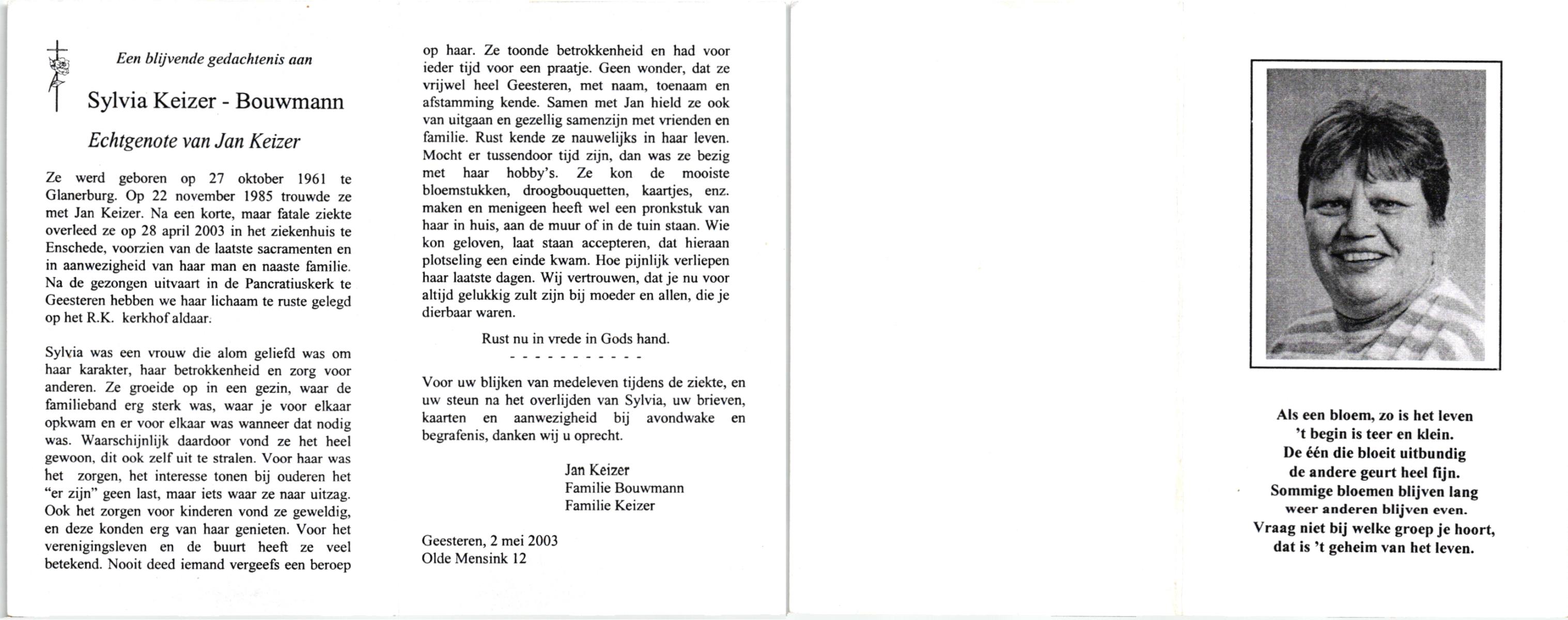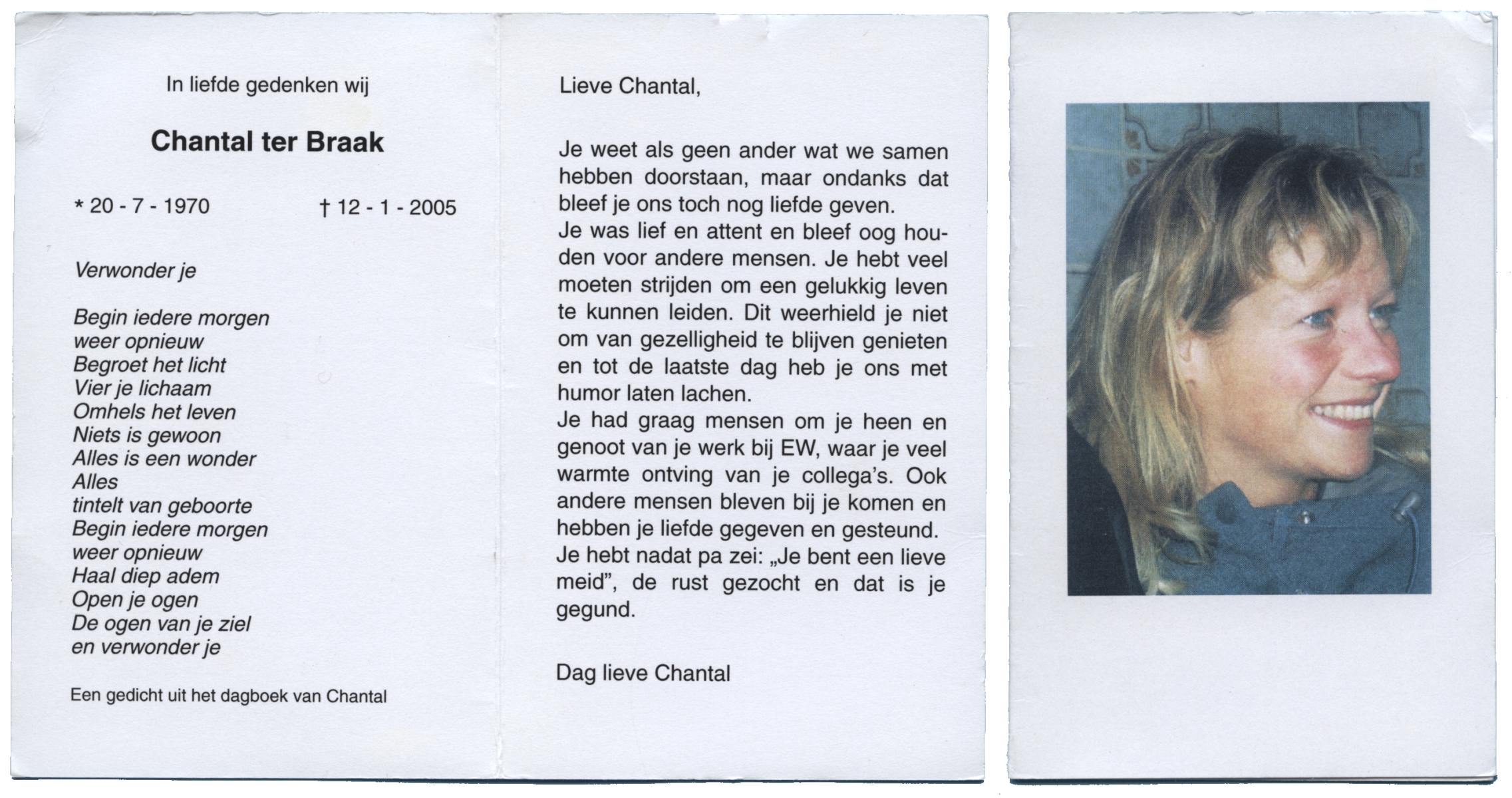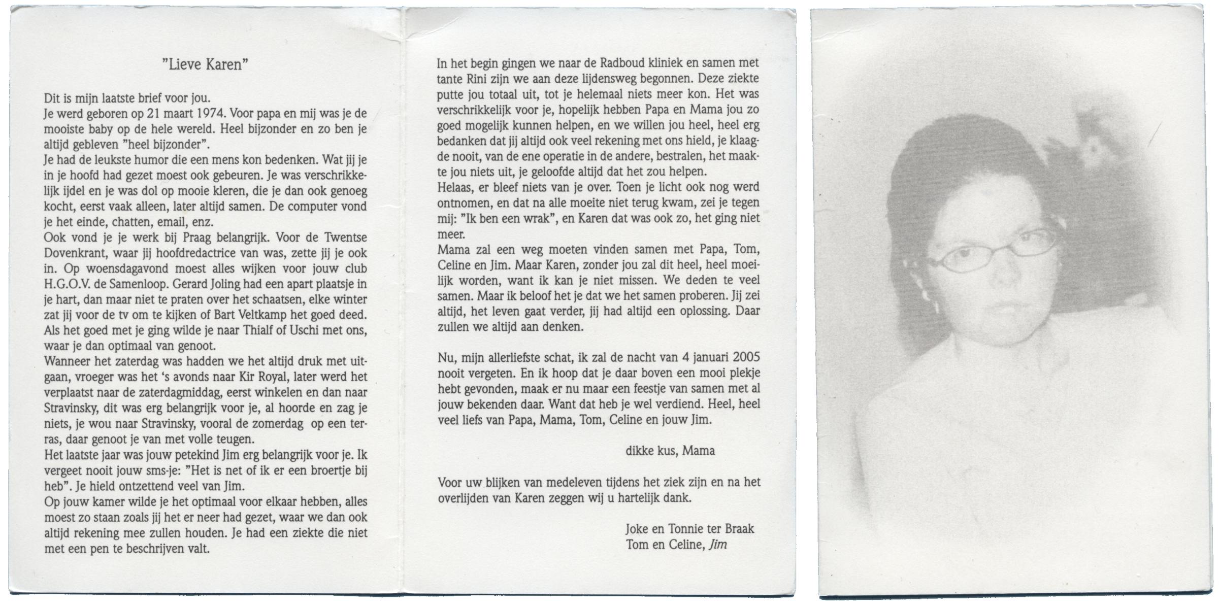 BRAAK, ter, Karen, geboren op 21-3-1974, overleden op 4-1-2005 op 30-jarige leeftijd.