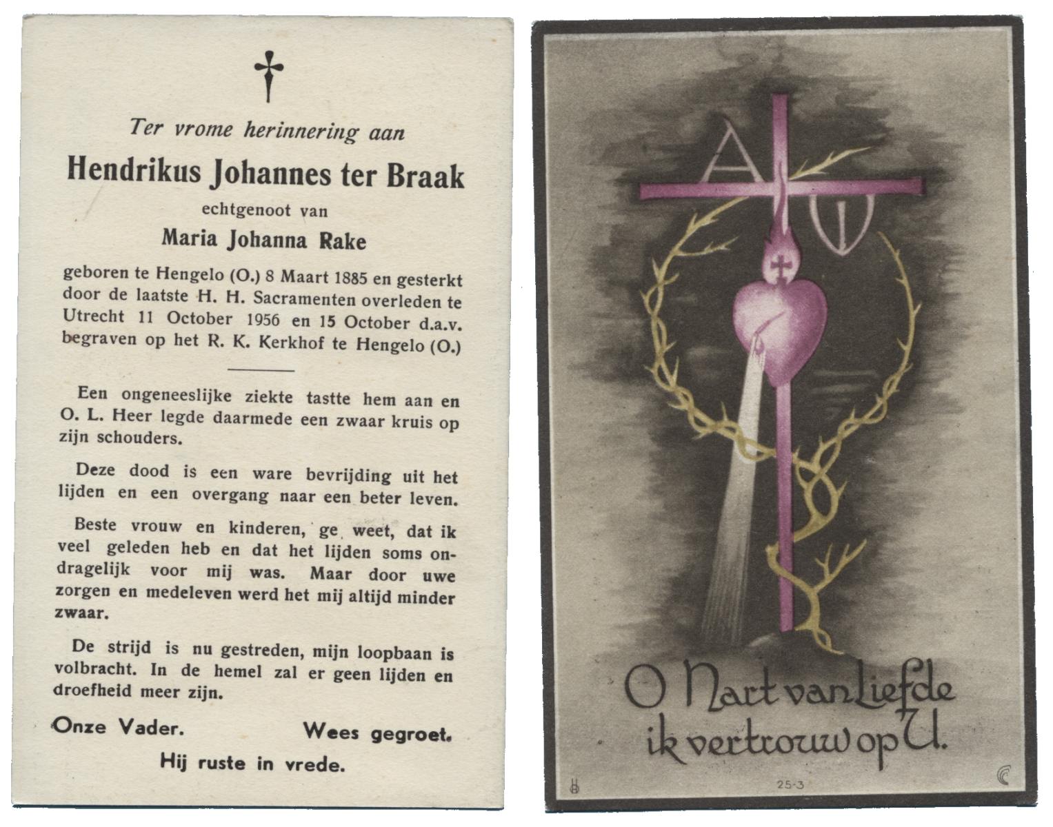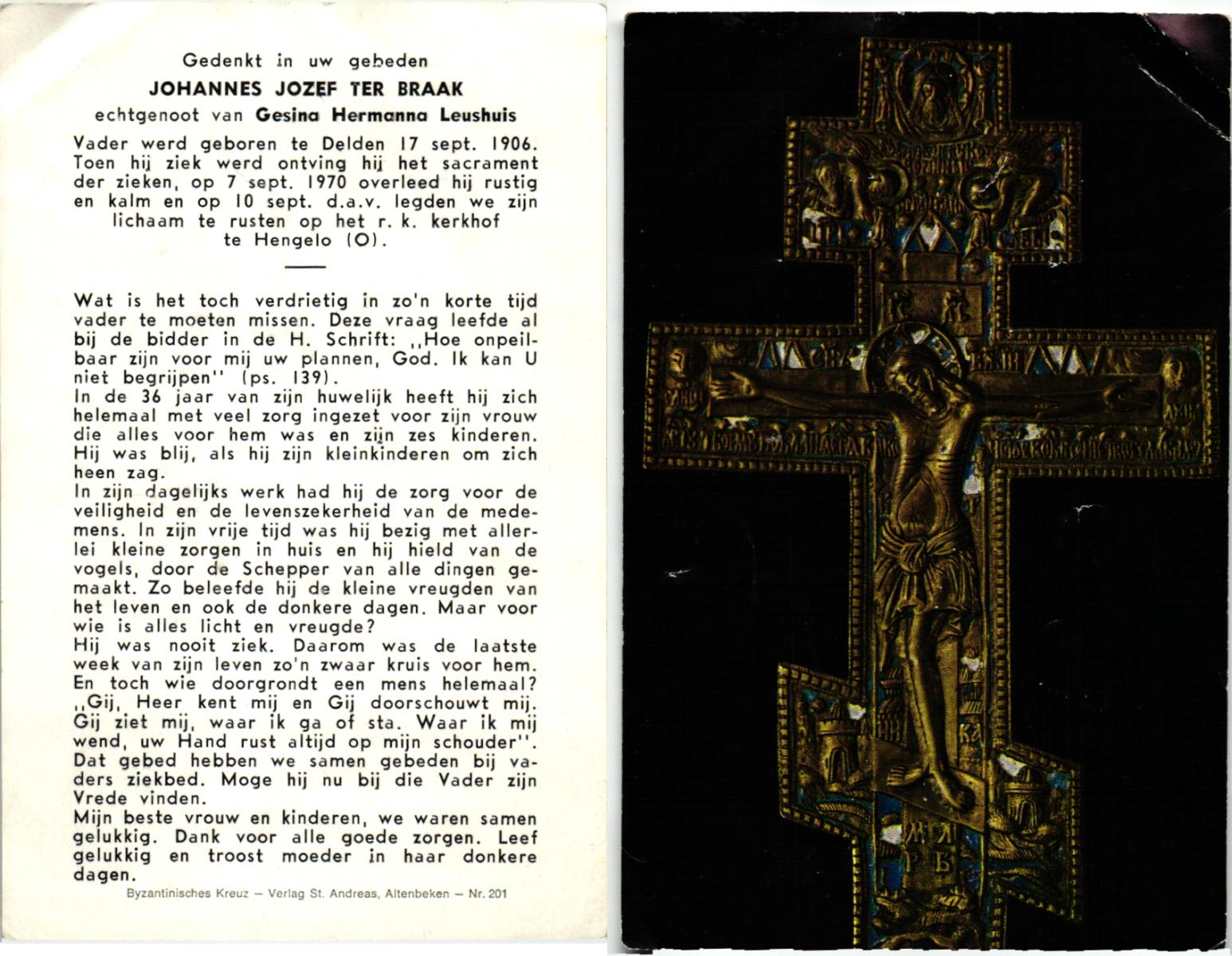 BRAAK, ter, Johannes Jozef, geboren op 17-9-1906 te Delden, overleden op 7-9-1970 op 63-jarige leeftijd, begraven op 10-9-1970 te Hengelo, rk.