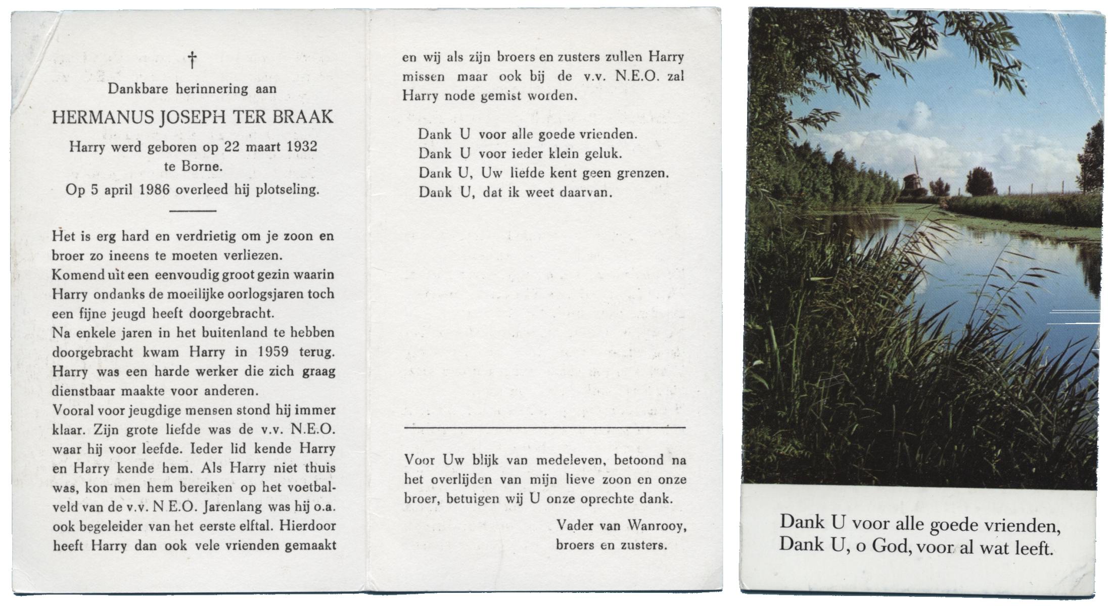 BRAAK, ter, Jo, geboren op 15-8-1921 te Hengelo (O), overleden op 28-12-1987 te Hengelo (Ov.) op 66-jarige leeftijd.