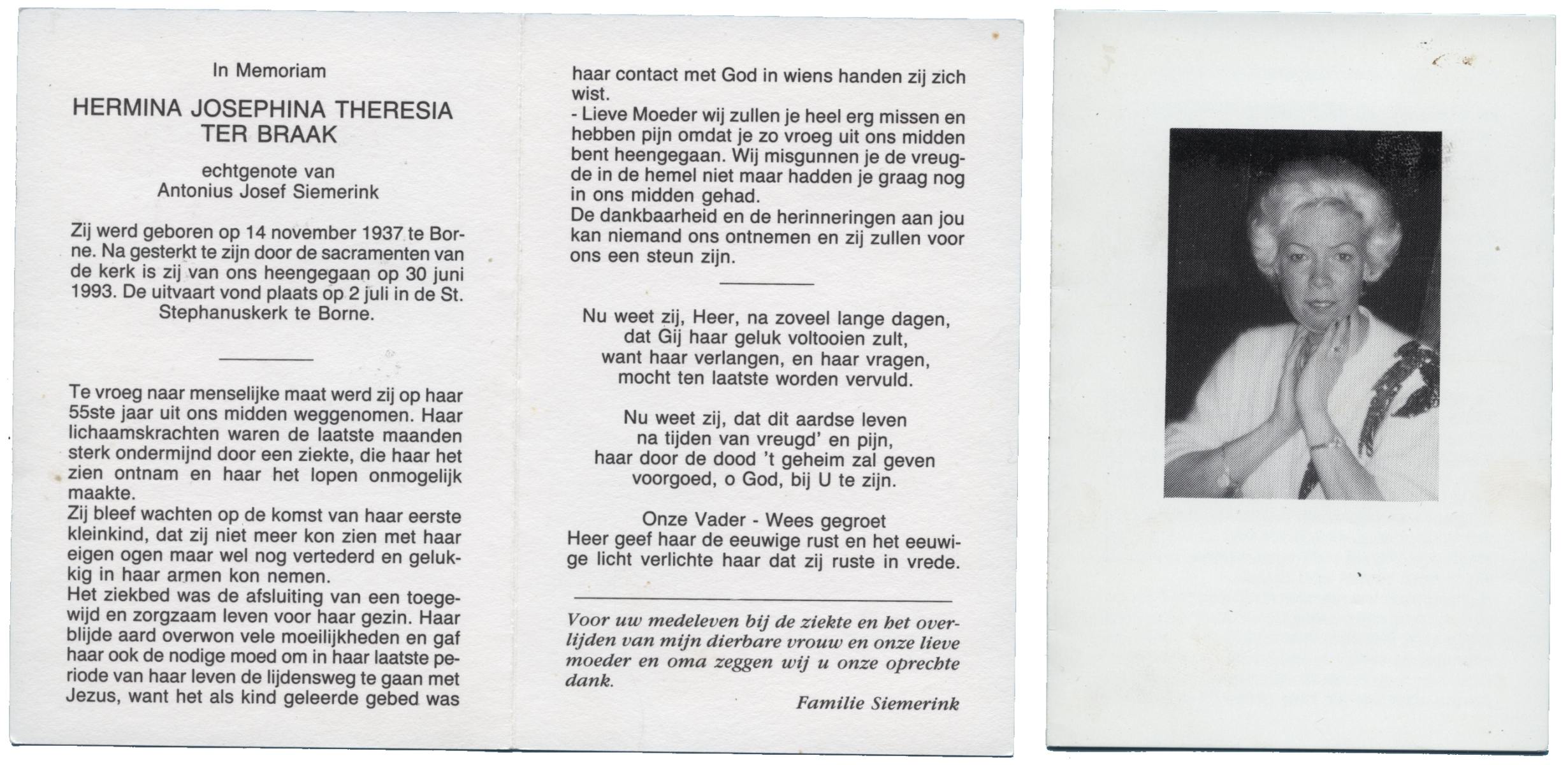 BRAAK, ter, Mien, geboren op 25-11-1913 te Delden, Stad, overleden op 25-2-1998 te Borne op 84-jarige leeftijd, begraven op 28-2-1998 te Borne.