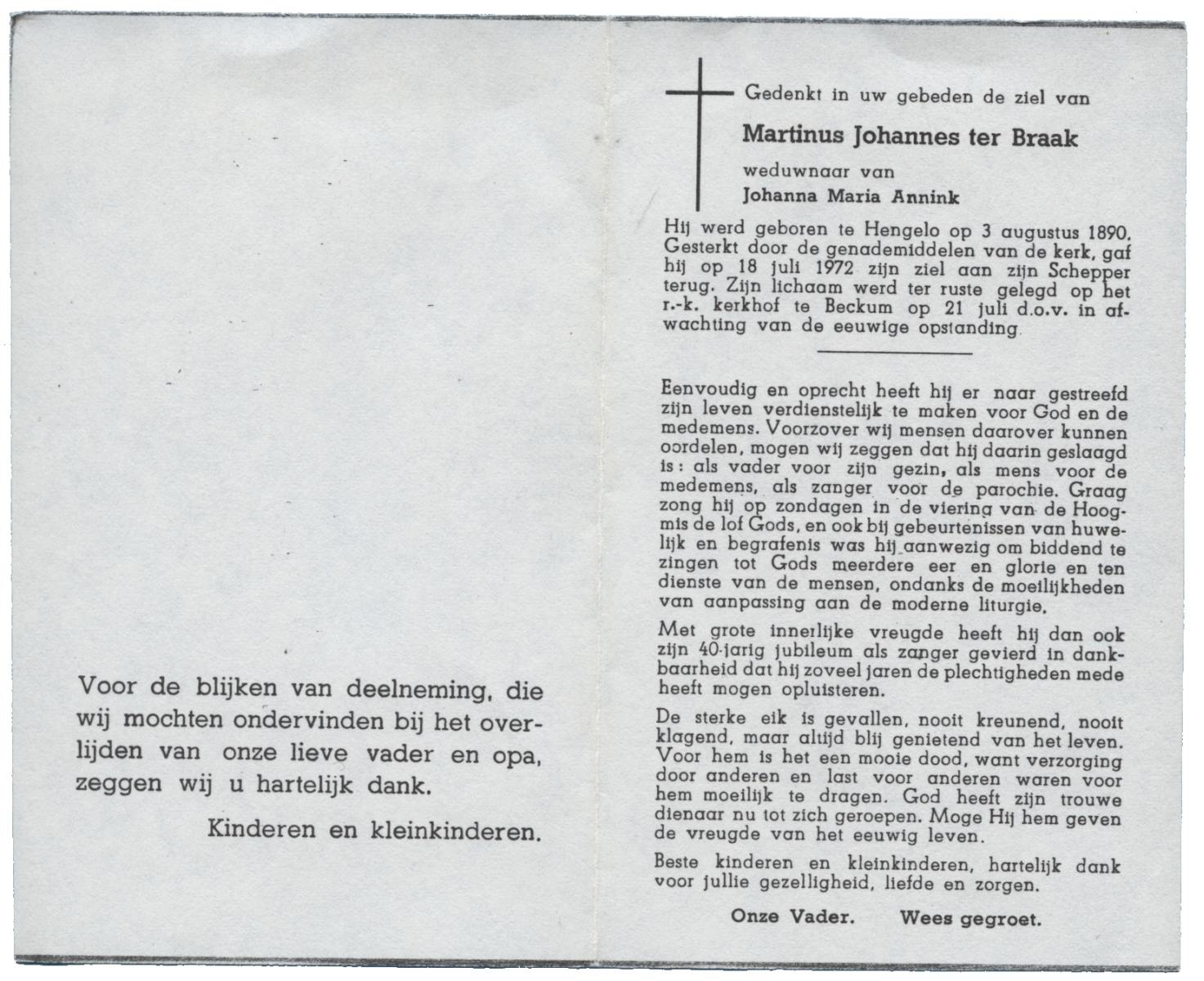 BRAAK, ter, Martinus Johannes, geboren op 03-08-1890 te Hengelo (O), overleden op 18-7-1972 op 81-jarige leeftijd, begraven op 21-7-1972 te Beckum.
