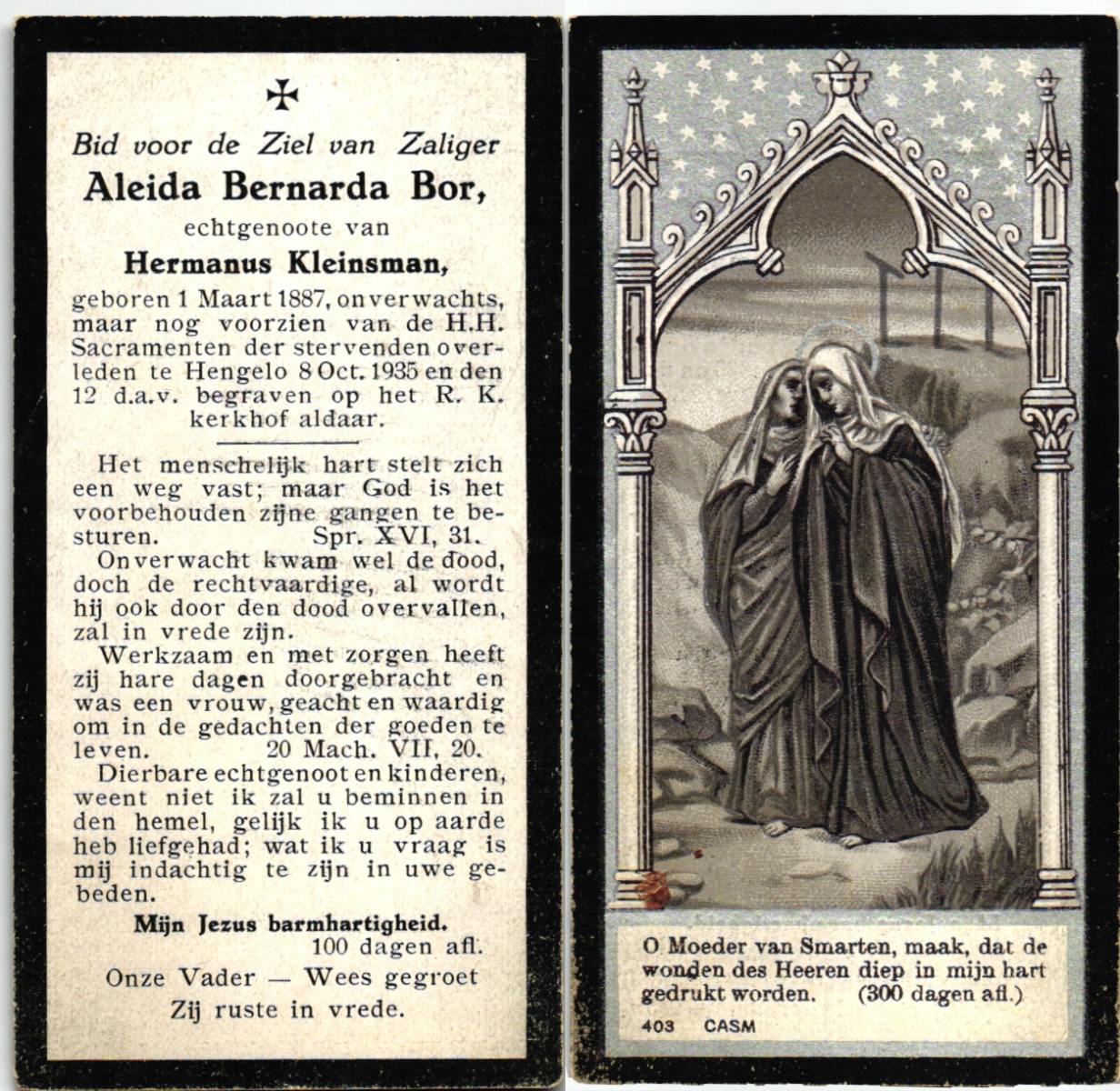 BOR, , Aleida Bernarda, geboren op 01-03-1887, overleden op 8-10-1935 te Hengelo (O) op 48-jarige leeftijd, begraven op 12-10-1935 te Hengelo, rk.