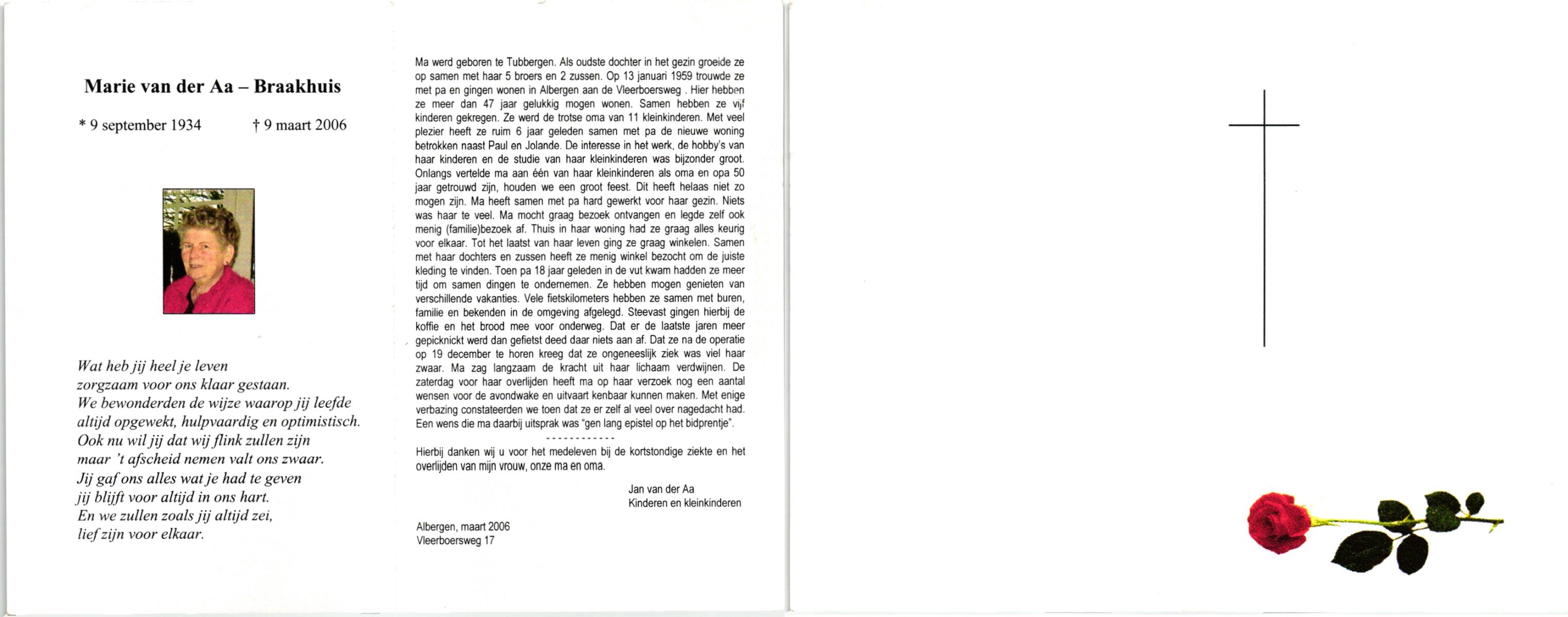 BRAAKHUIS, , Marie, geboren op 9-9-1934 te Tubbergen, overleden op 9-3-2006 op 71-jarige leeftijd.