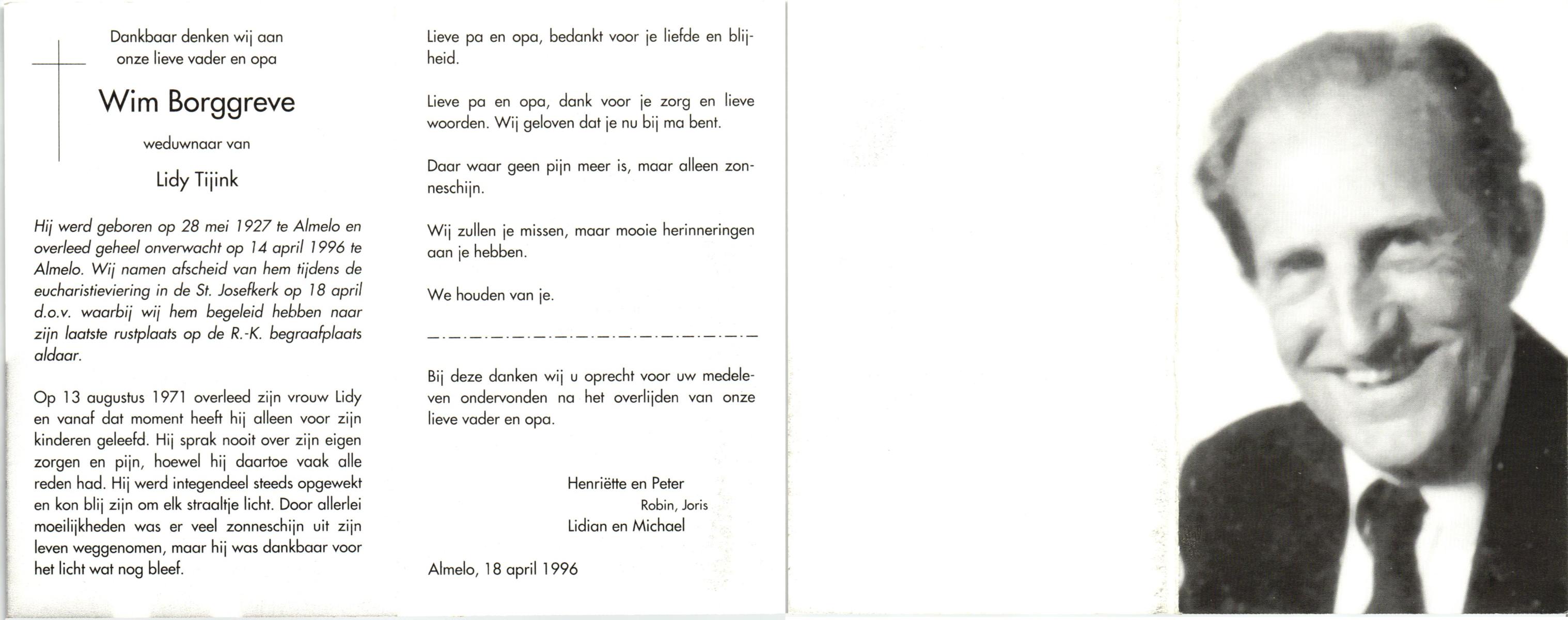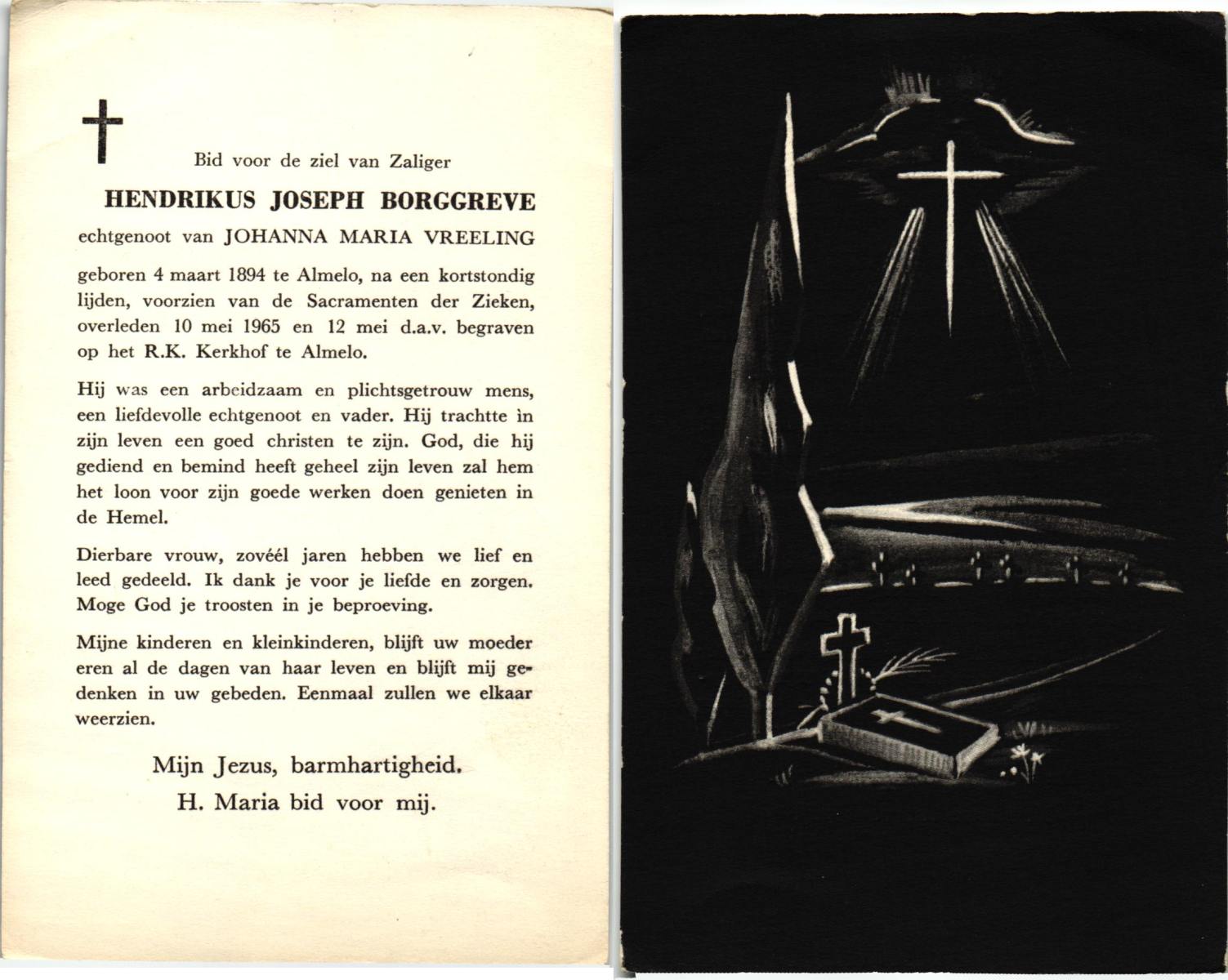 BORGGREVE, Hendrikus Joseph, geboren op 04-03-1894 te Almelo, overleden op 10-5-1965 op 71-jarige leeftijd, begraven op 12-5-1965 te Almelo.