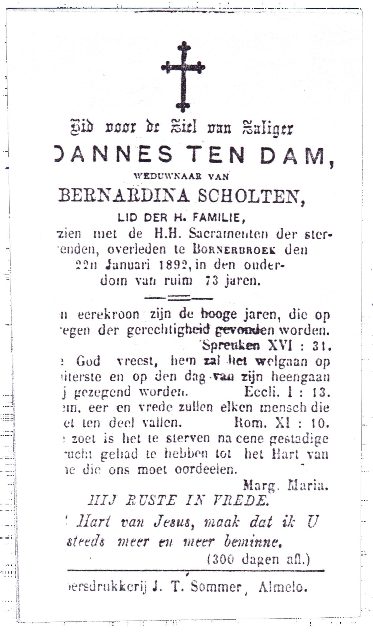 DAM, ten, Jannes, overleden op 22-01-1892 te Bornerbroek op 73-jarige leeftijd.
