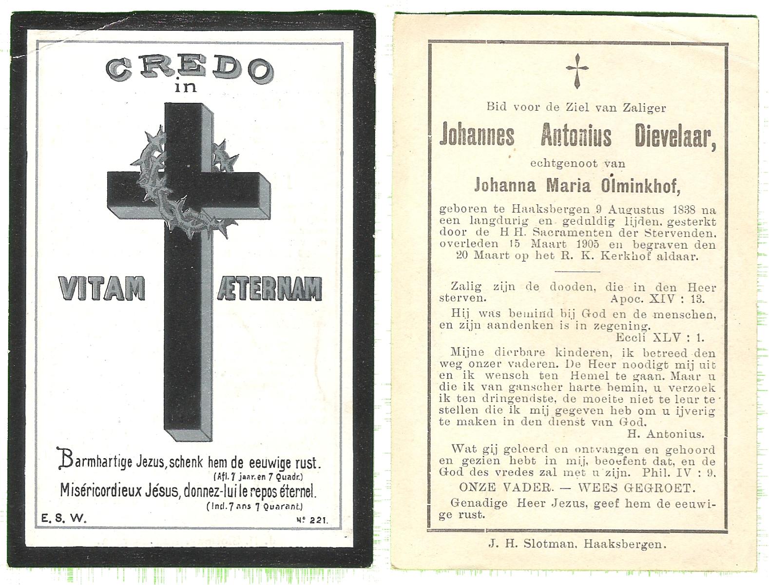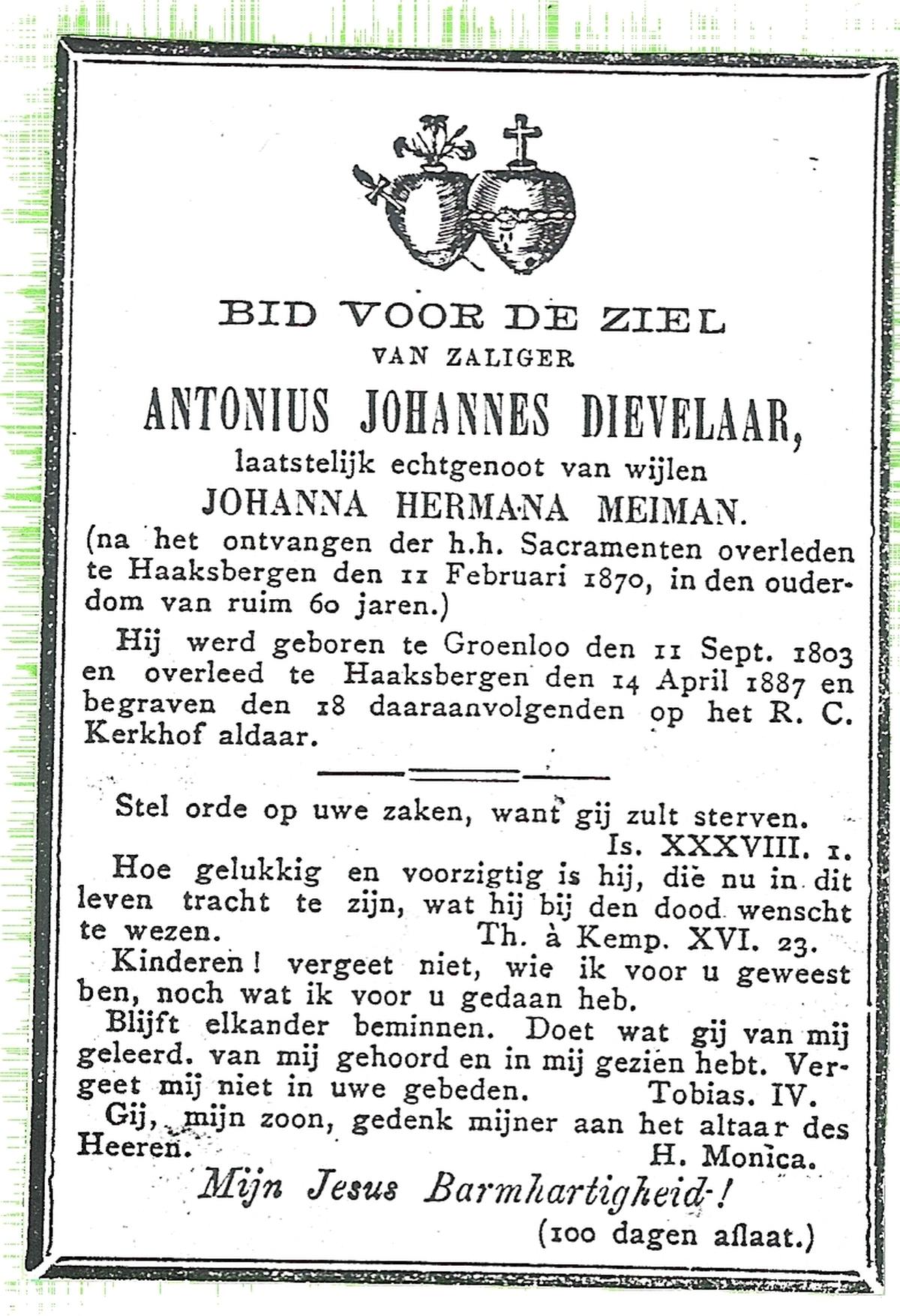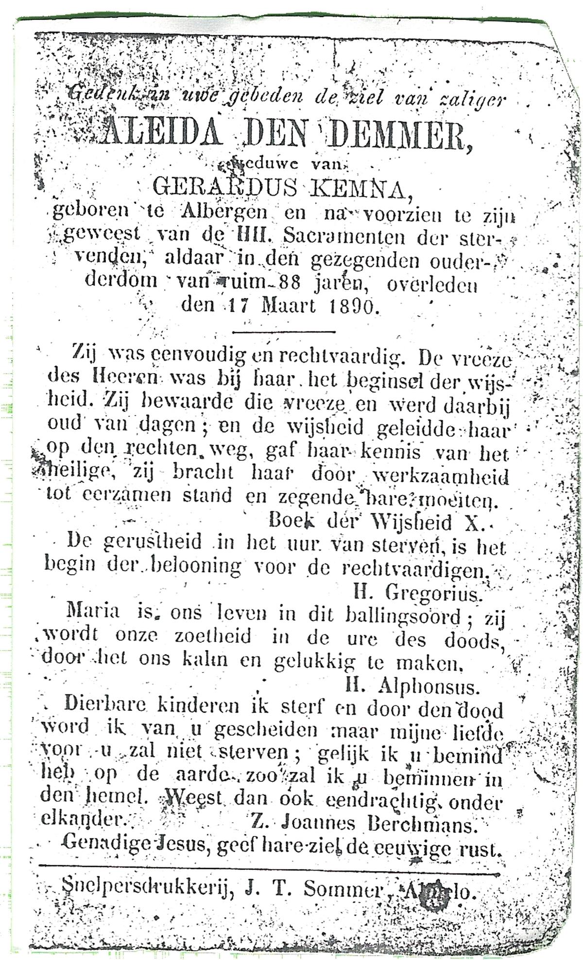 DAM, ten, Joanna, geboren op 15-08-1854 te Delden, Ambt, overleden op 27-7-1933 te Delden, Ambt op 78-jarige leeftijd, begraven op 31-7-1933 te Delden.