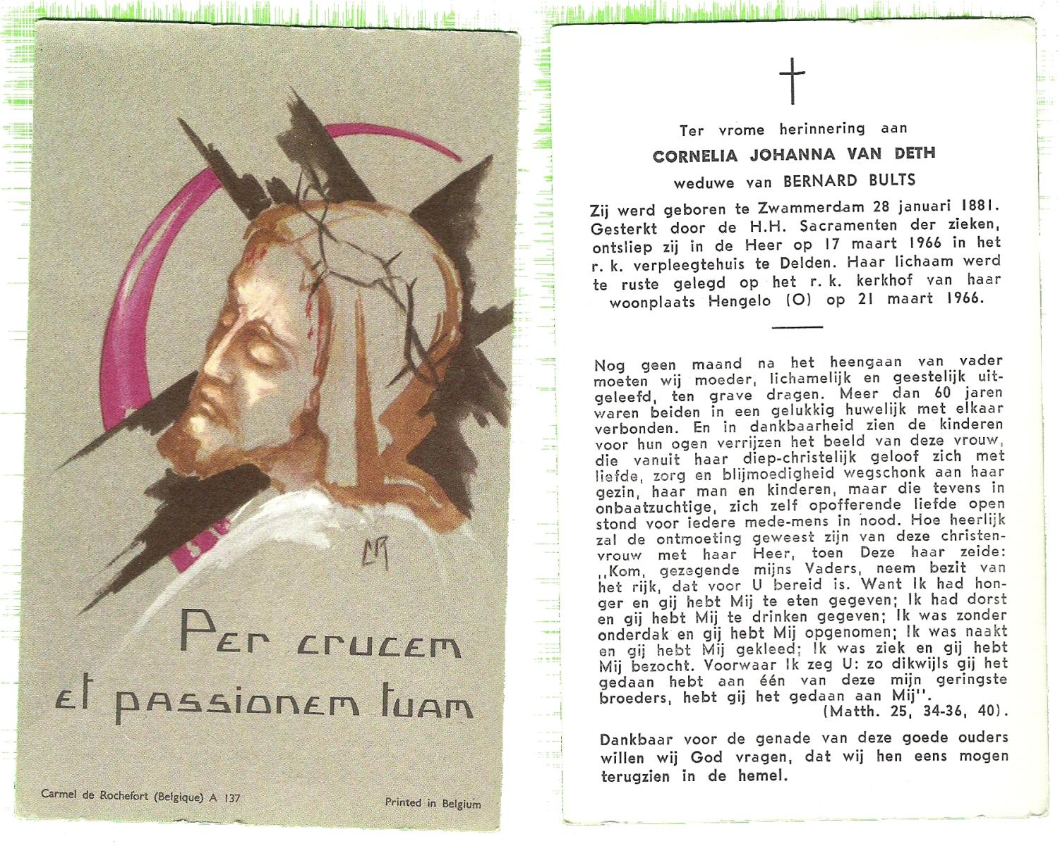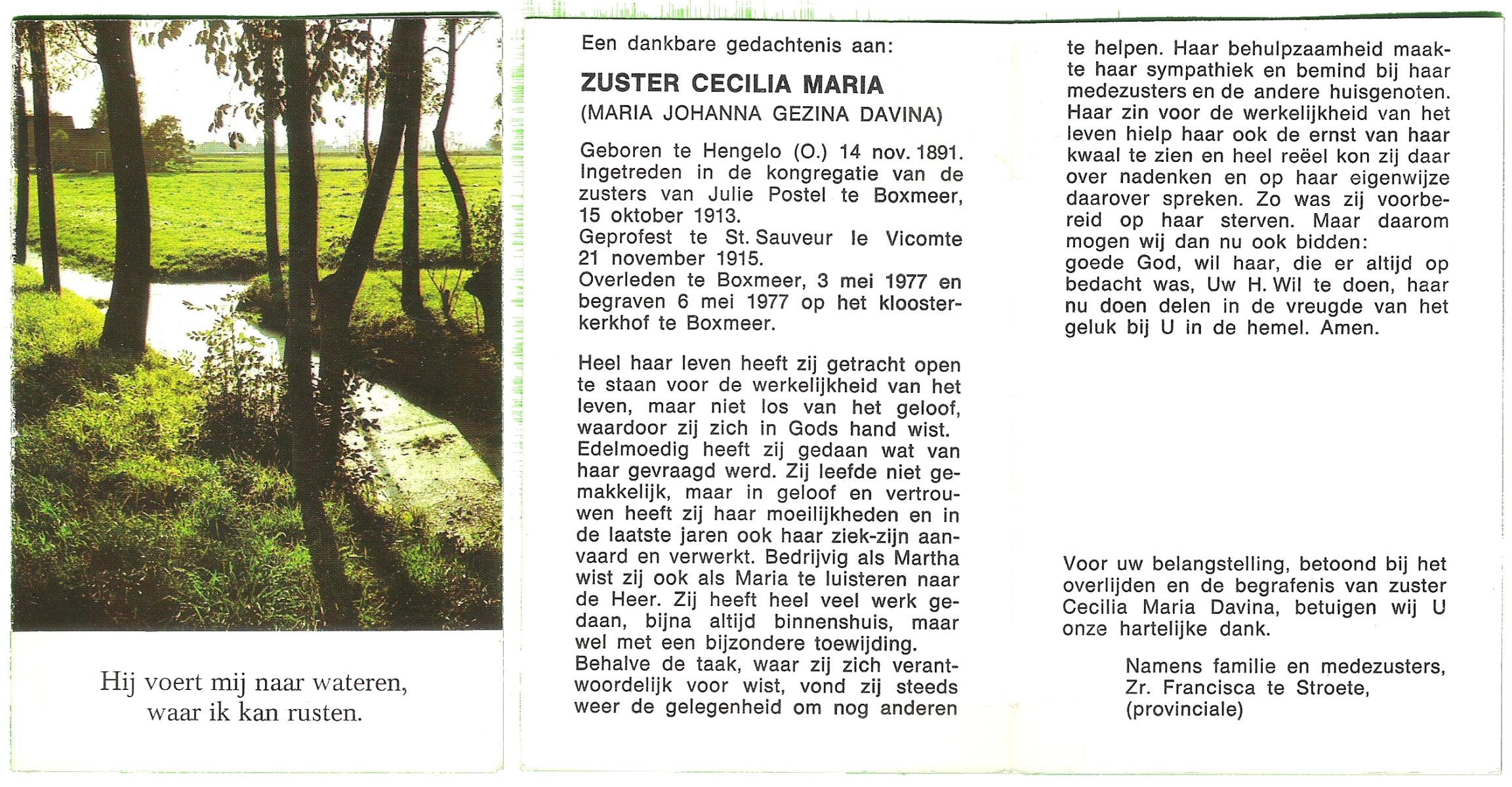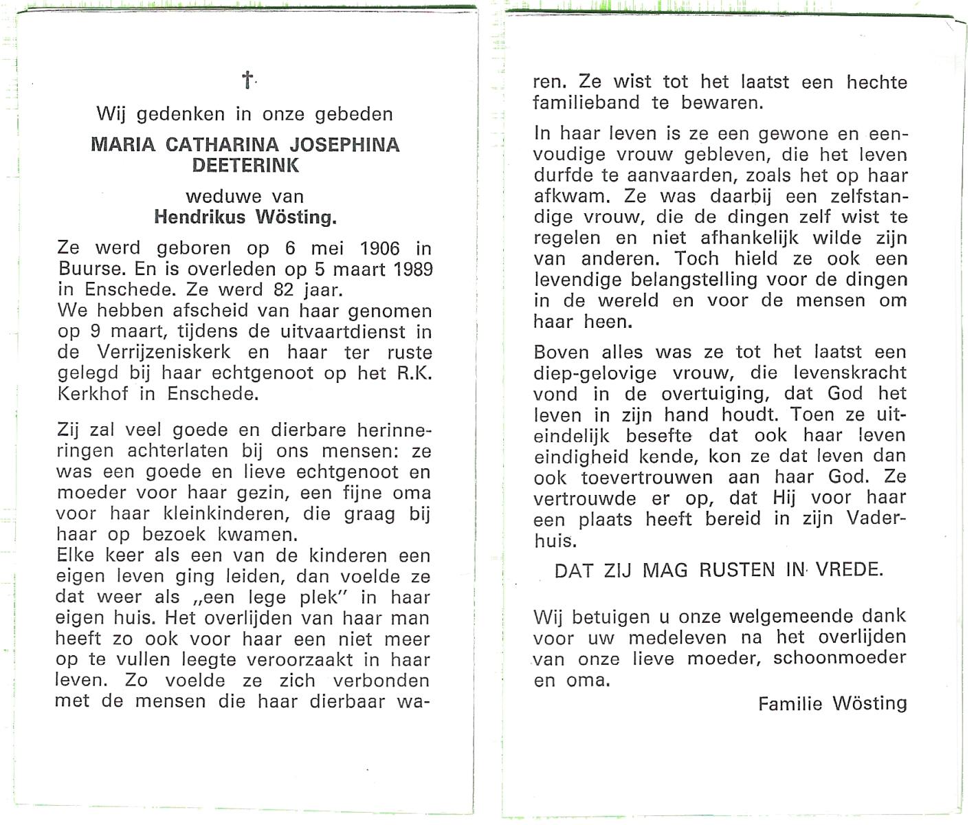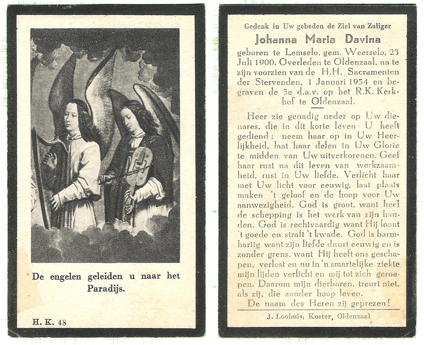 DAM, ten, Johanna Maria, geboren op 28-10-1913 te Haaksbergen, overleden op 10-5-1979 te Bentelo op 66-jarige leeftijd, begraven op 14-5-1979 te Bentelo.