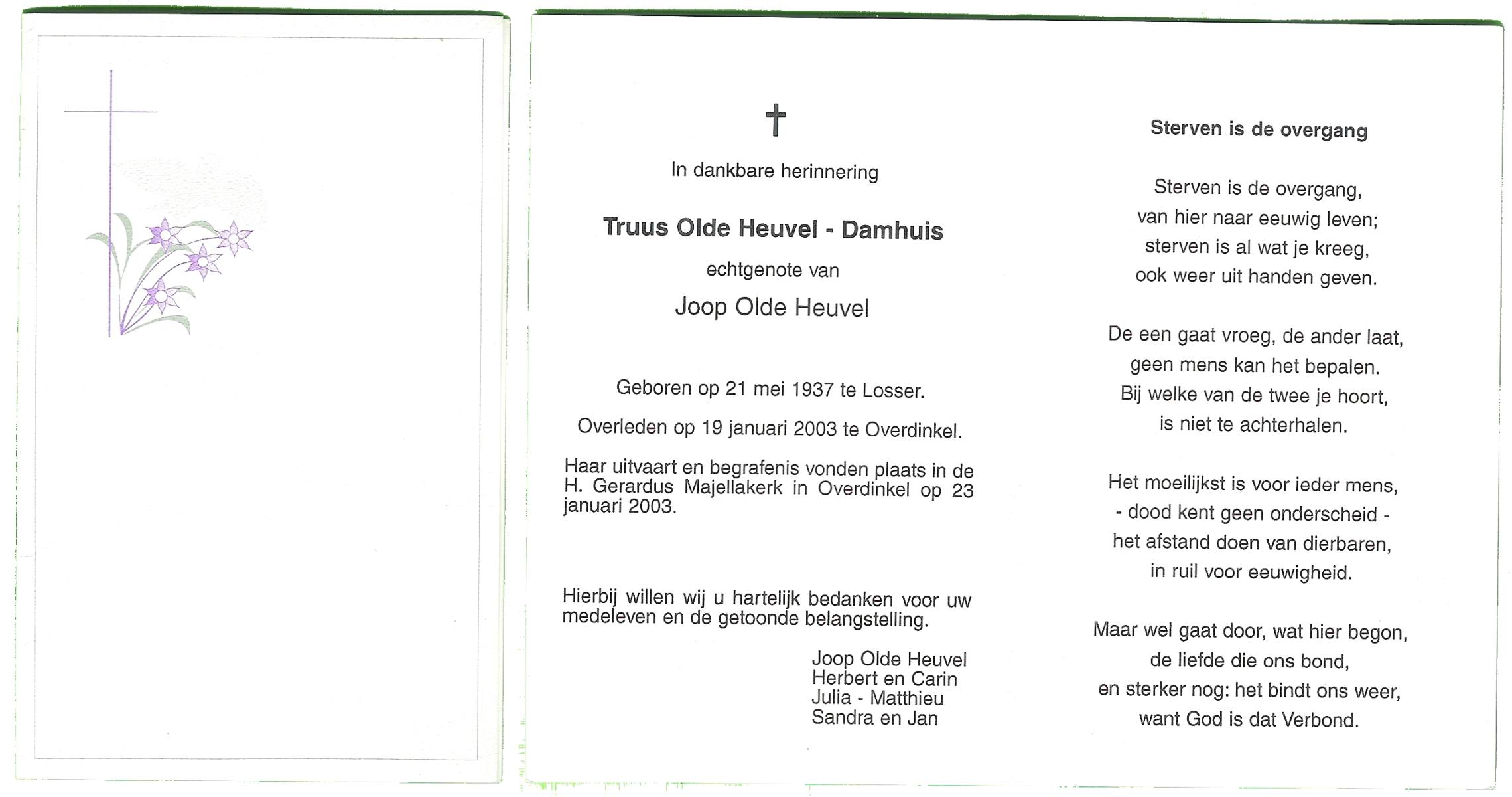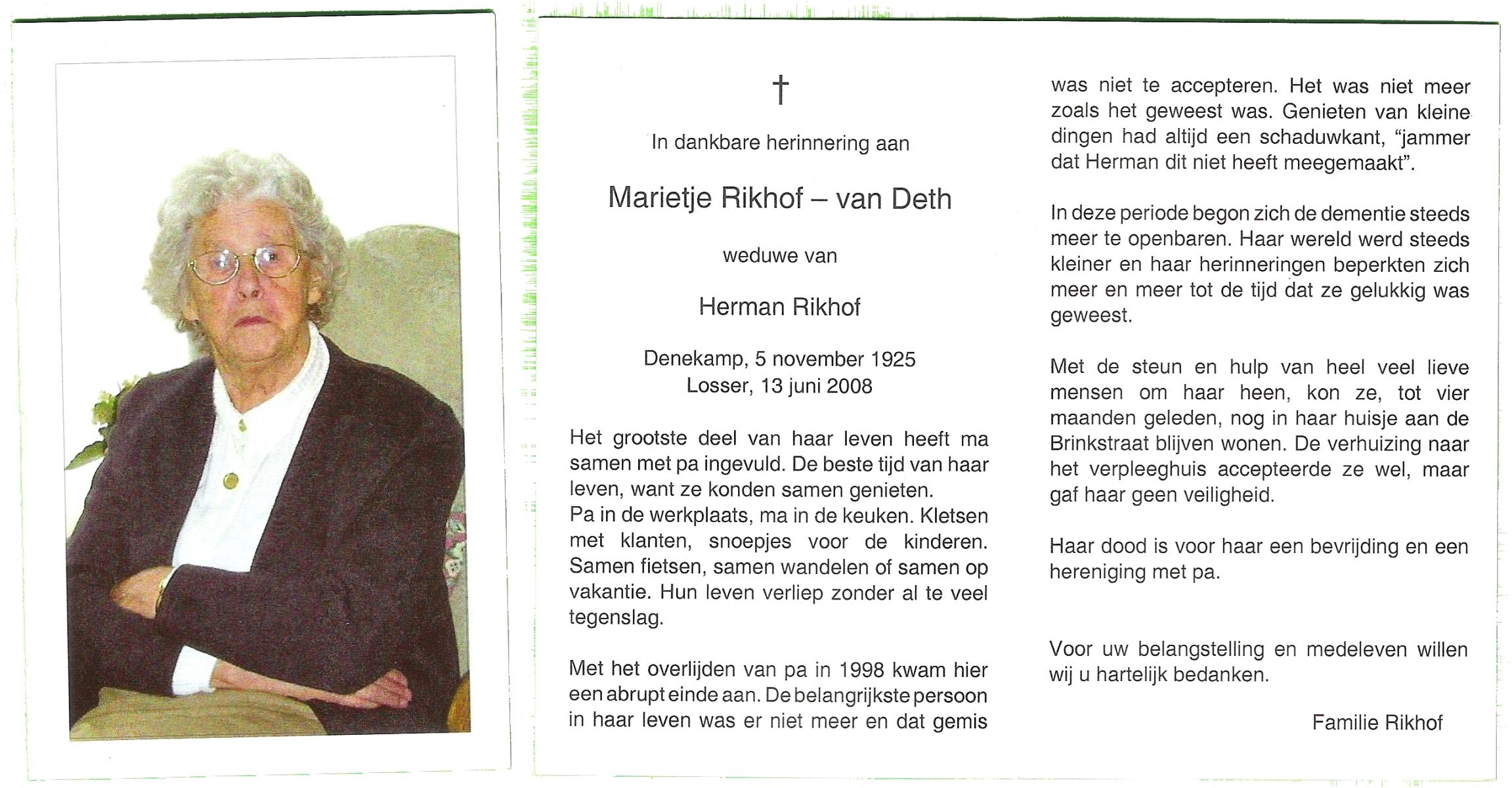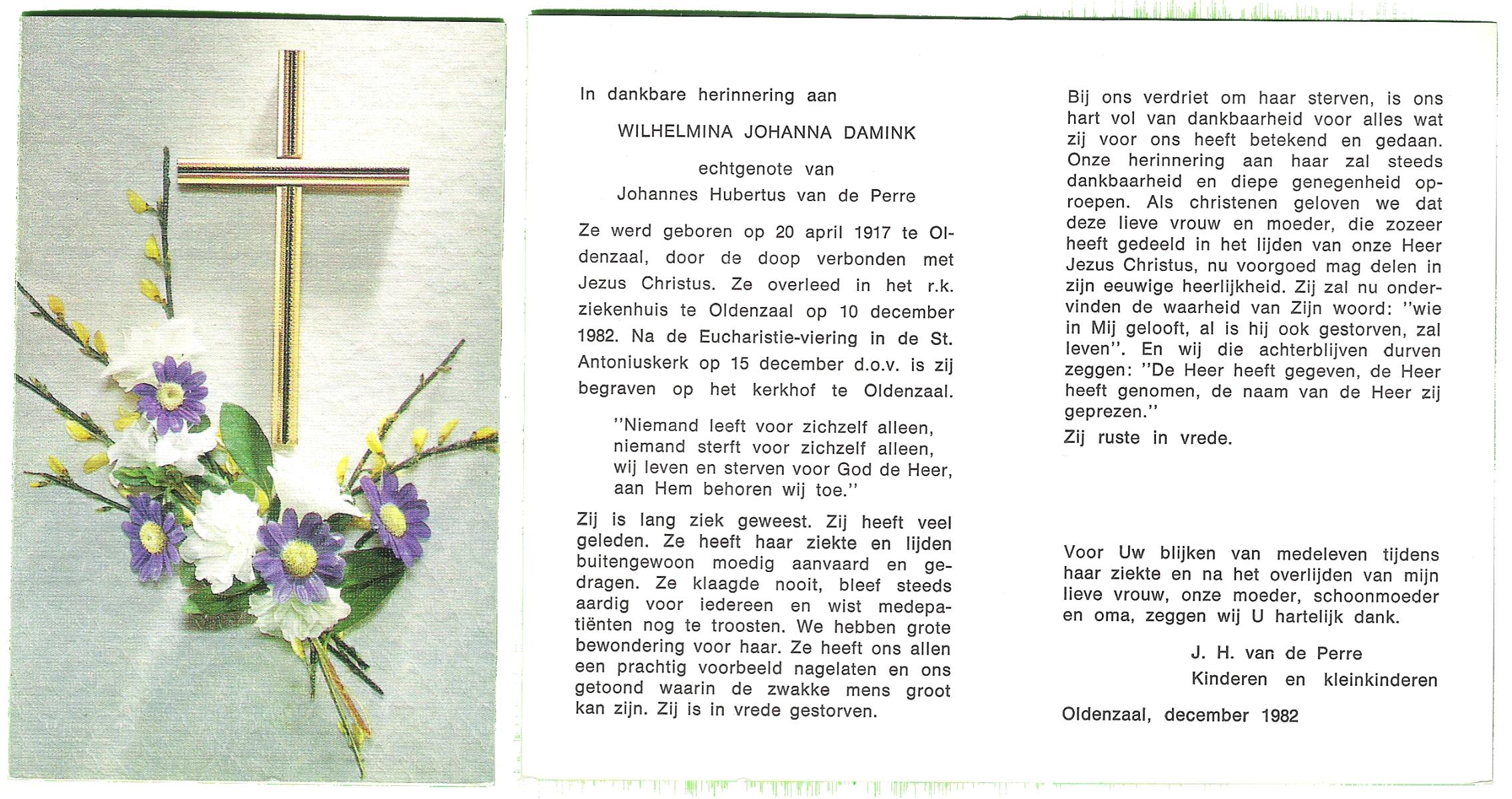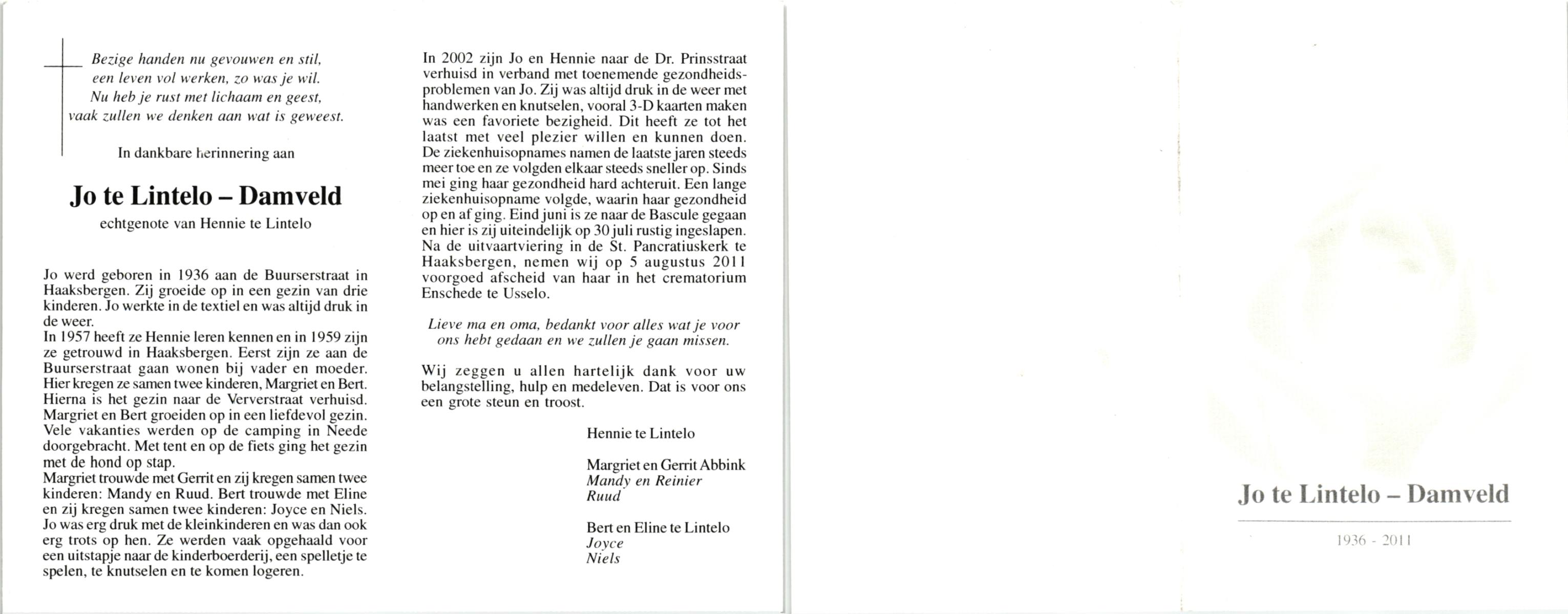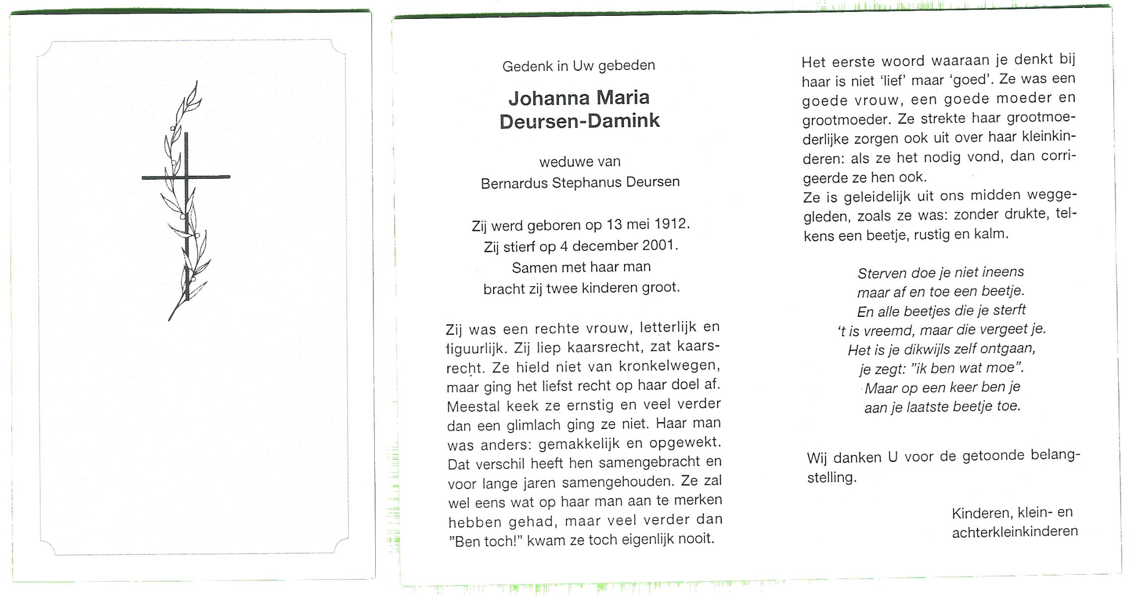 DAM, ten, Maria Johanna, geboren op 19-5-1912 te De Lutte, overleden op 28-10-2007 te Weerselo op 95-jarige leeftijd.