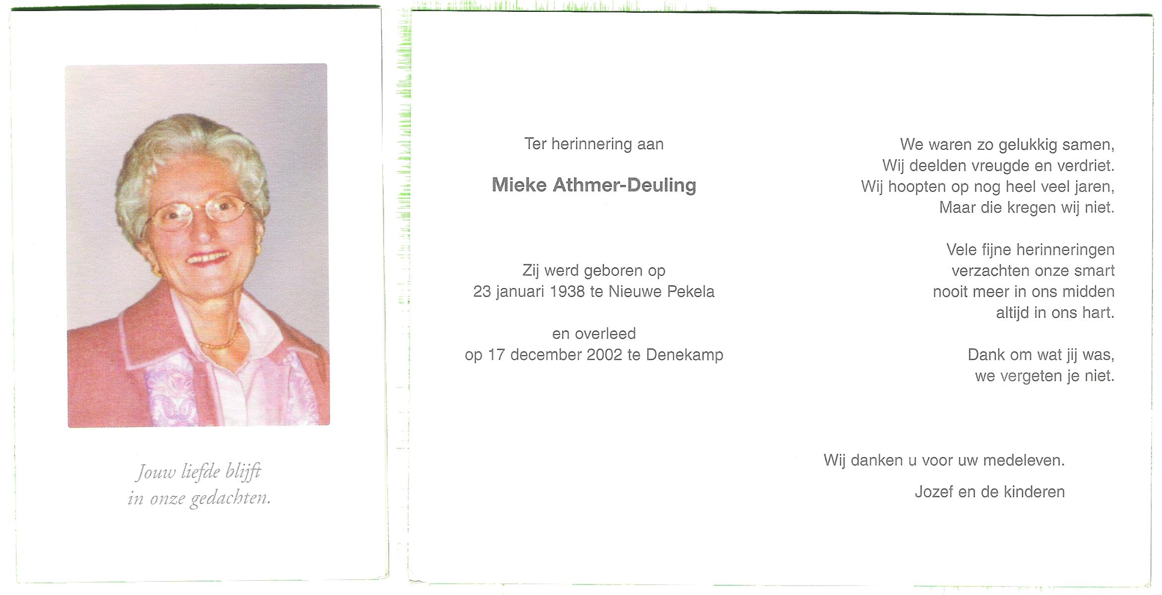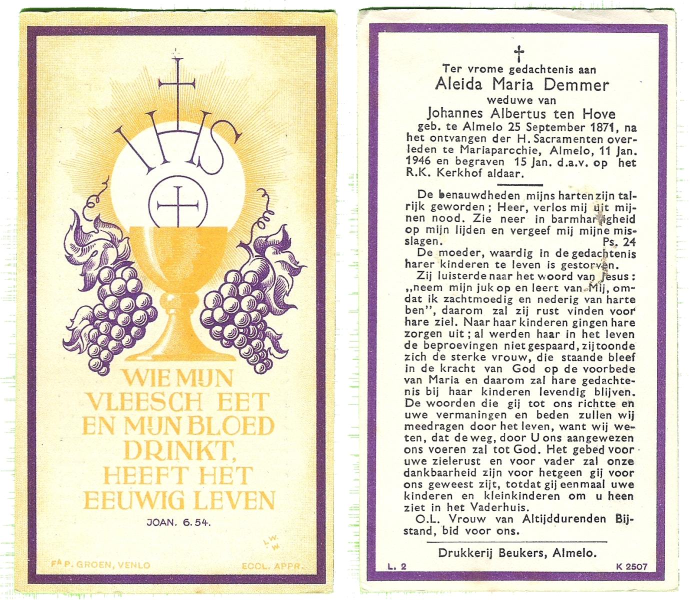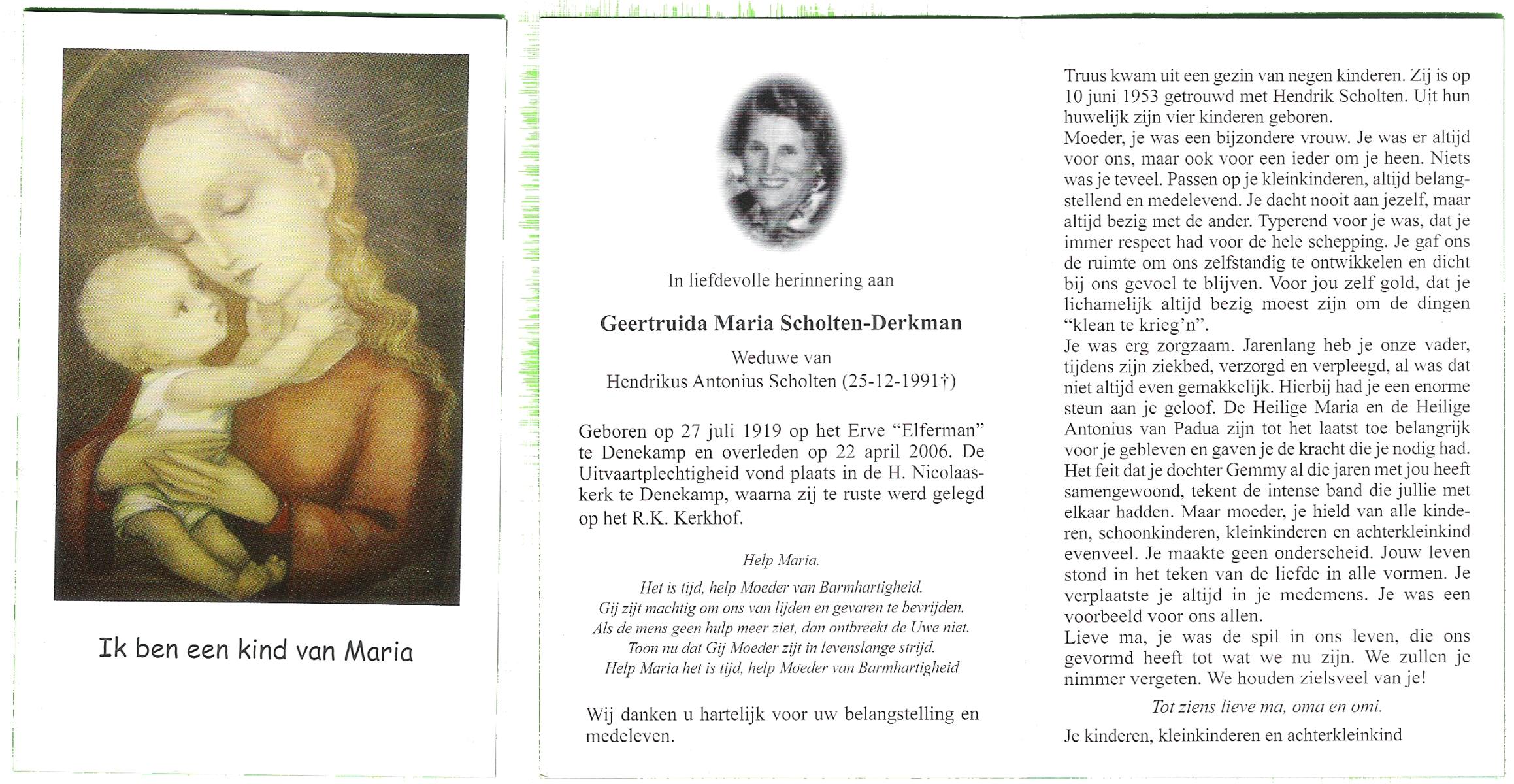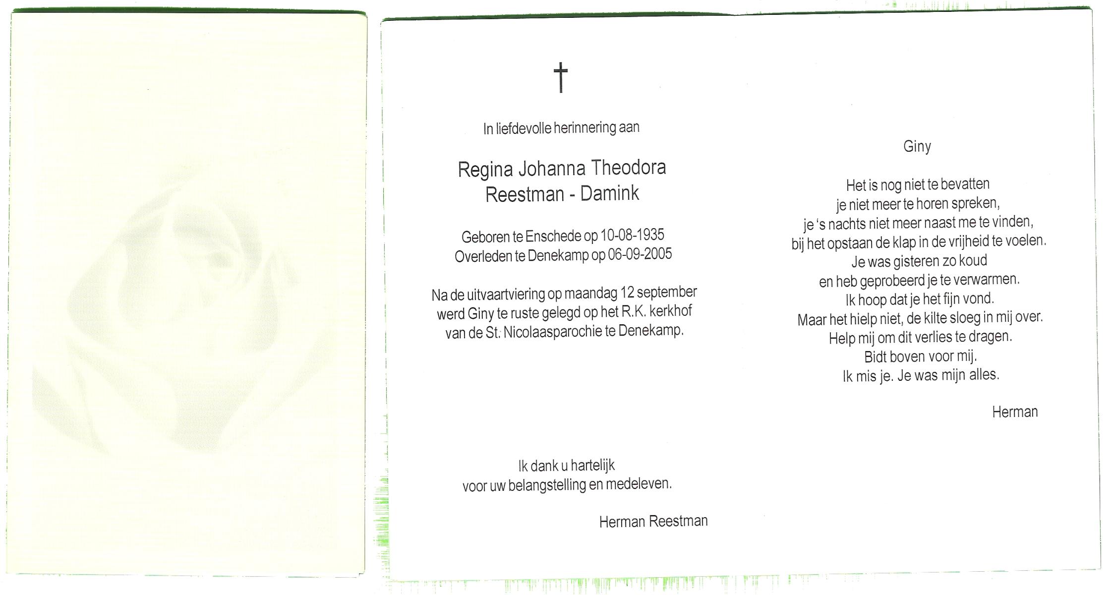 DAM, ten, Maria Johanna, geboren op 19-5-1912 te De Lutte, overleden op 28-10-2007 te Weerselo op 95-jarige leeftijd.