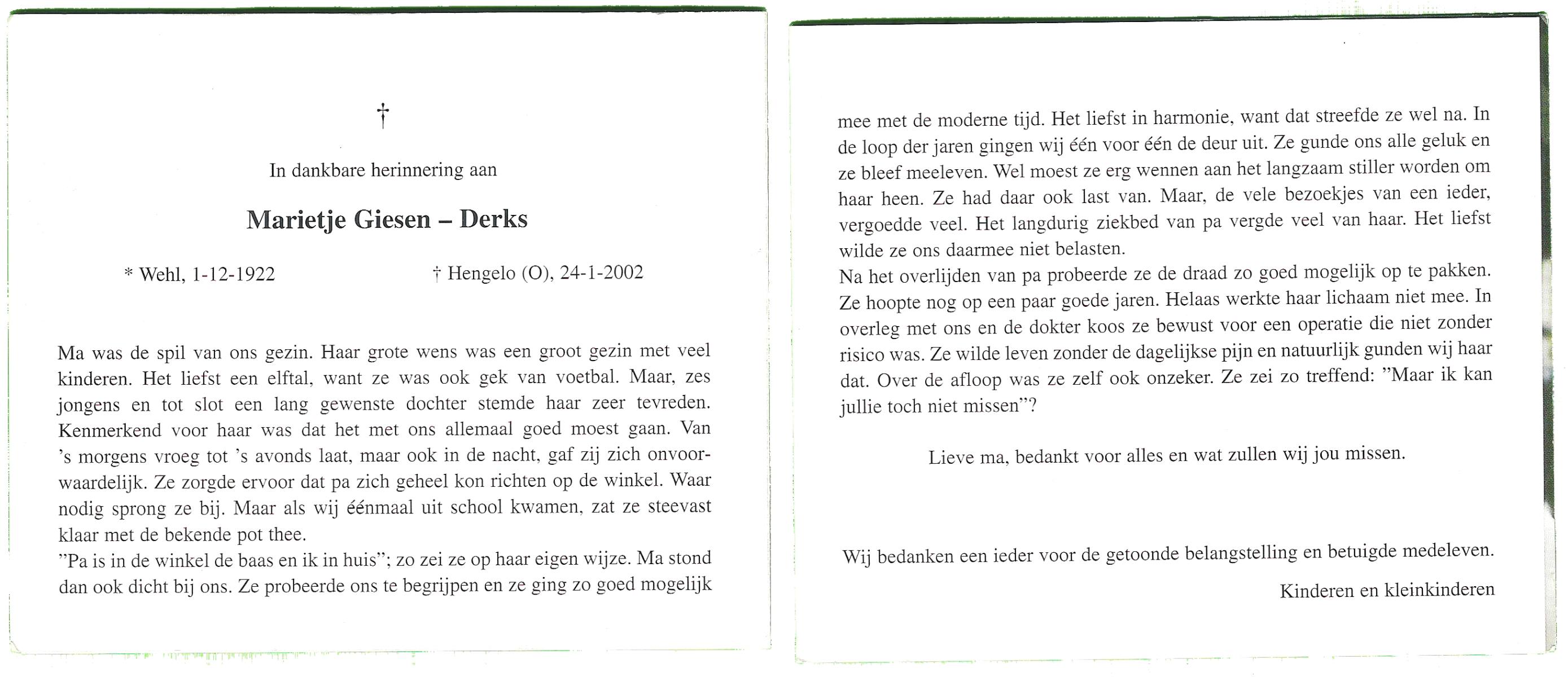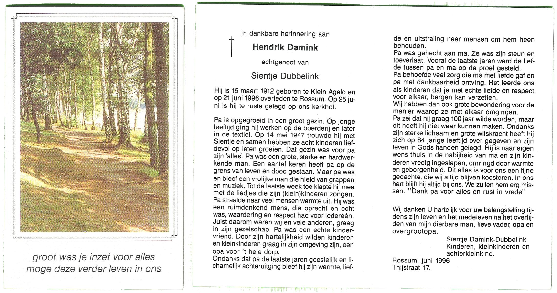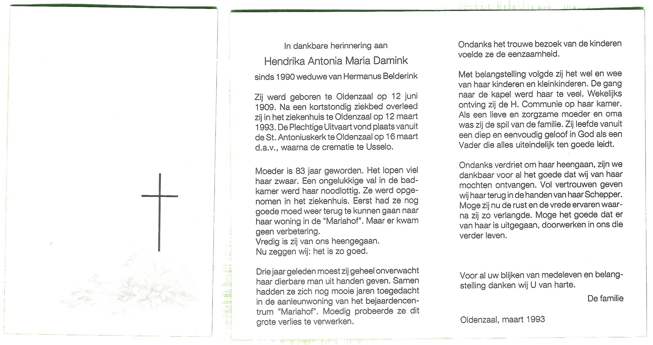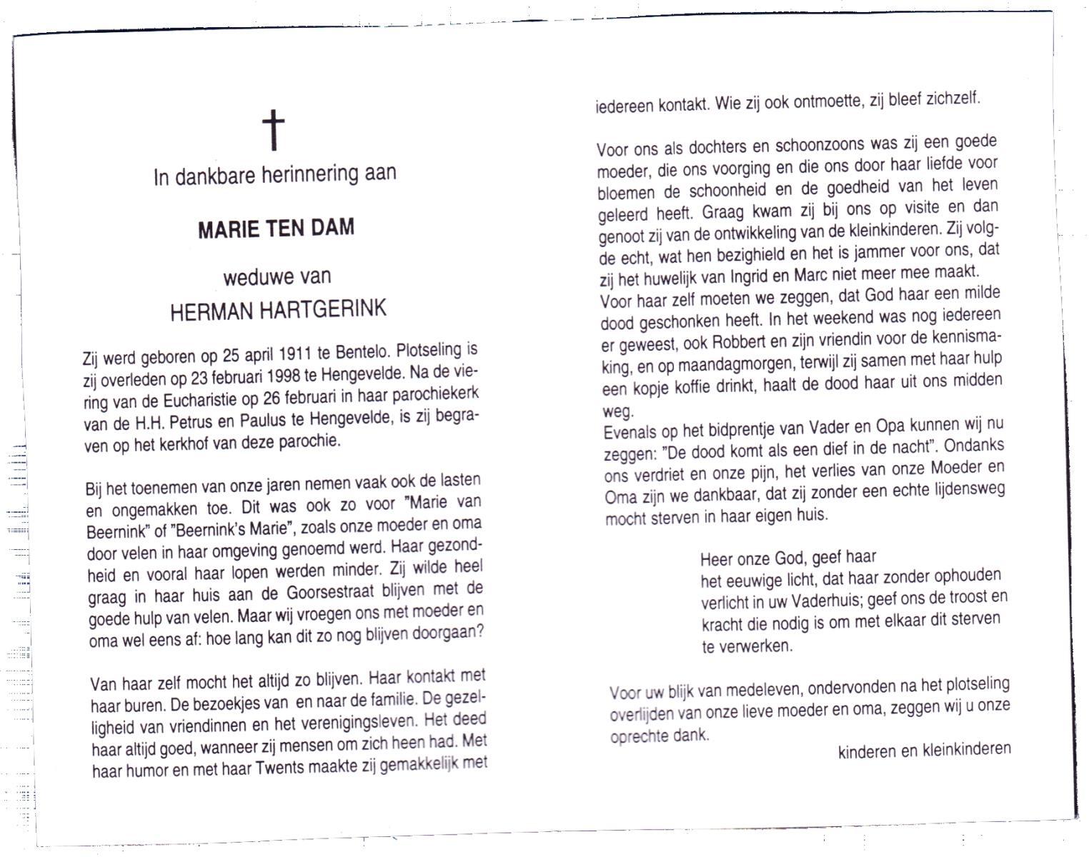 DAM, ten, Marie, geboren op 25-4-1911 te Bentelo, overleden op 23-2-1998 te Hengevelde op 86-jarige leeftijd, begraven op 26-2-1998 te Hengevelde.