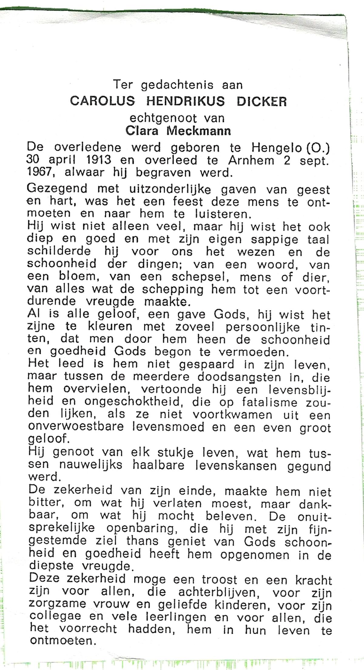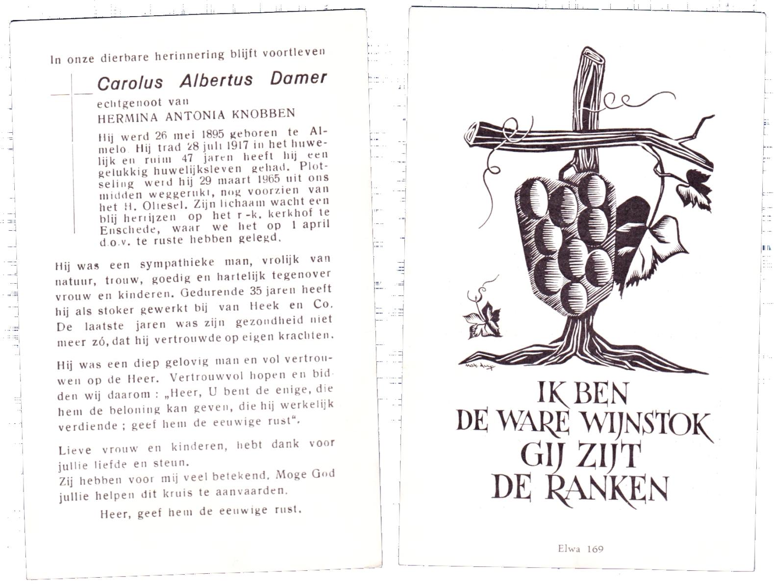 DAMER, Carolus Albertus, geboren op 26-05-1895 te Almelo, overleden op 29-3-1965 op 69-jarige leeftijd, begraven op 1-4-1965 te Enschede.