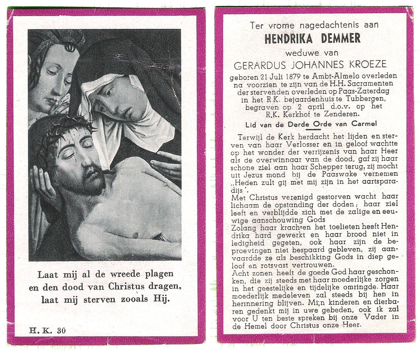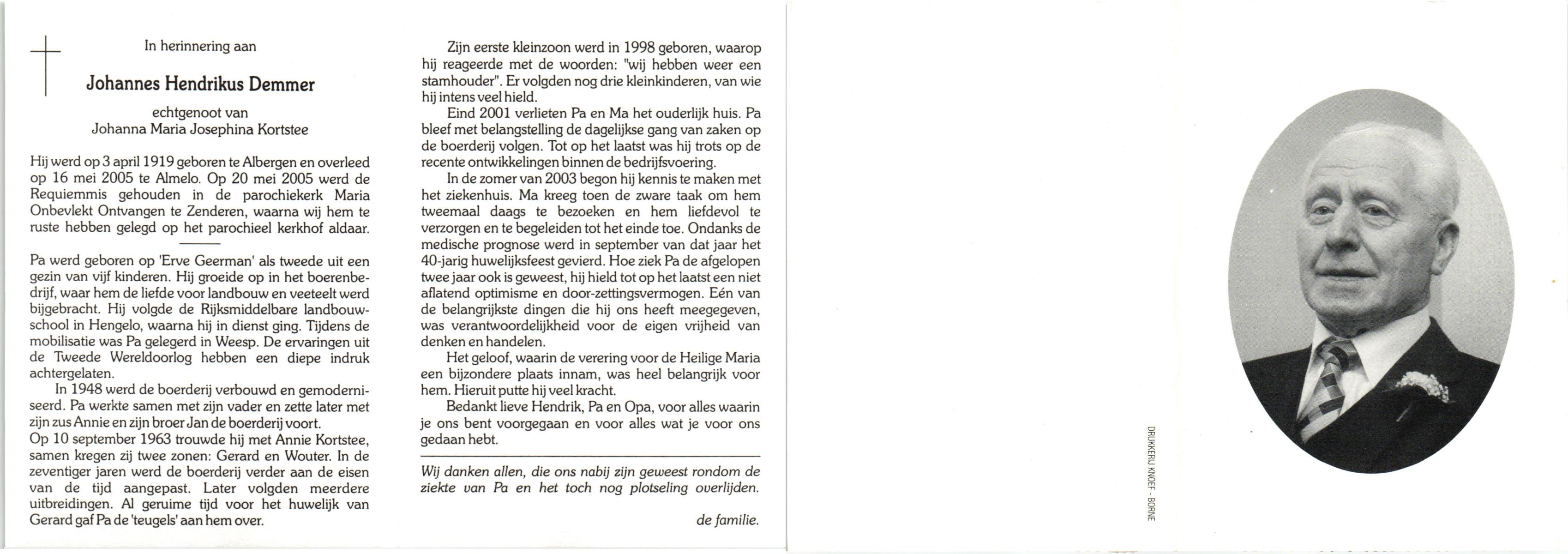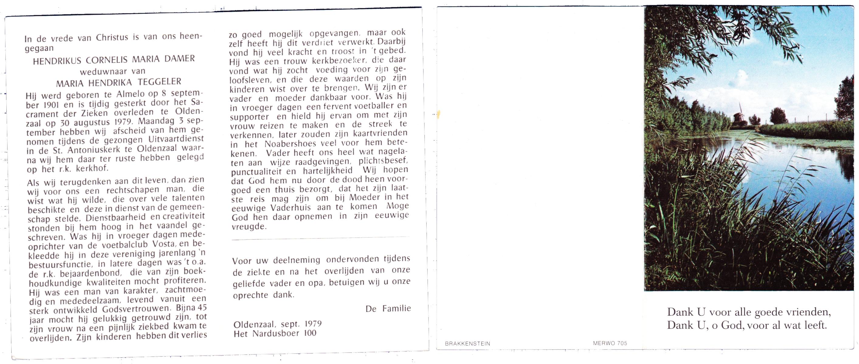 DAMER, Hendrikus Cornelis Maria, geboren op 8-9-1901 te Almelo, overleden op 30-8-1979 te Oldenzaal op 77-jarige leeftijd, begraven op 3-9-1979 te Oldenzaal.
