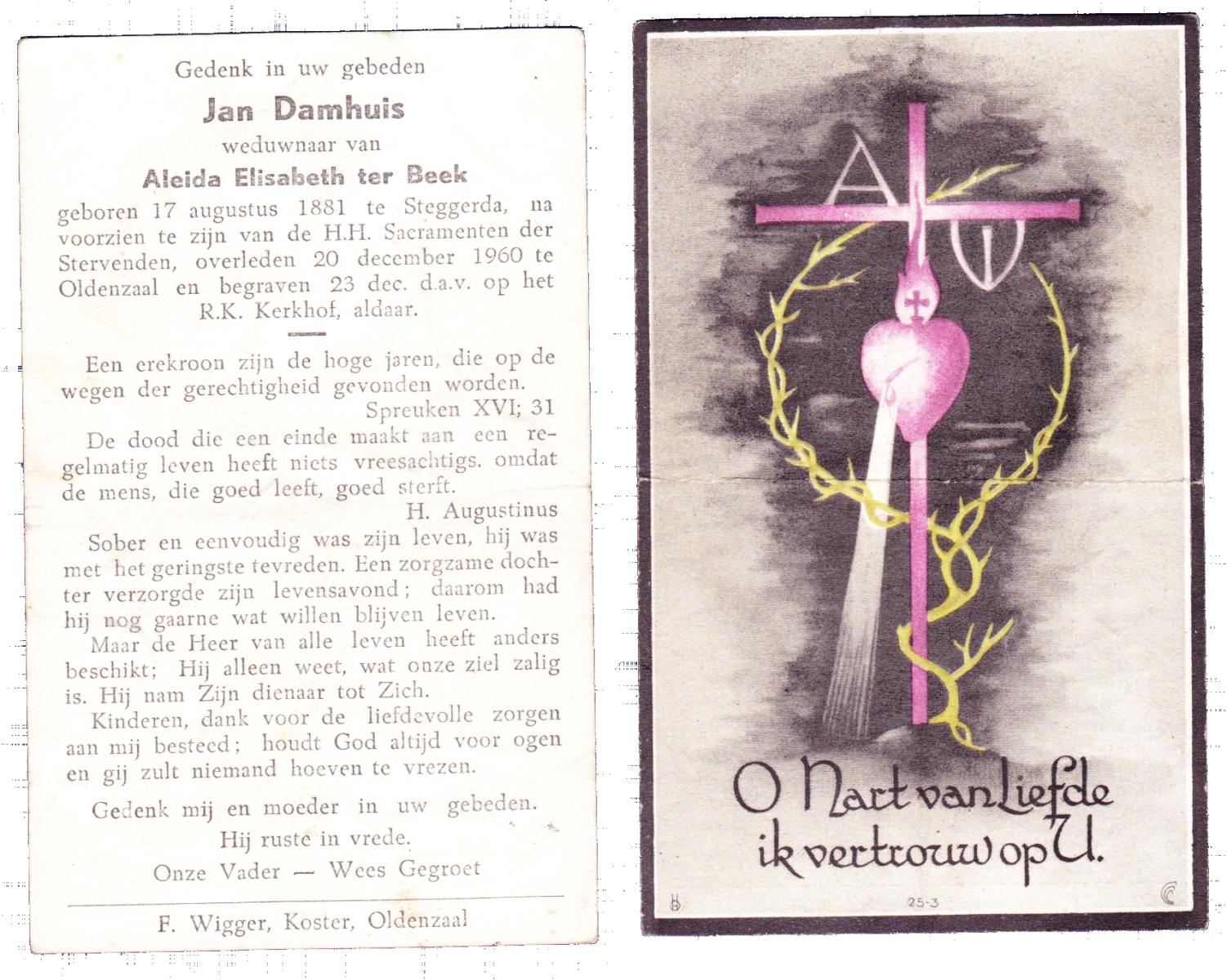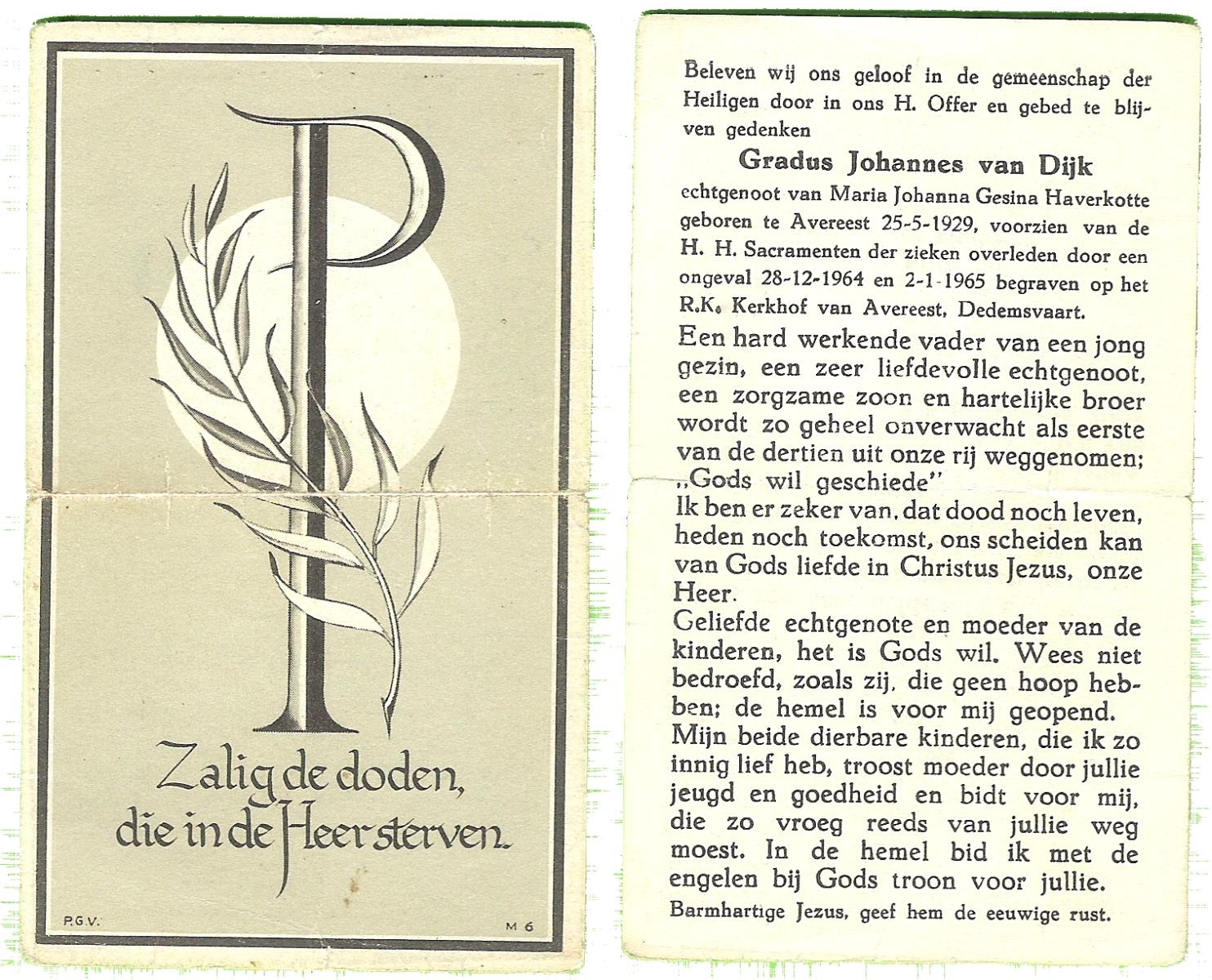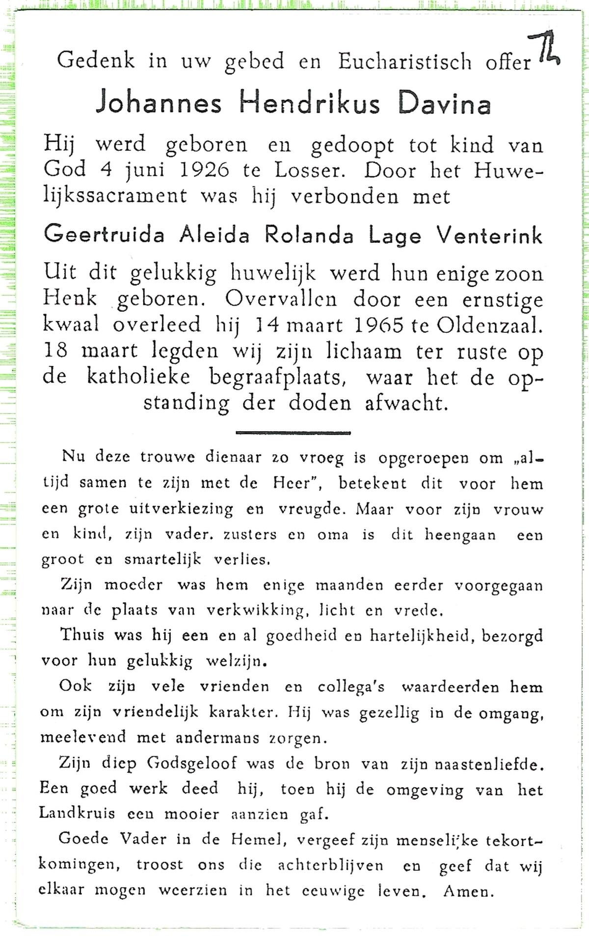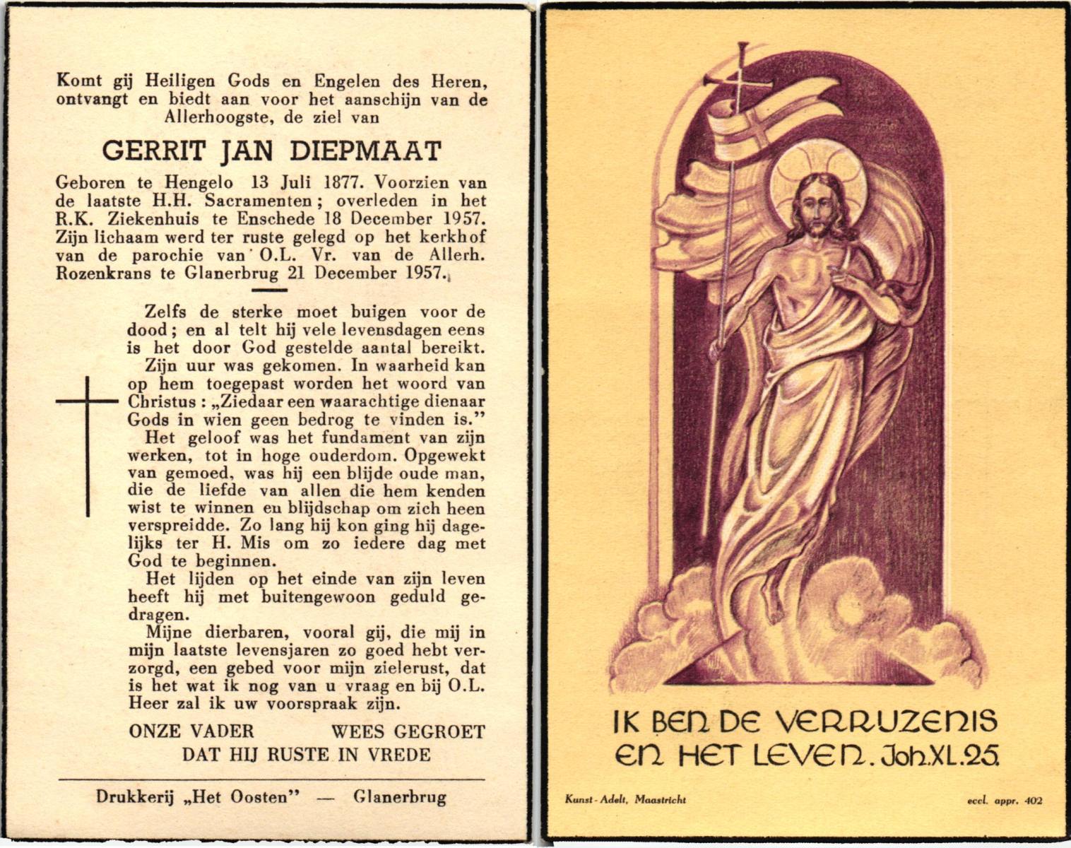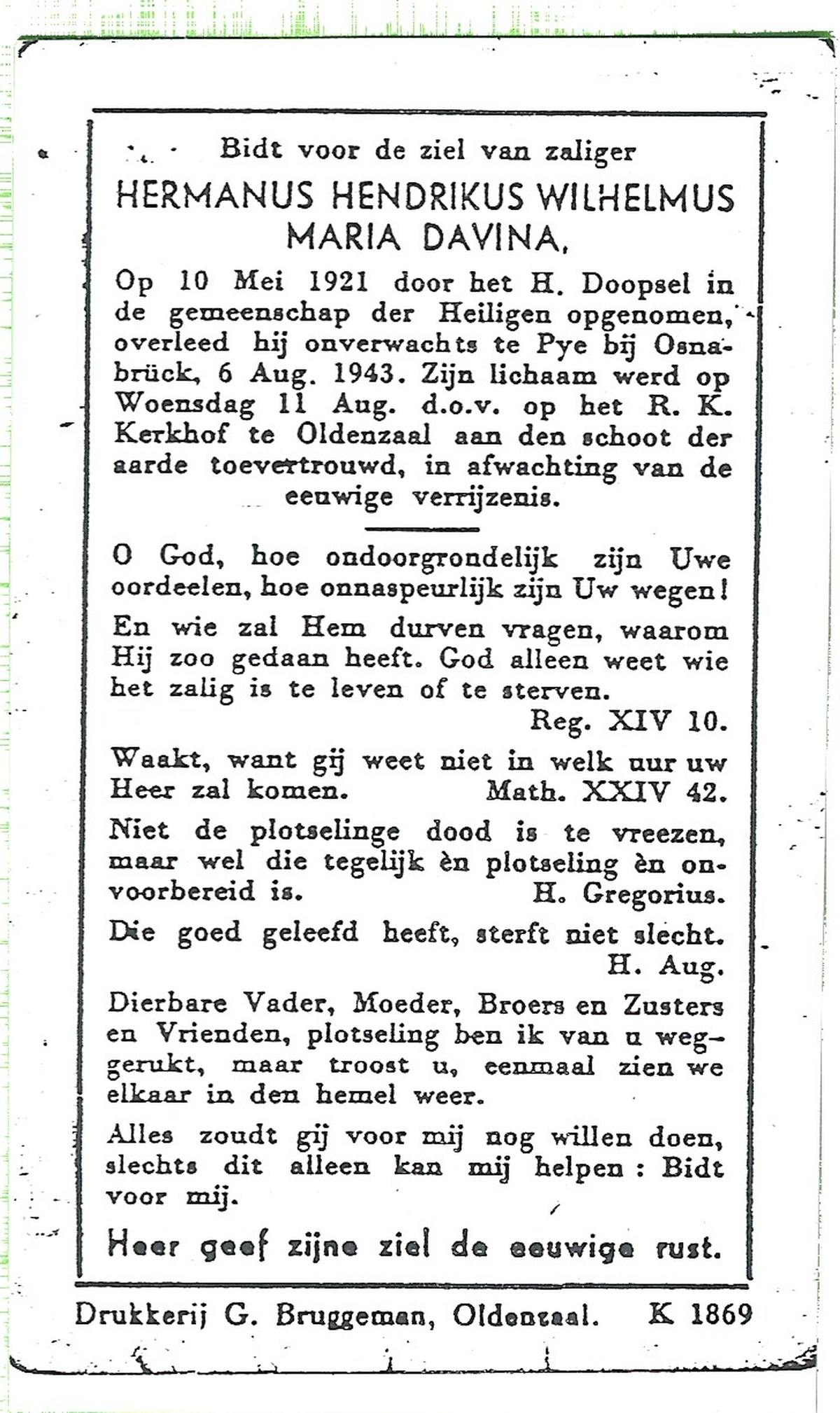 DAMGRAVE, Gerardus Johannes, geboren op 31-08-1889 te Losser, overleden op 8-1-1965 te Oldenzaal op 75-jarige leeftijd, begraven te Oldenzaal.