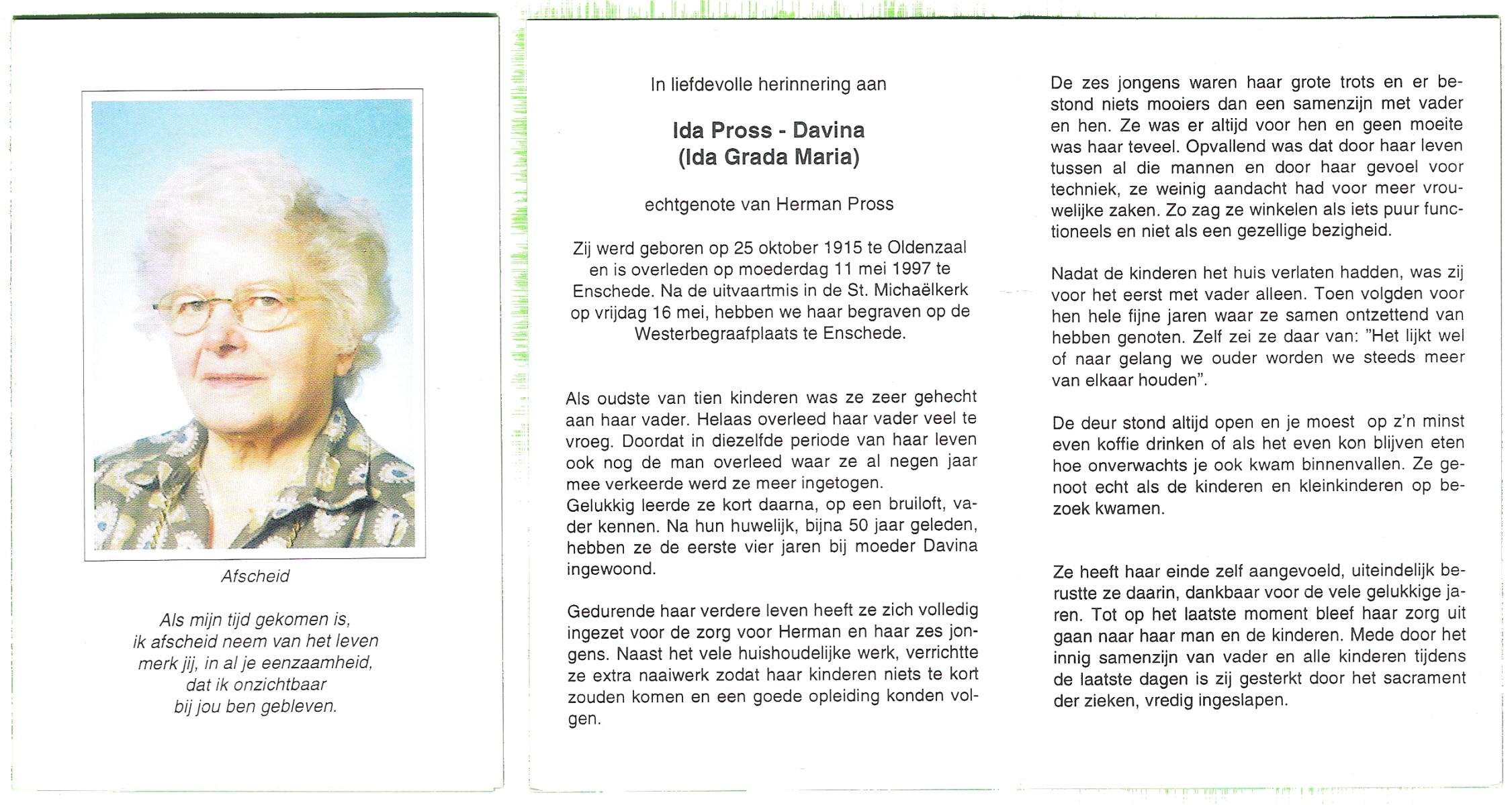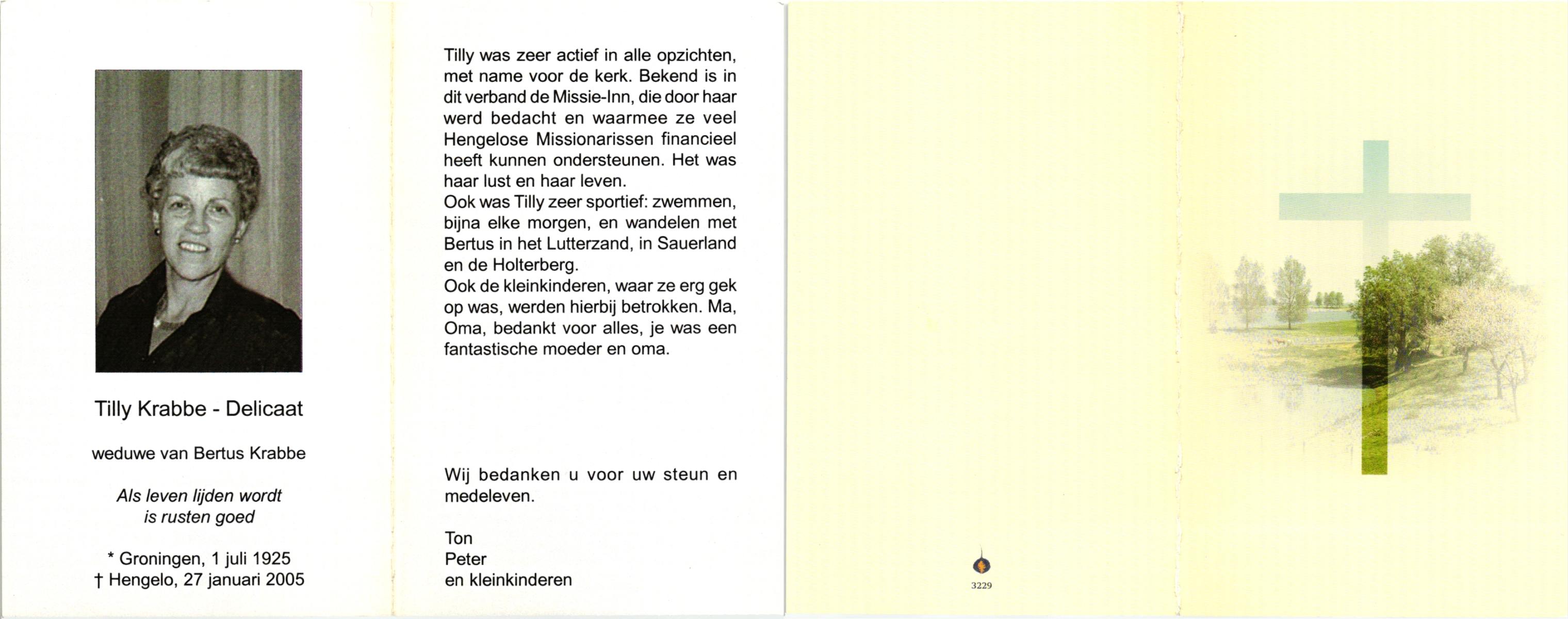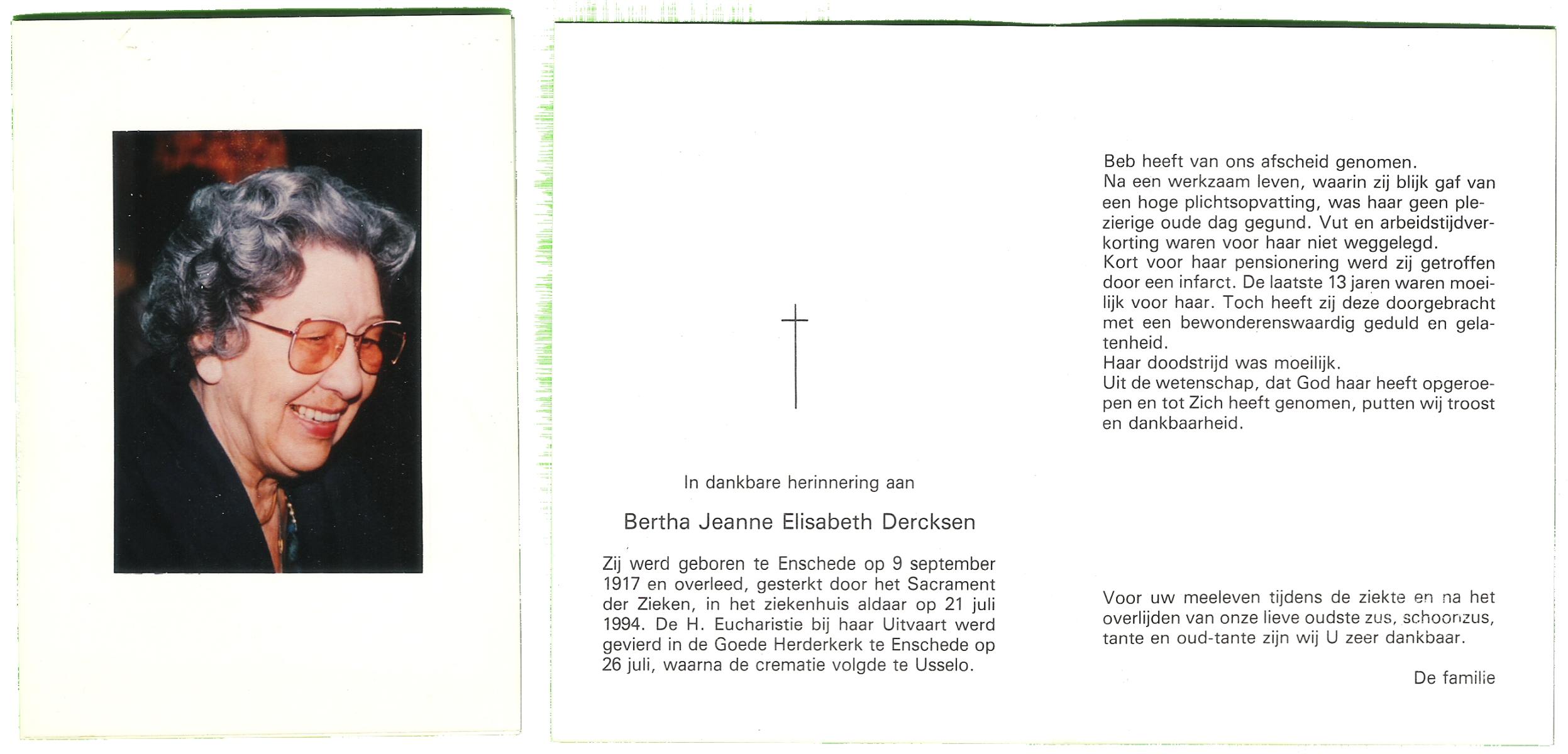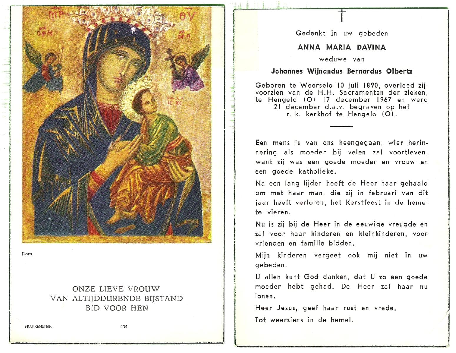 DAMHUIS, Alberta Maria Geertruida, geboren op 16-1-1910 te Nordhorn (Dld.), overleden op 20-10-1990 op 80-jarige leeftijd, gecremeerd op 24-10-1990 te Usselo.