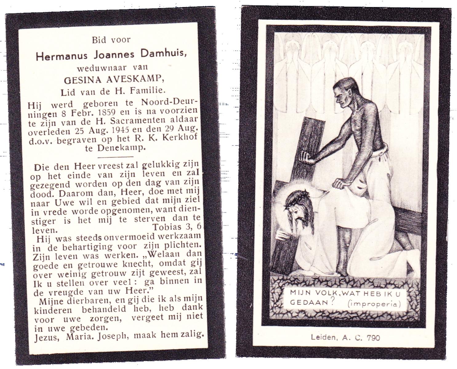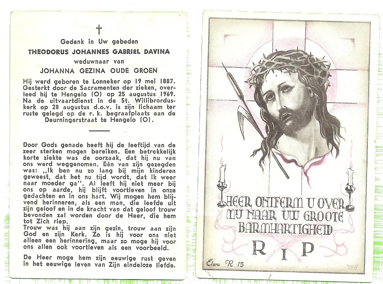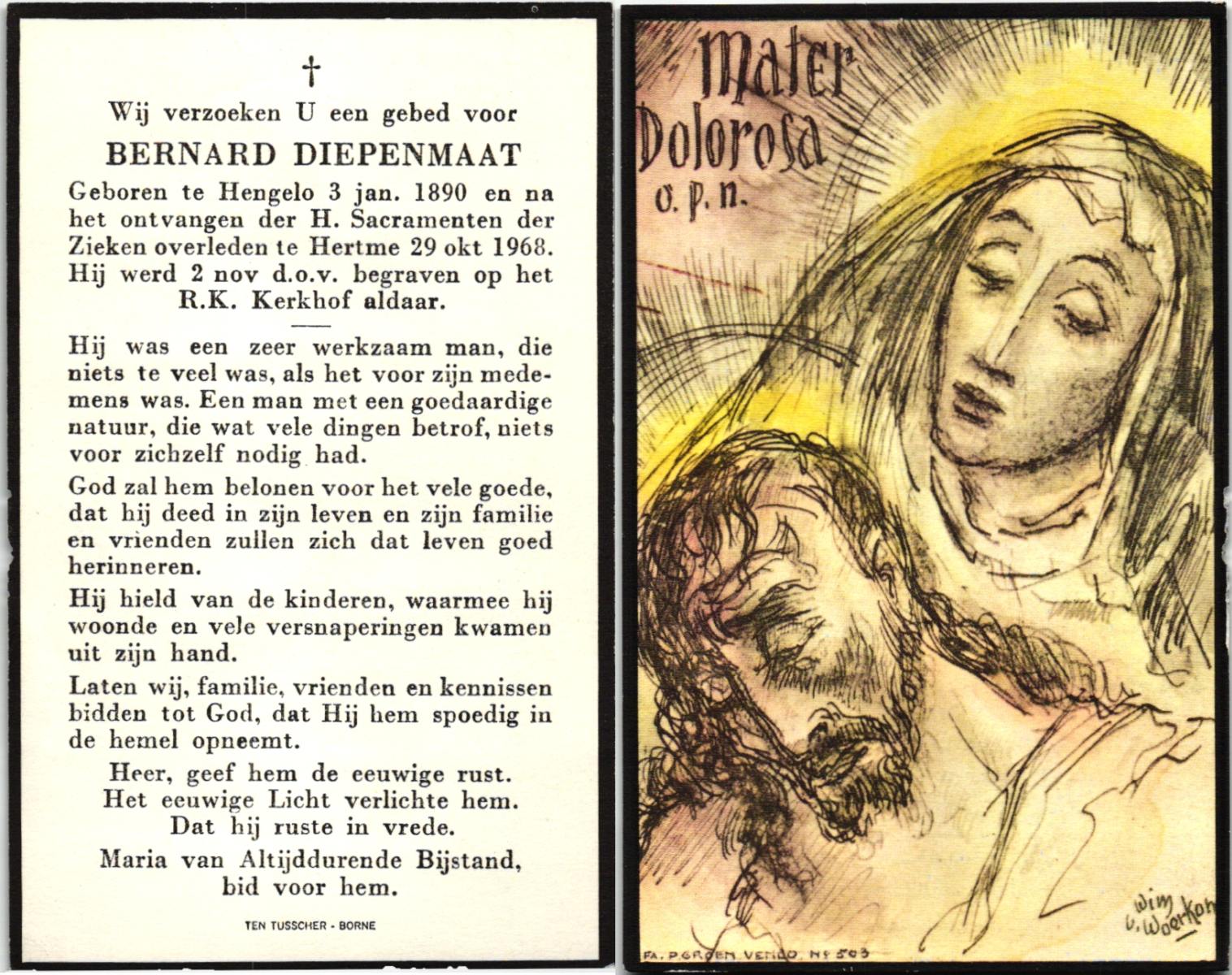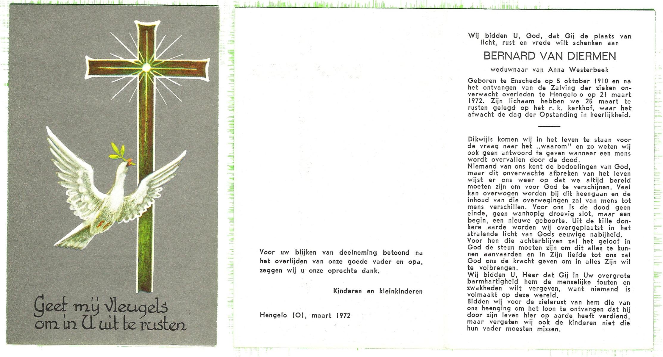 DAMHUIS, Bernardus Hendrikus, geboren op 19-8-1908 te Weerselo, overleden op 10-4-1969 te Losser op 60-jarige leeftijd, begraven op 14-4-1969 te Losser.