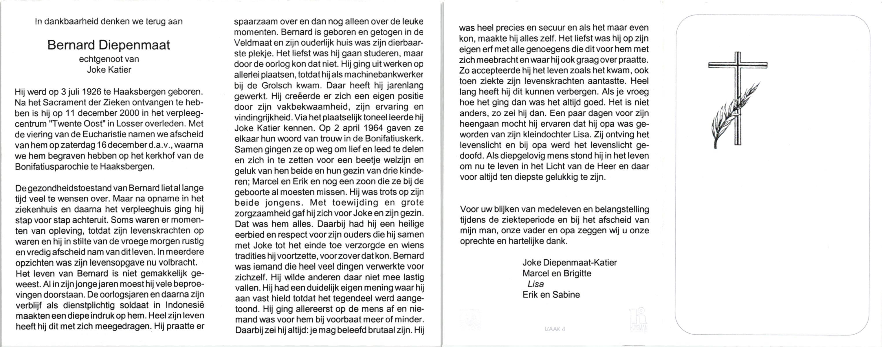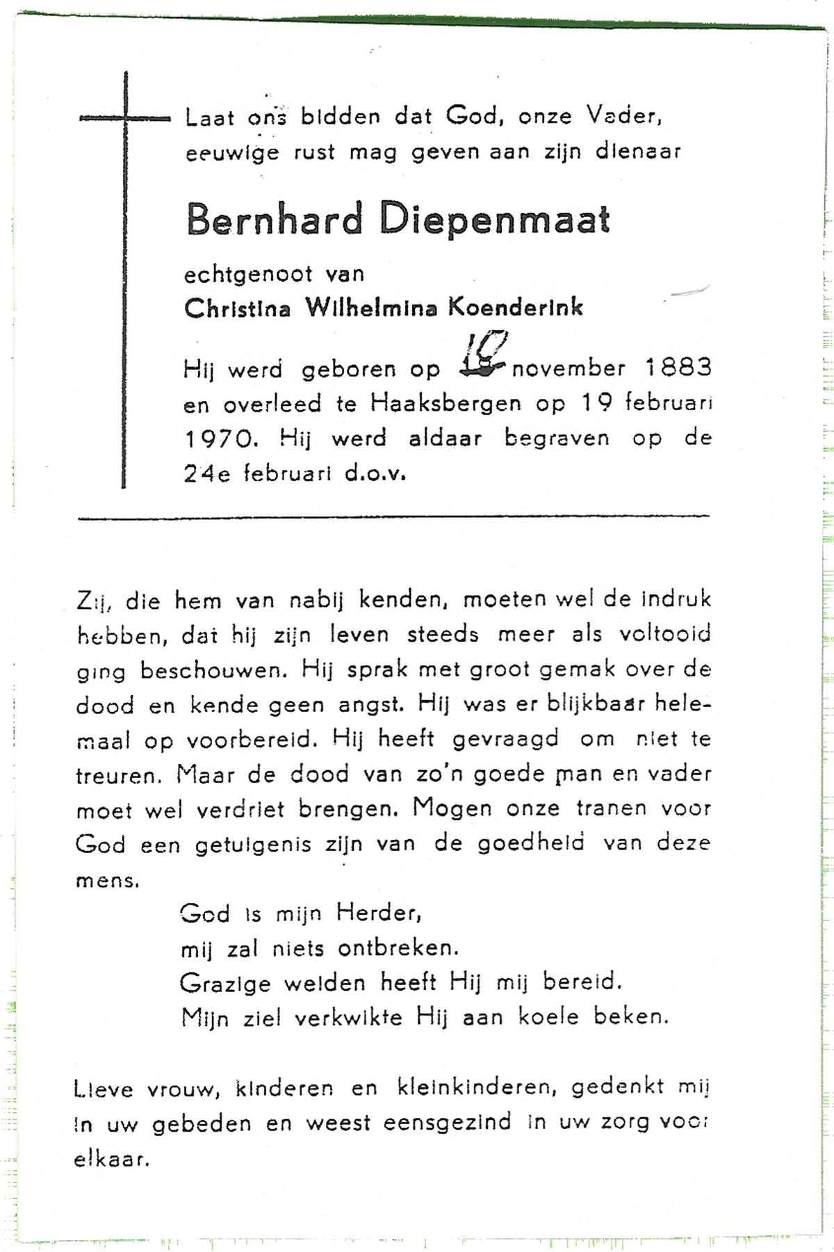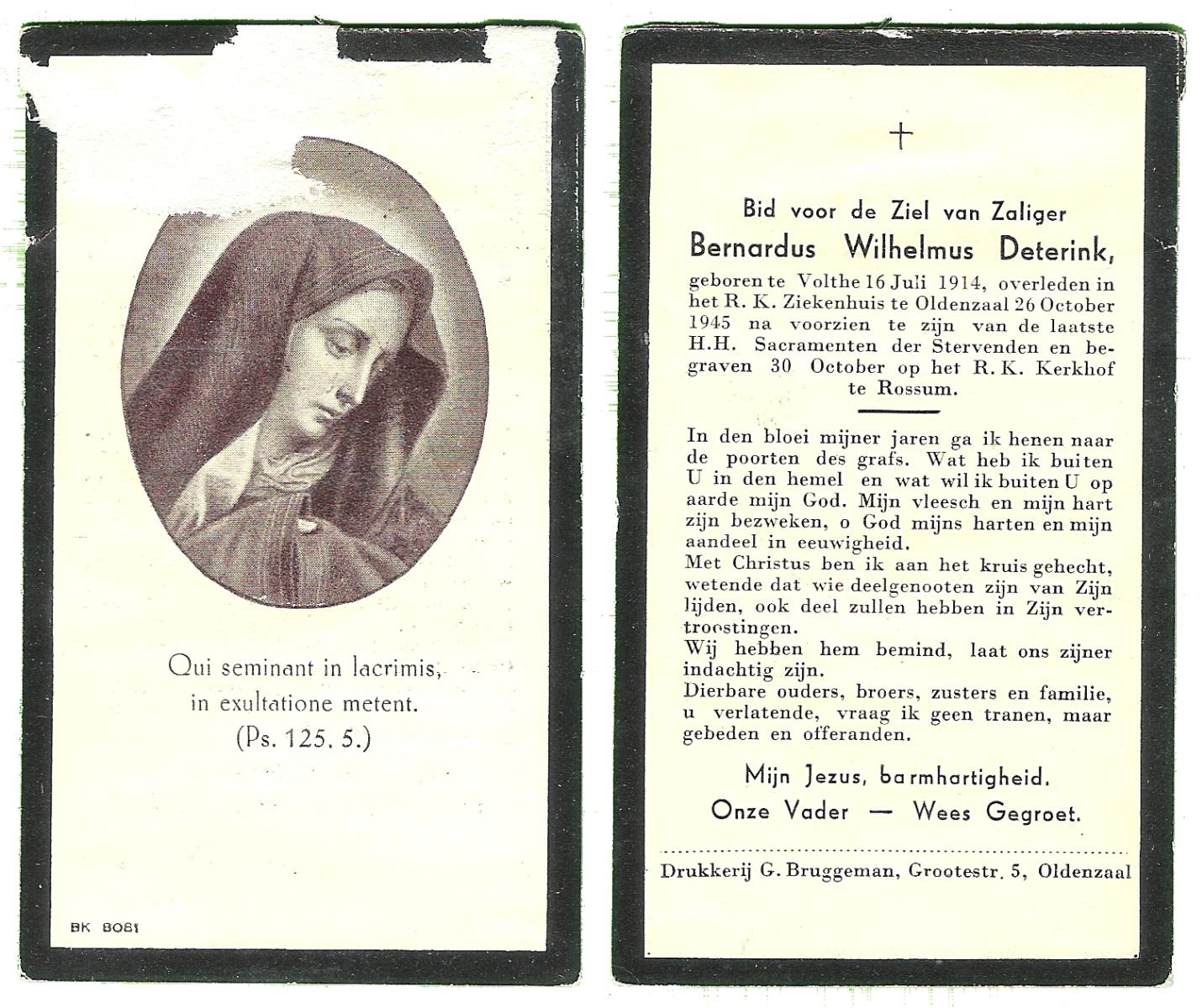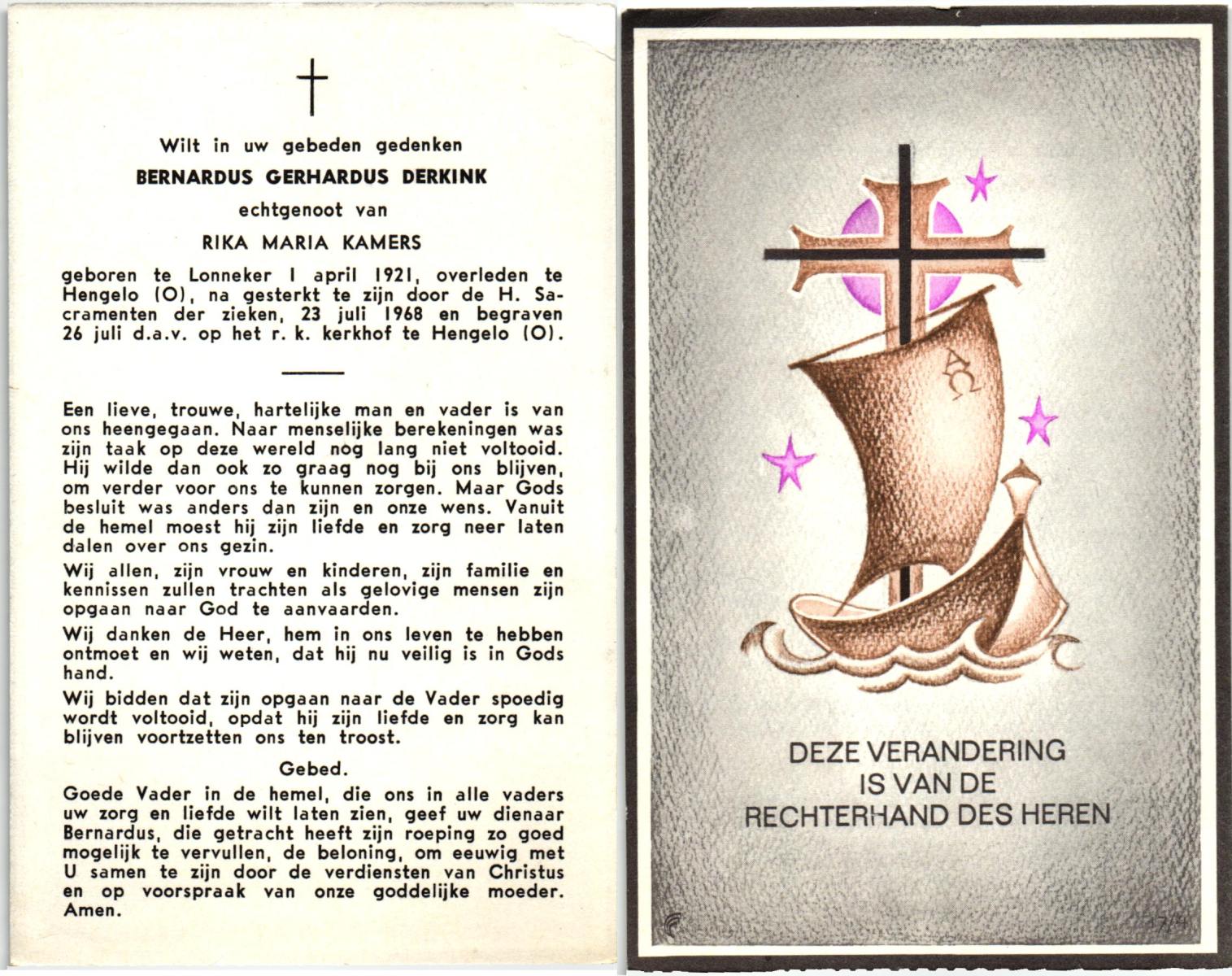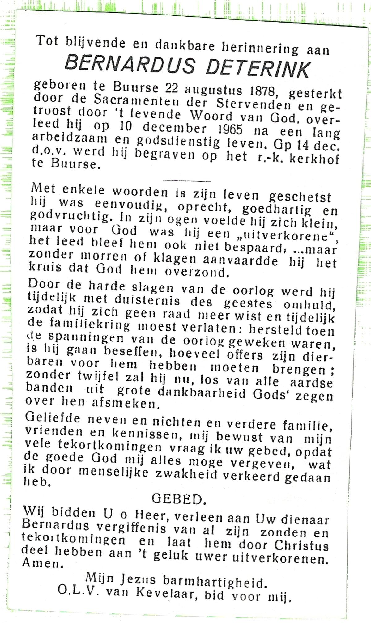 DAMHUIS, Bernardus Hendrikus, geboren op 19-8-1908 te Weerselo, overleden op 10-4-1969 te Losser op 60-jarige leeftijd, begraven op 14-4-1969 te Losser.