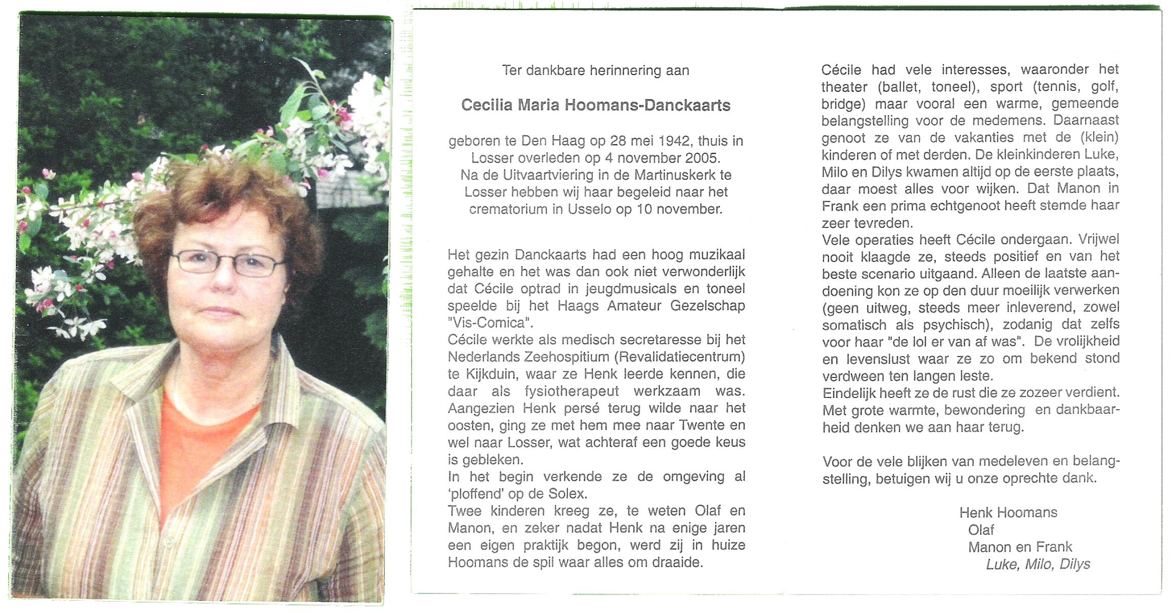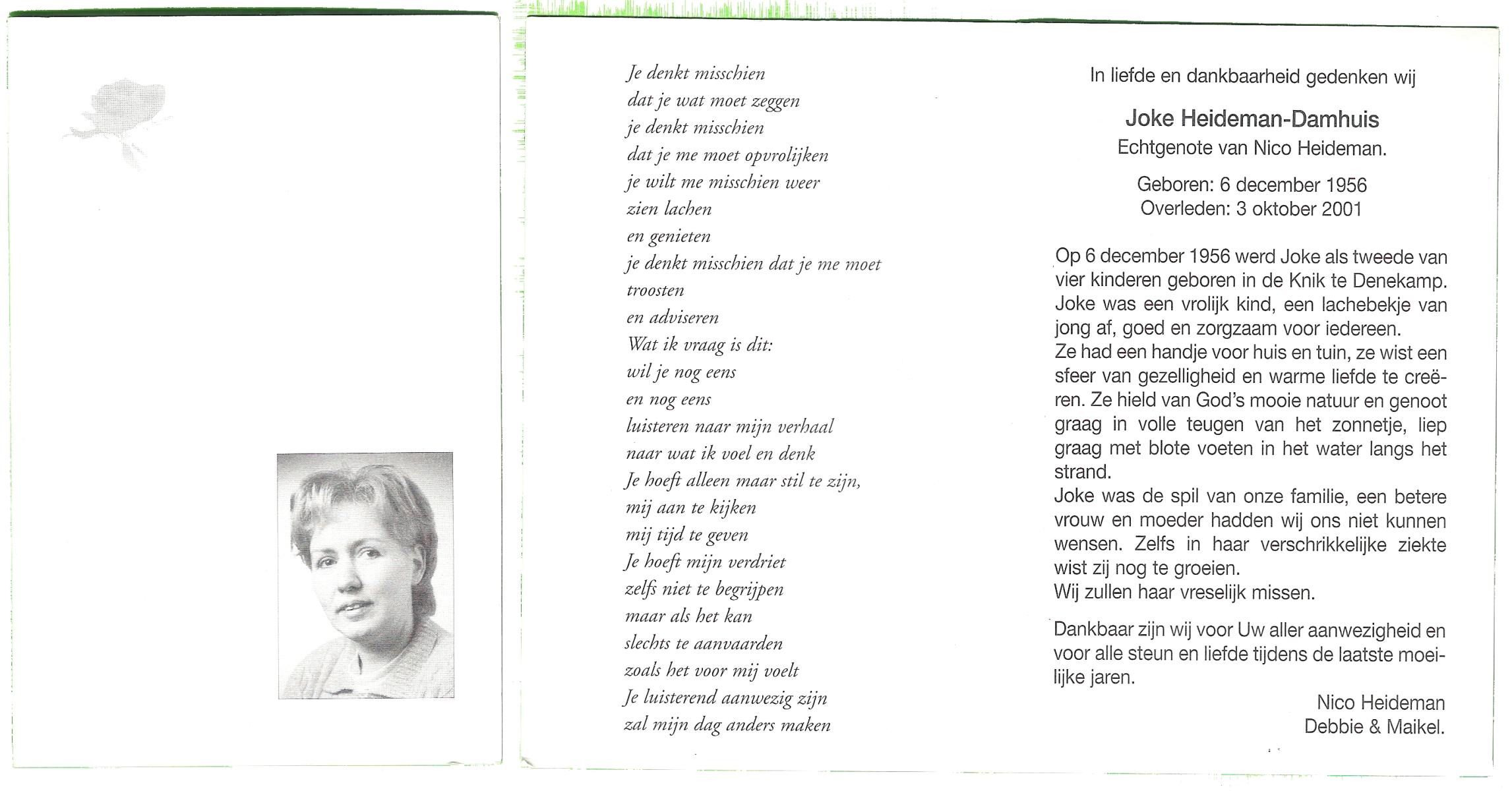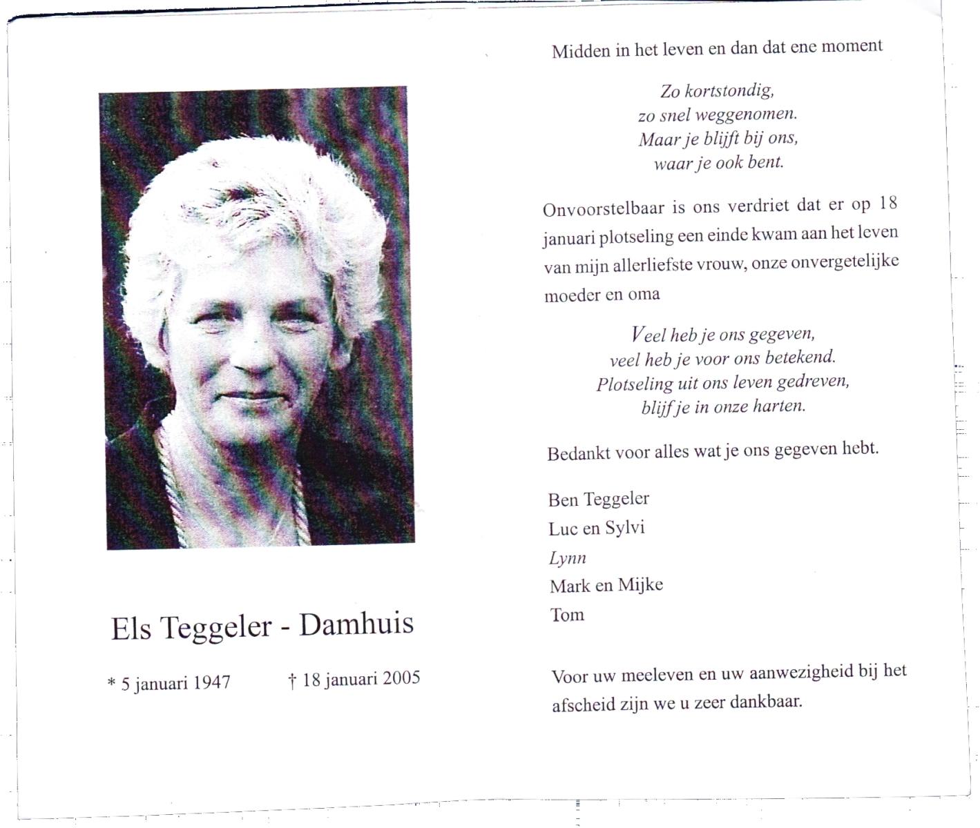 DAMHUIS, Els, geboren op 5-1-1947, overleden op 18-1-2005 op 58-jarige leeftijd.