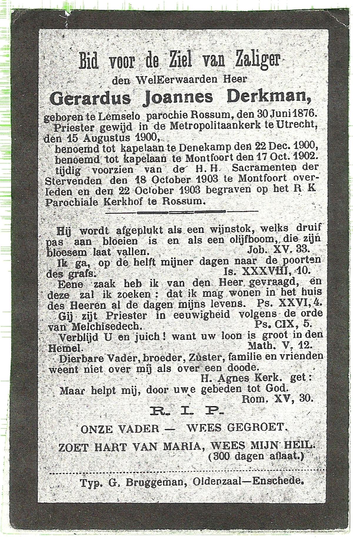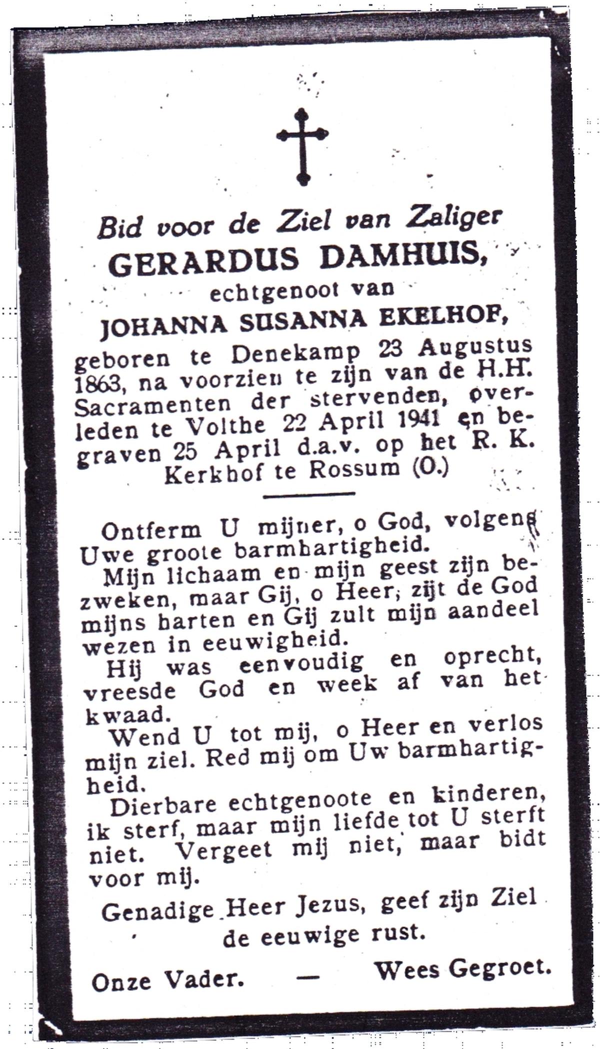 DAMHUIS, Gerardus, geboren op 23-08-1863 te Denekamp, overleden op 22-4-1941 te Volthe op 77-jarige leeftijd, begraven op 25-4-1941 te Rossum (O).