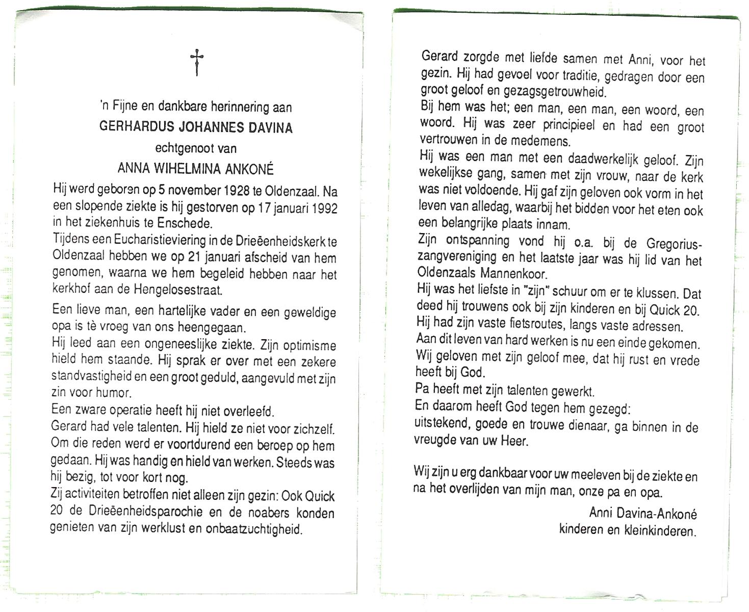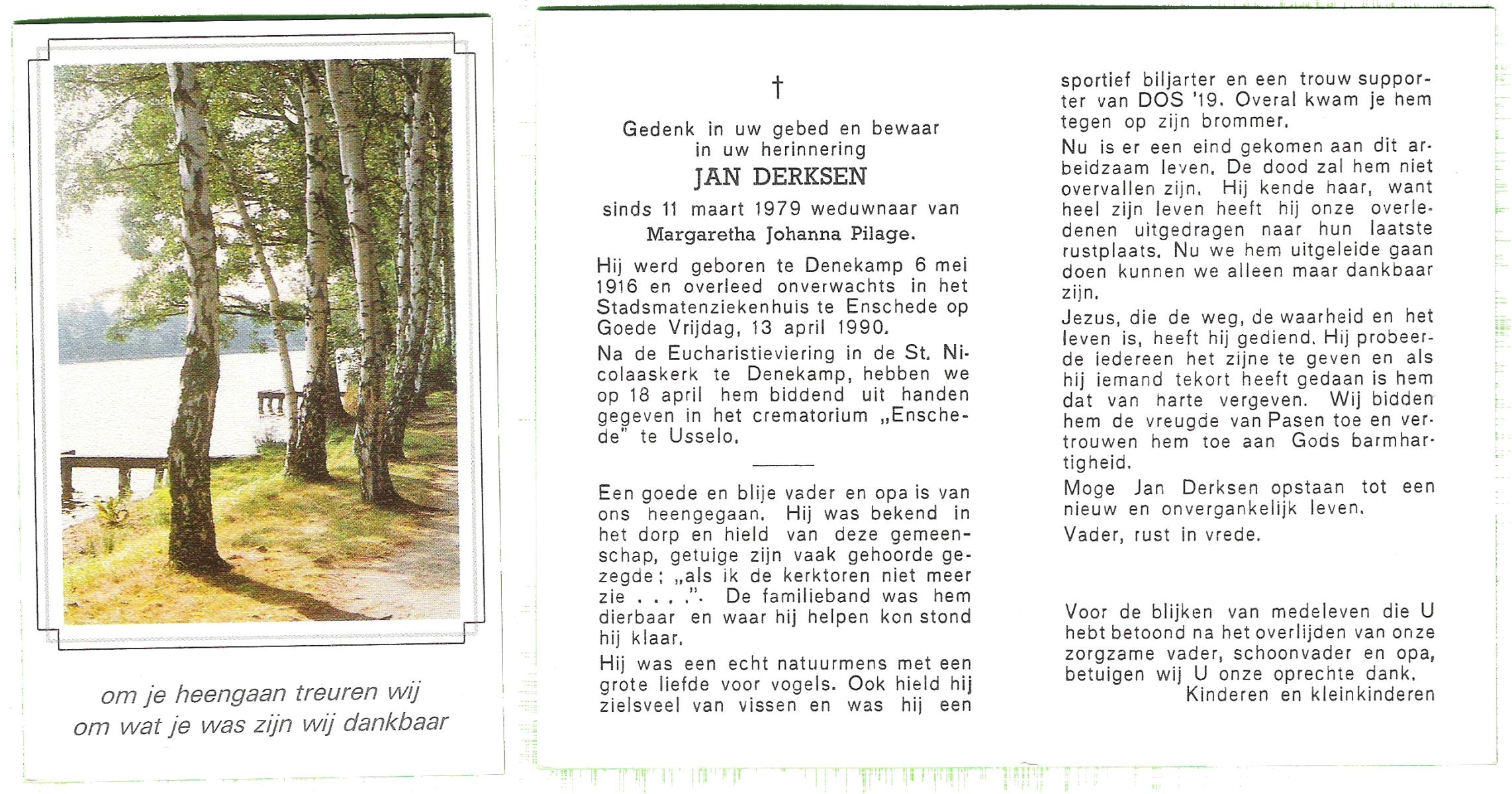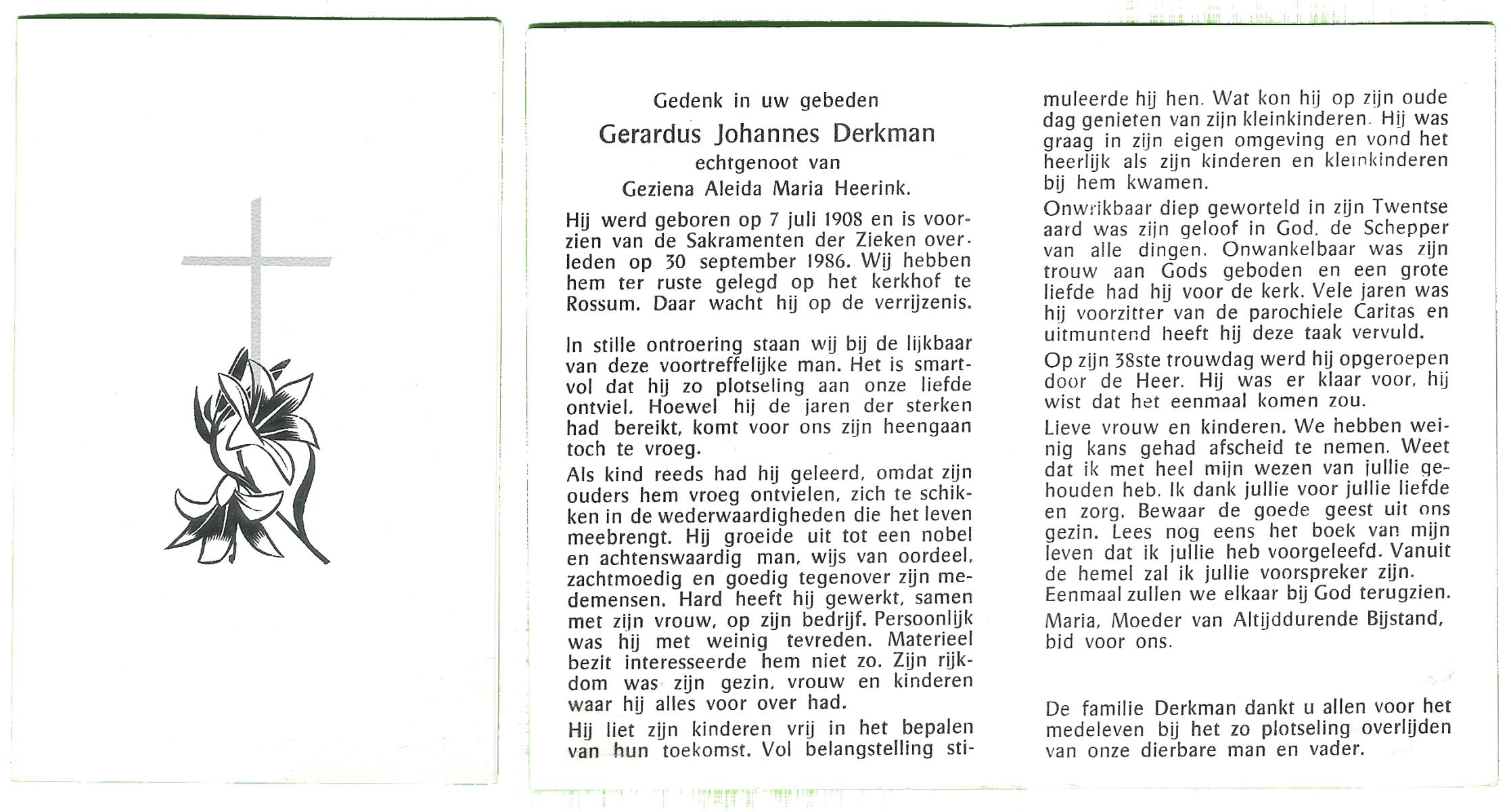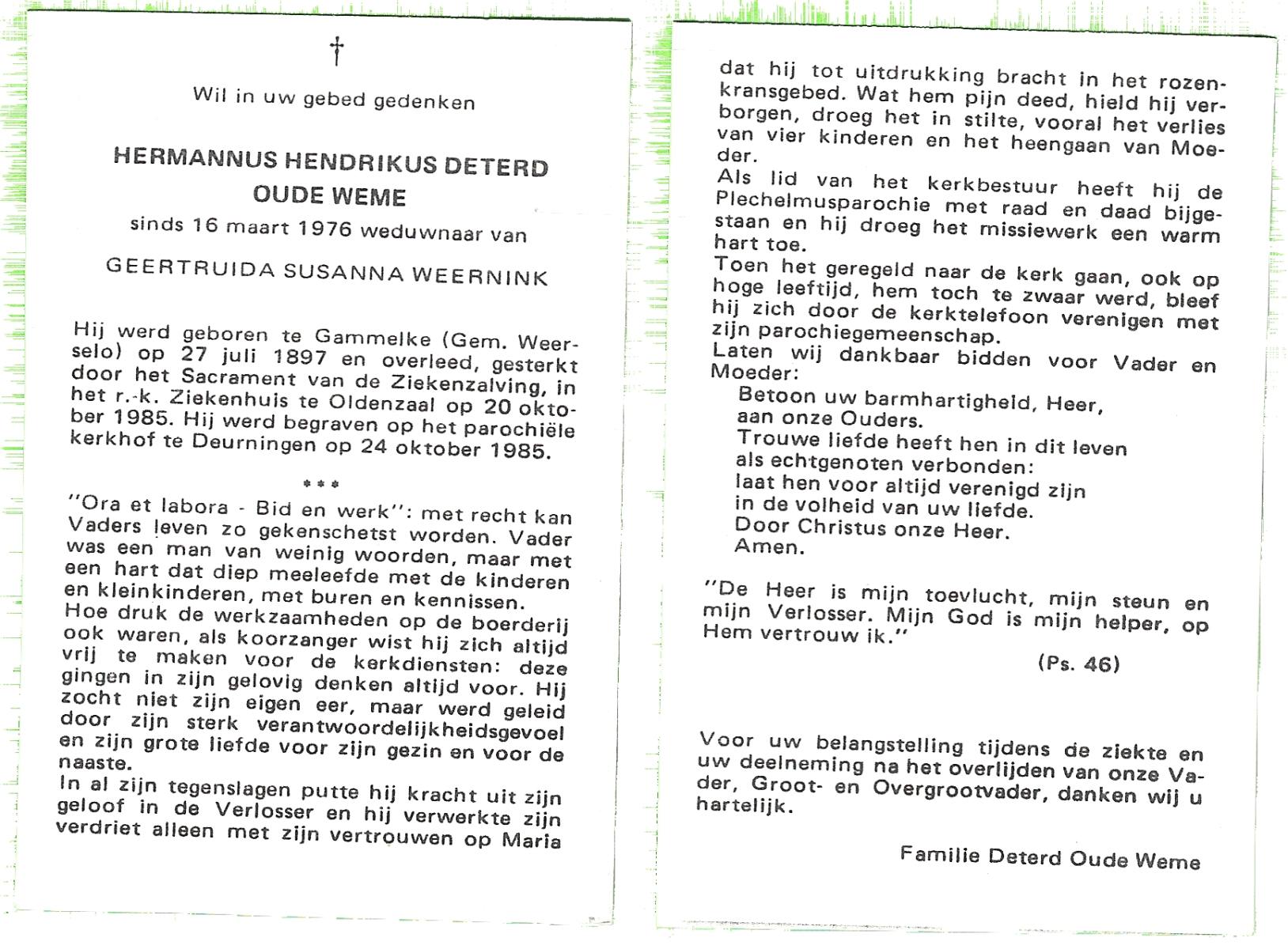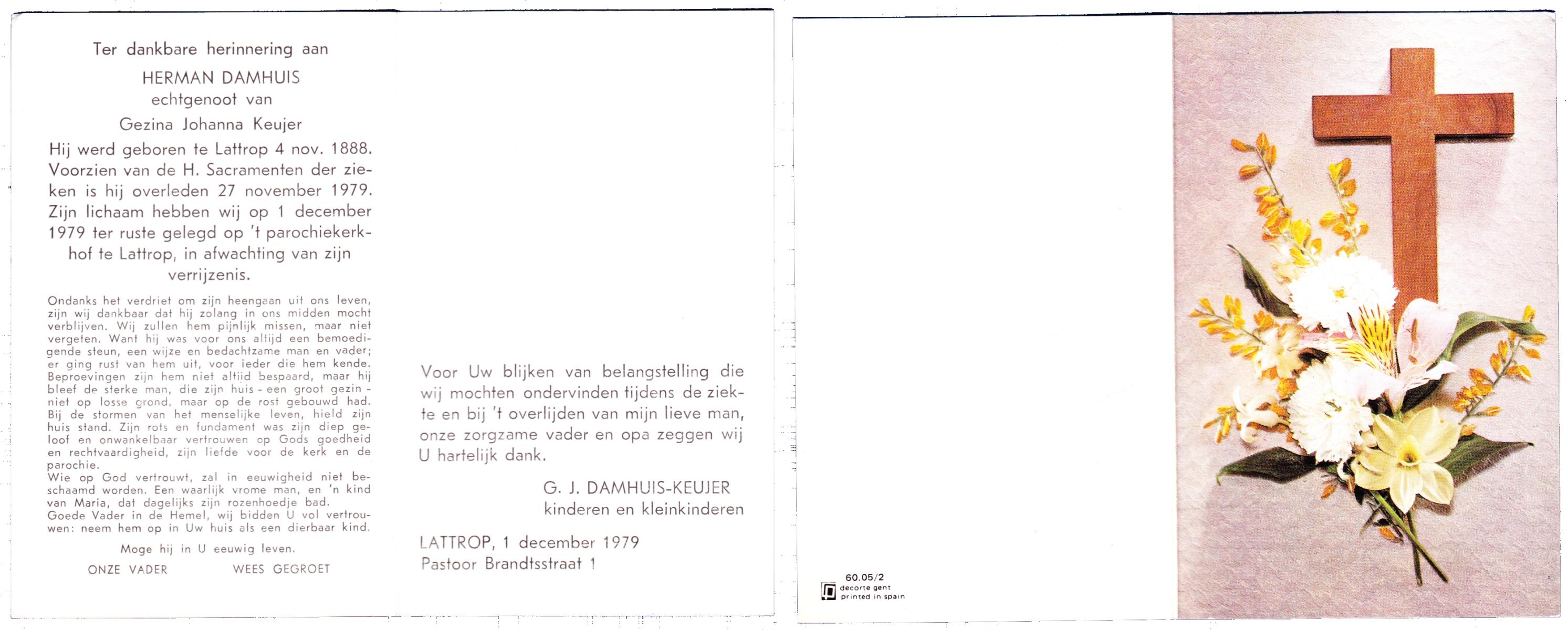 DAMHUIS, Gerardus Johannes, geboren op 13-04-1895 te Denekamp, overleden op 30-10-1985 te Denekamp op 90-jarige leeftijd, begraven op 4-11-1985 te Denekamp.