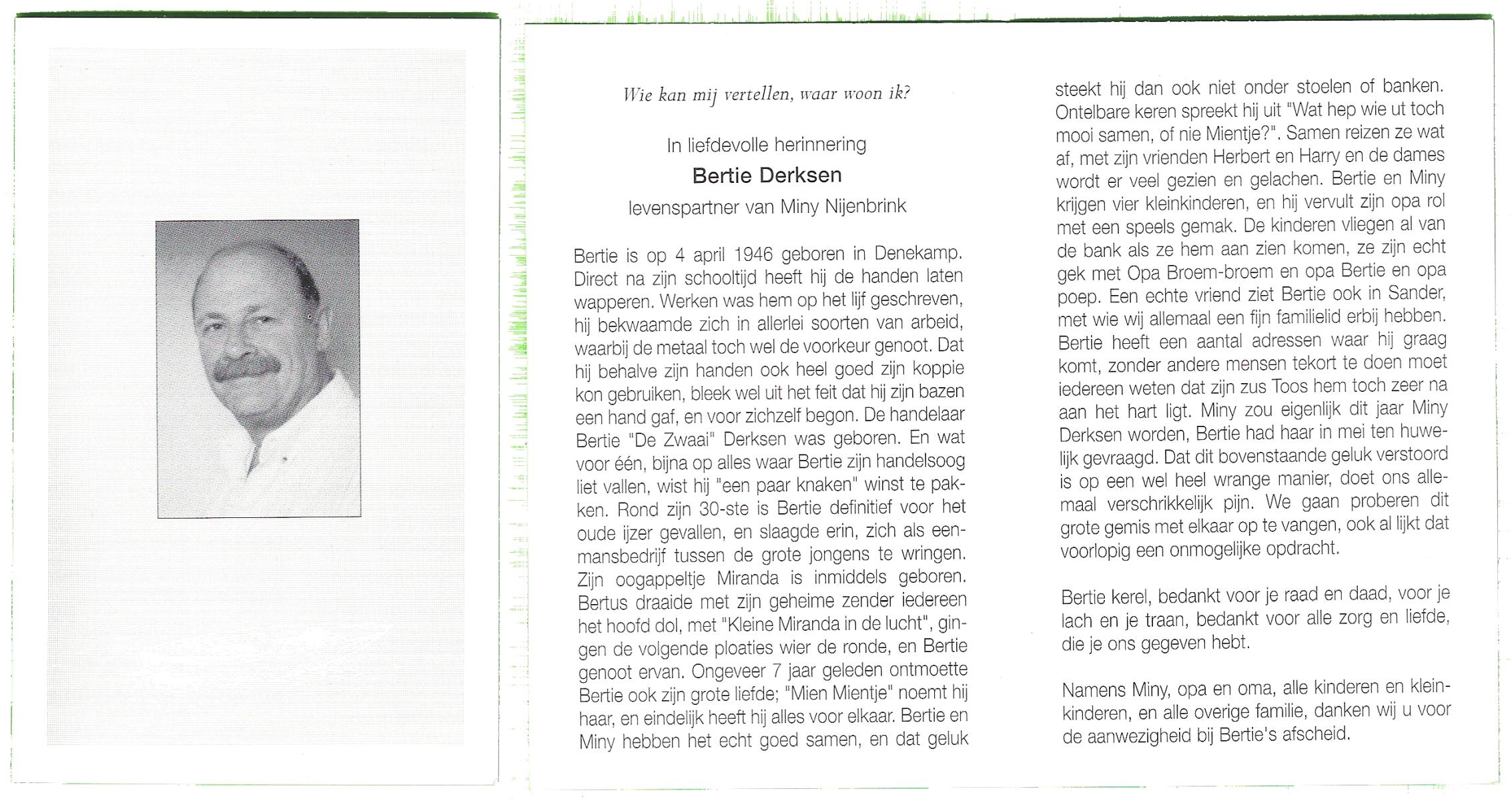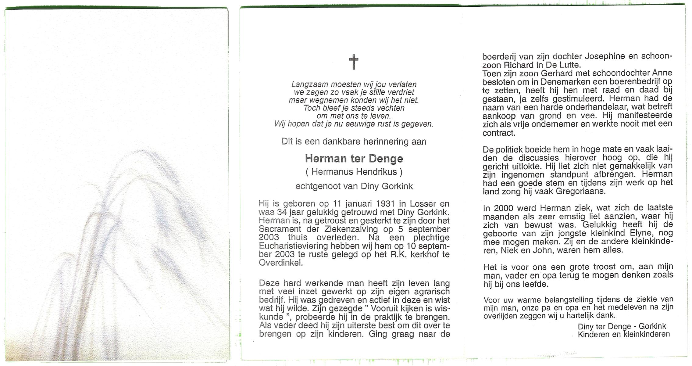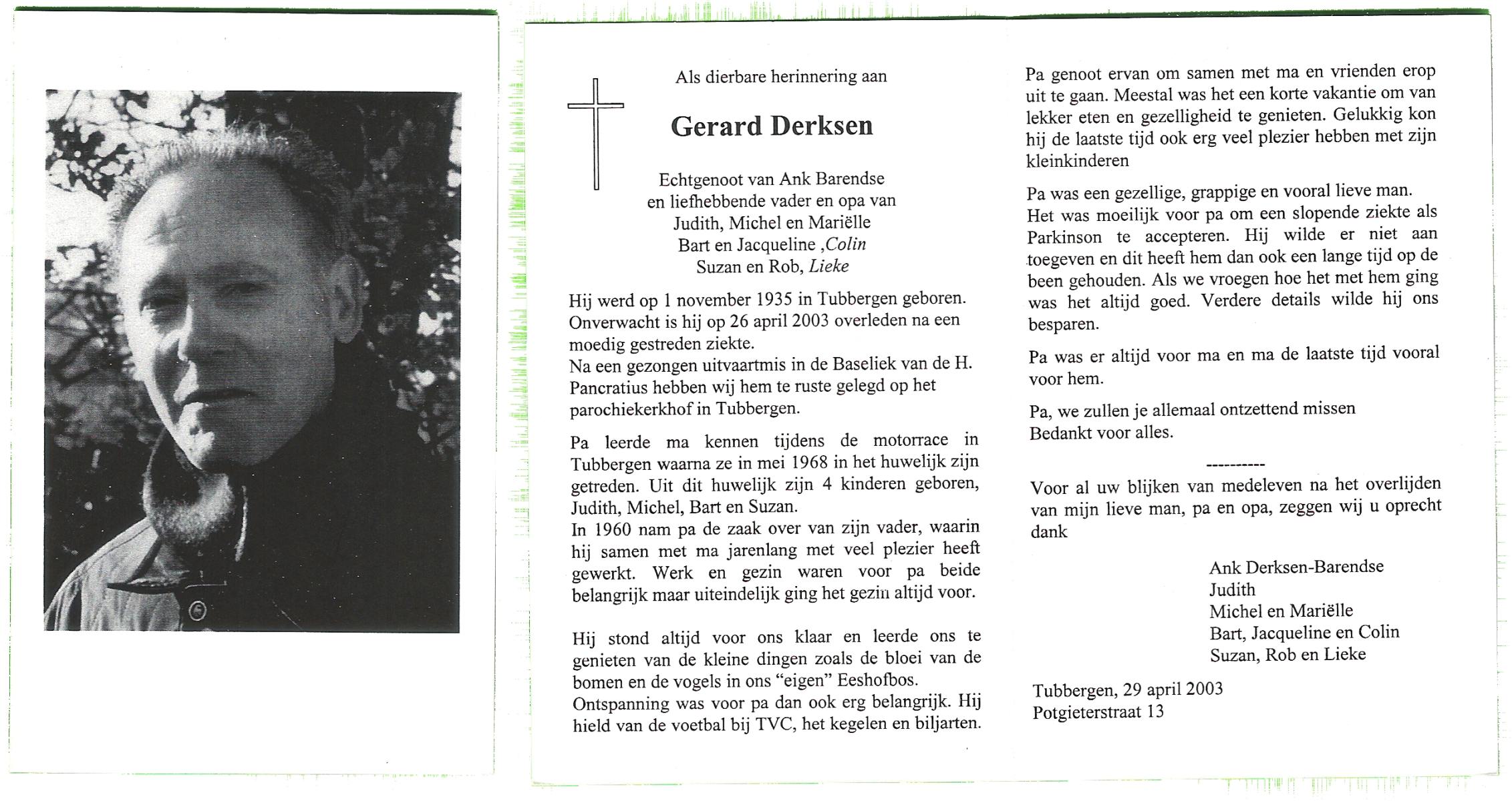 DAMHUIS, Gerrit, geboren op 5-10-1935 te Volthe, overleden op 5-5-2004 op 68-jarige leeftijd, gecremeerd op 11-5-2004 te Usselo.