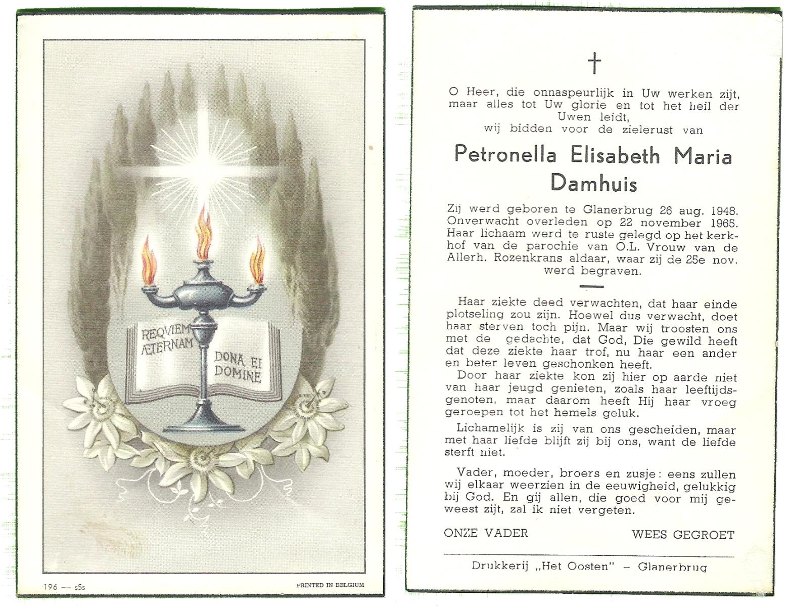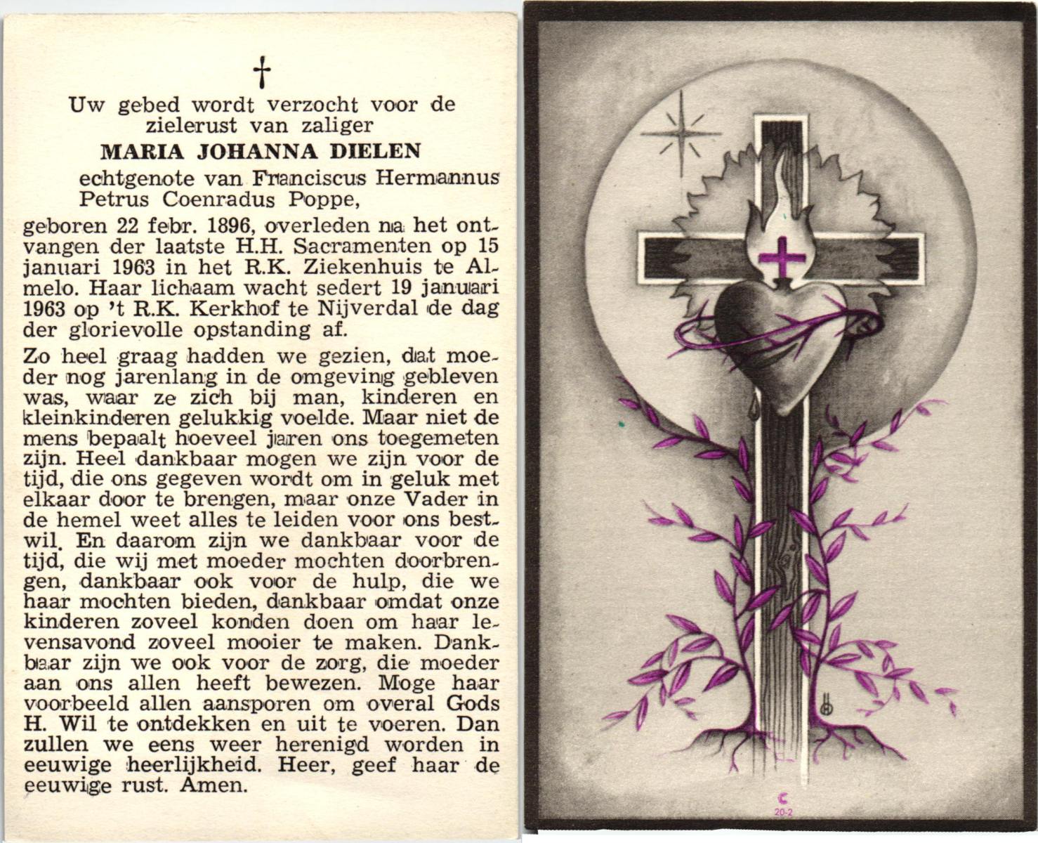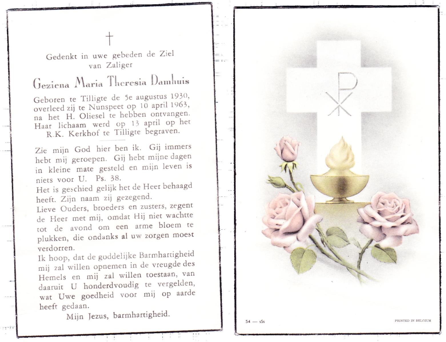 DAMHUIS, Geziena Maria Theresia, geboren op 5-8-1930 te Tilligte, overleden op 10-4-1963 te Nunspeet op 32-jarige leeftijd, begraven op 13-4-1963 te Tilligte.