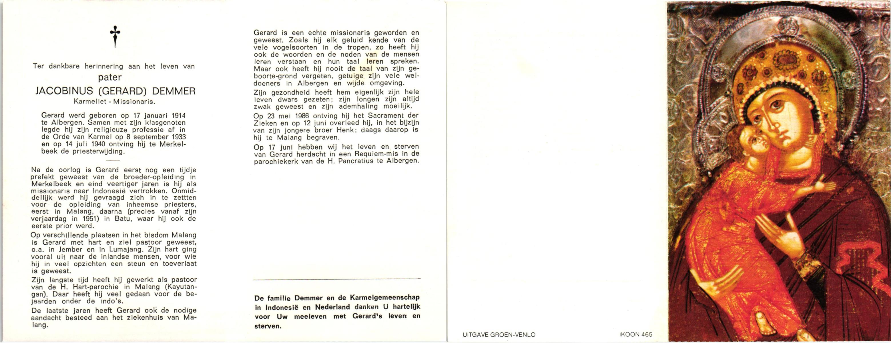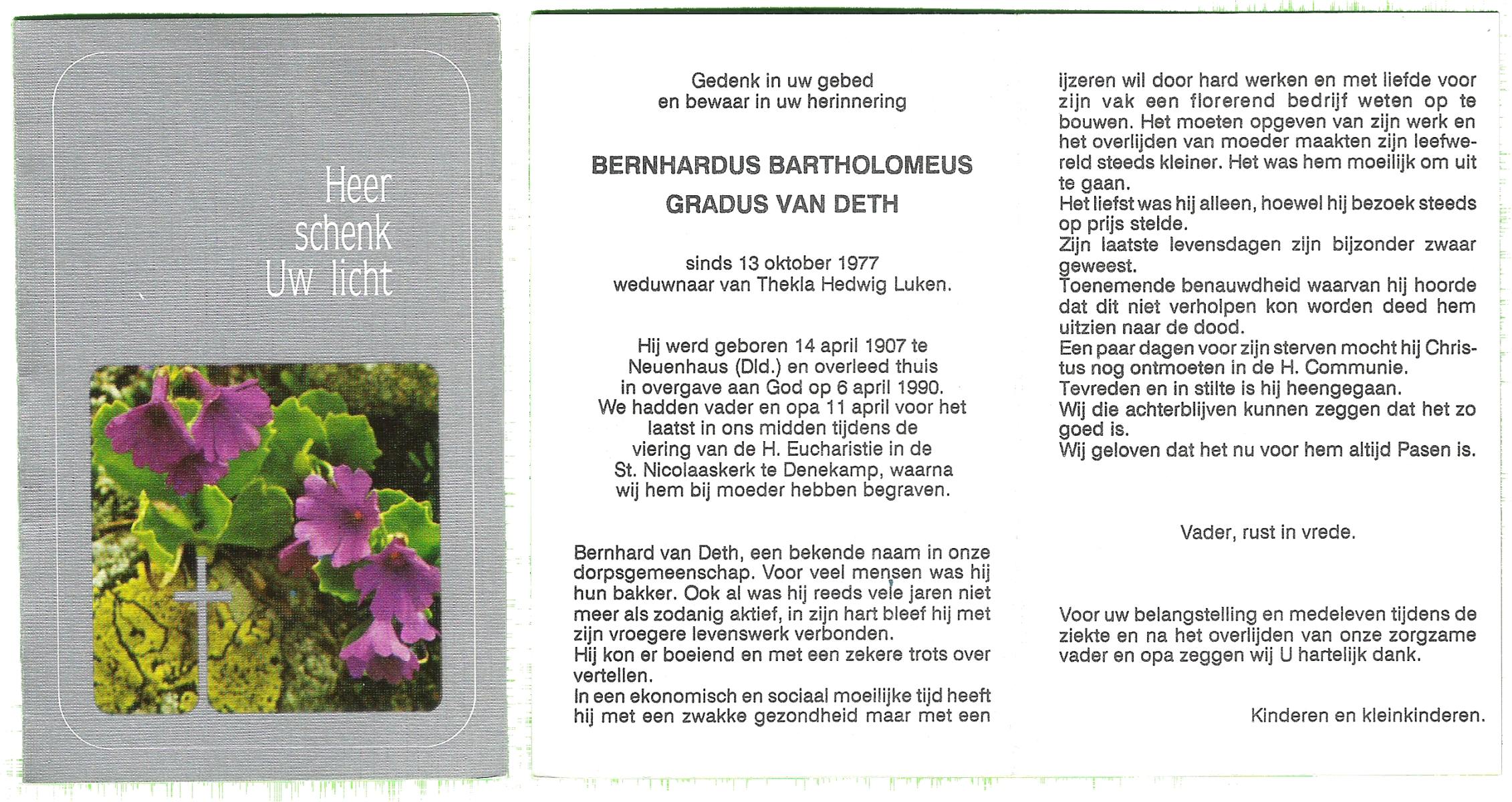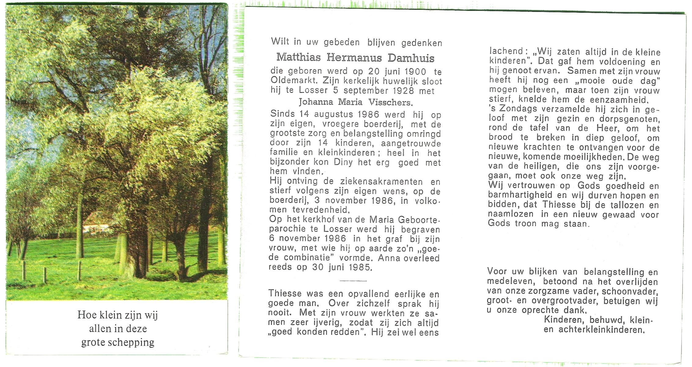 DAMHUIS, Gradus Johannes, geboren op 19-12-1907 te Tilligte, overleden op 7-4-1988 te Tilligte op 80-jarige leeftijd, begraven op 11-4-1988 te Tilligte.