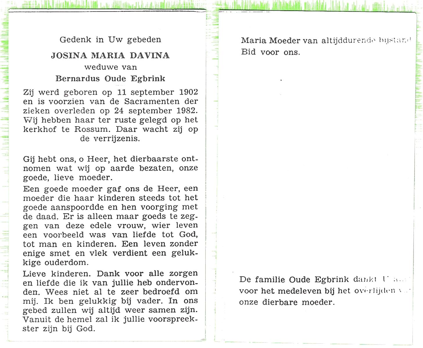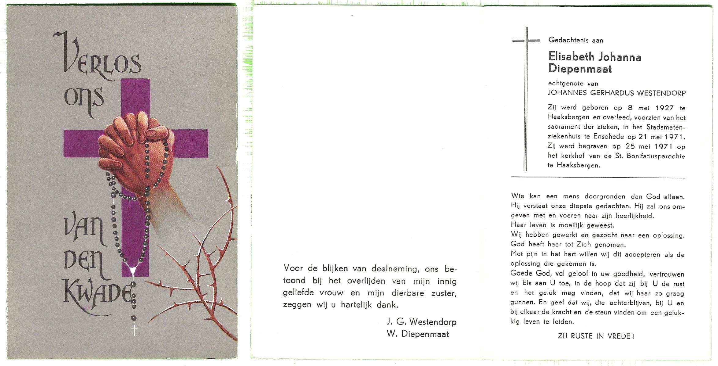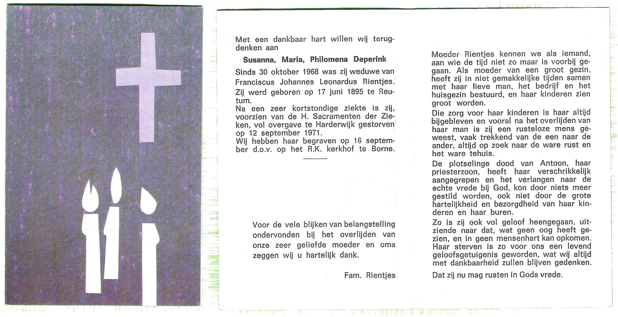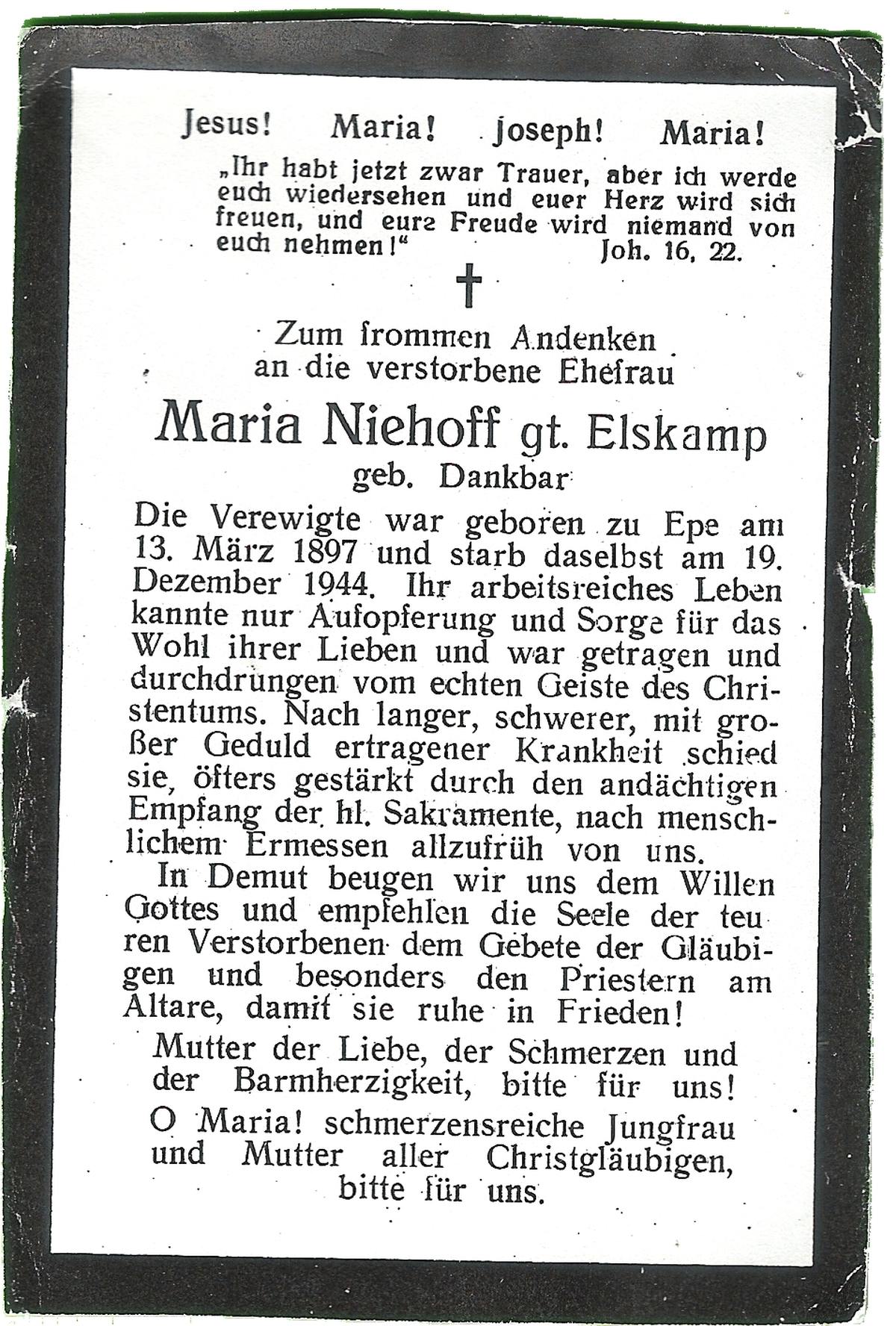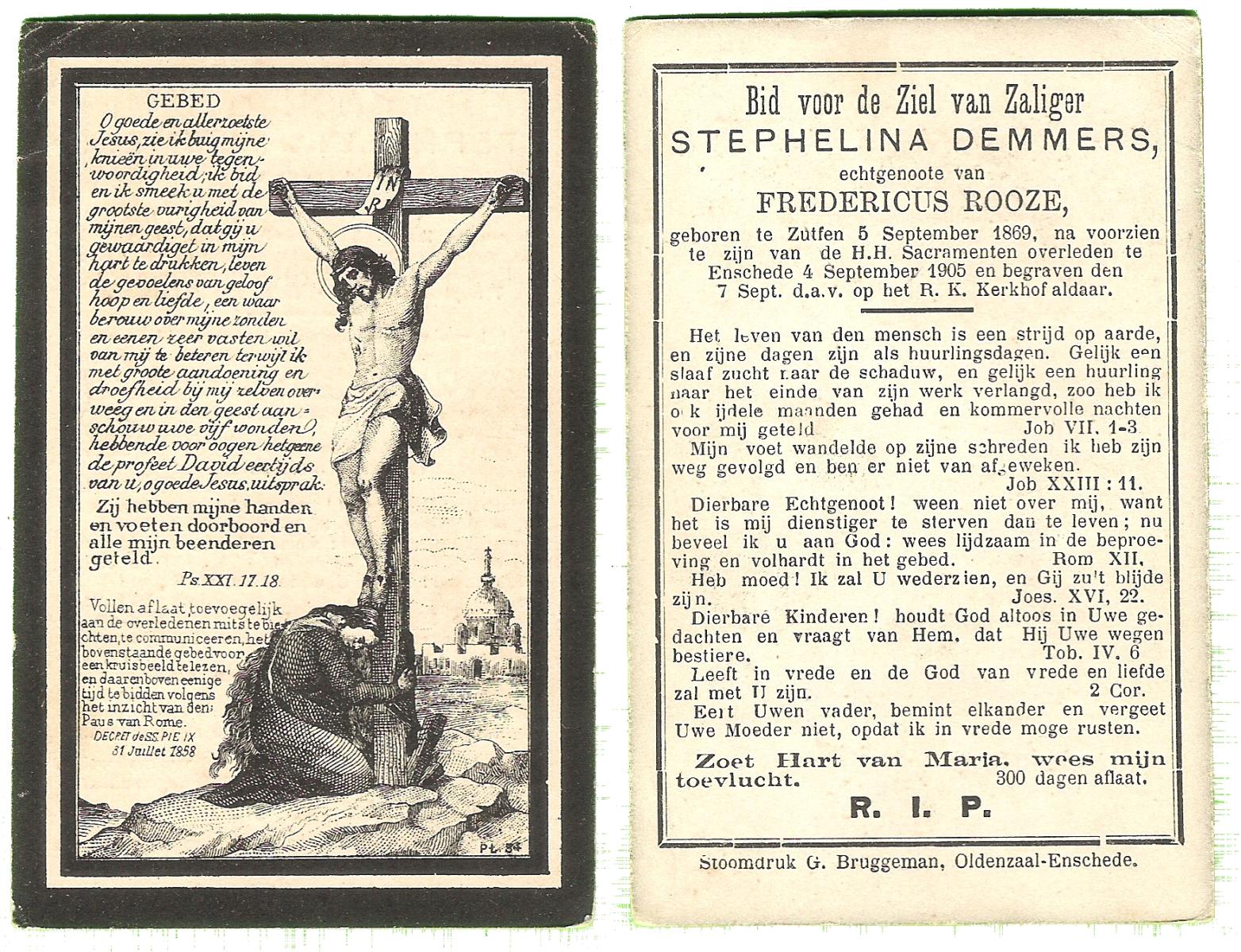 DISSEL, Maria Henrica, geboren op 22-10-1889 te Haaksbergen, overleden op 20-5-1972 te Denekamp op 82-jarige leeftijd, begraven op 24-5-1972 te Denekamp.