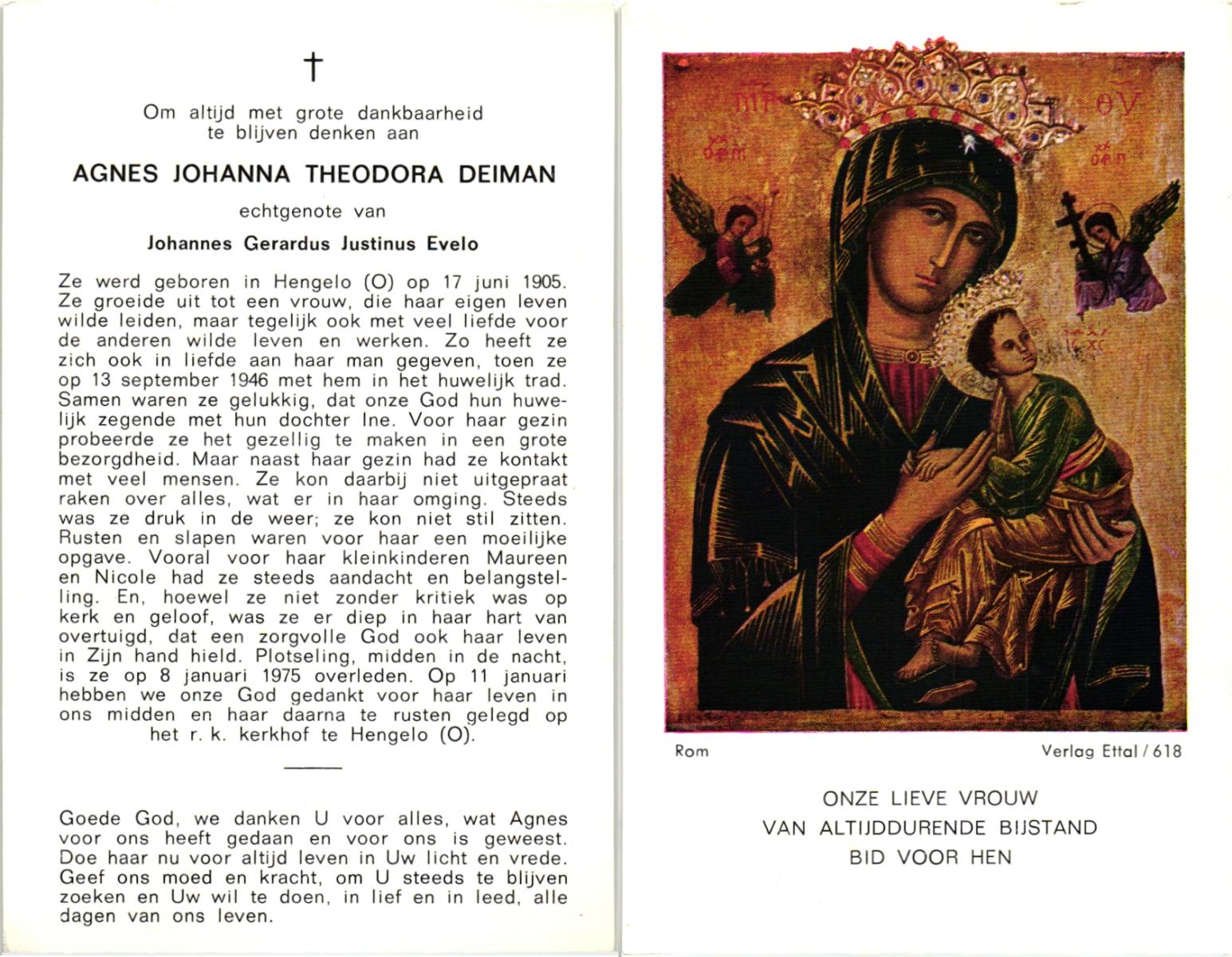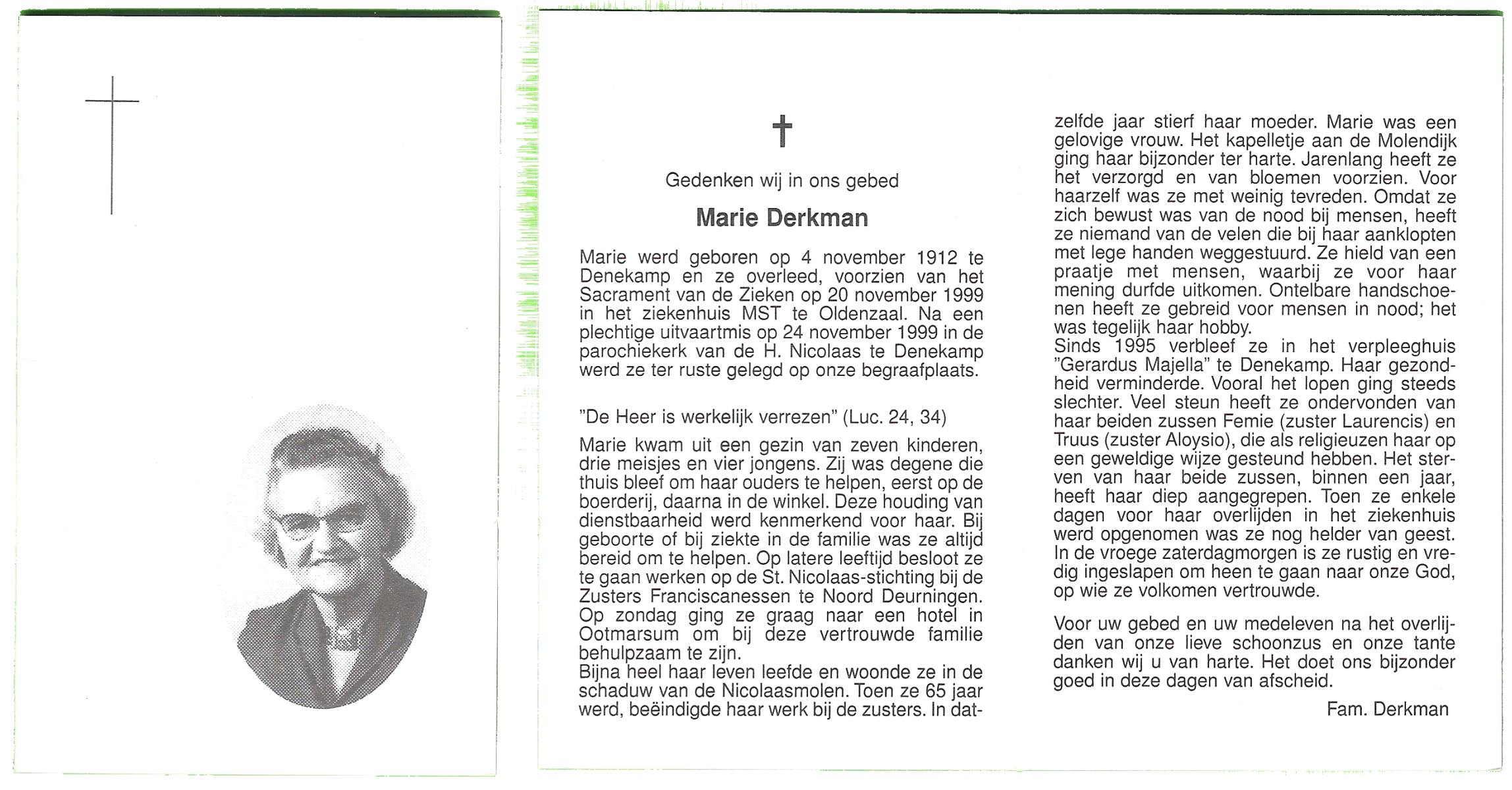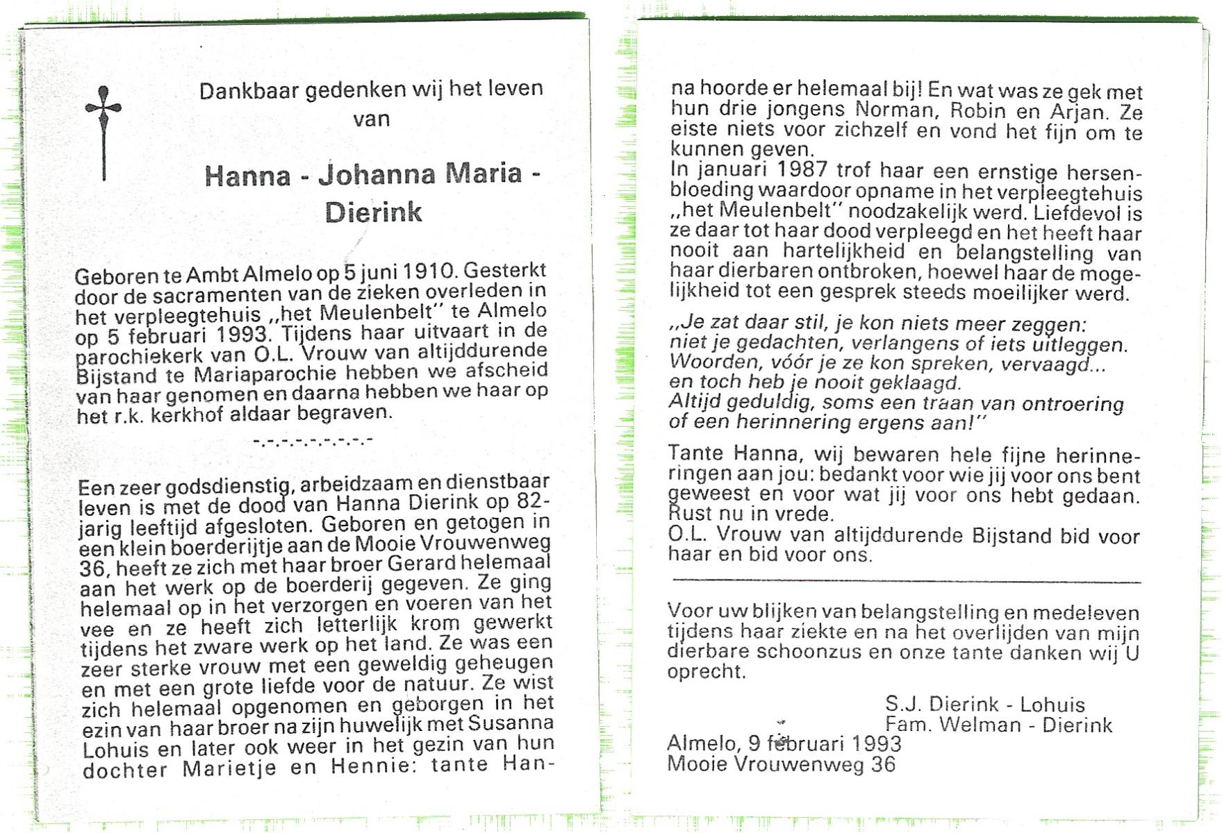 DIJKMAN, Anna Maria, geboren op 12-2-1917 te Raalte, overleden op 19-11-2008 te Hellendoorn, Nijverdal, Hoge Es op 91-jarige leeftijd, begraven op 24-11-2008 te Hellendoorn, Nijverdal.