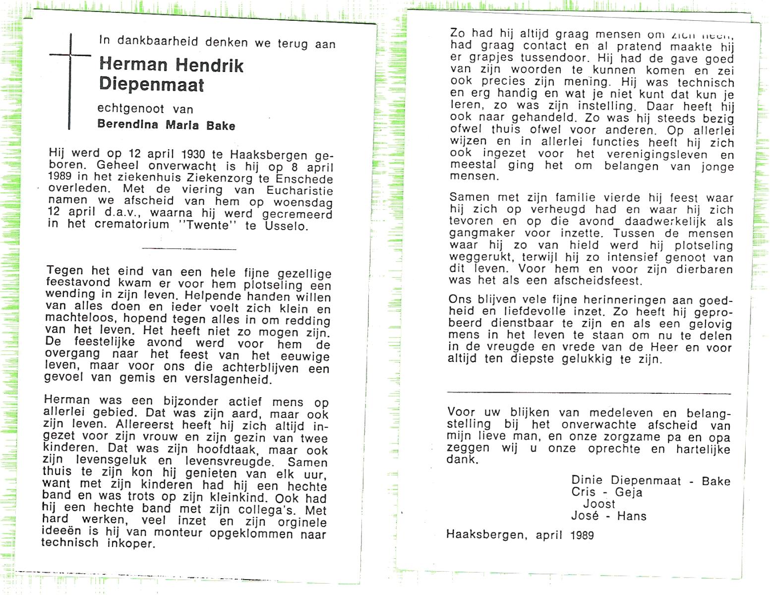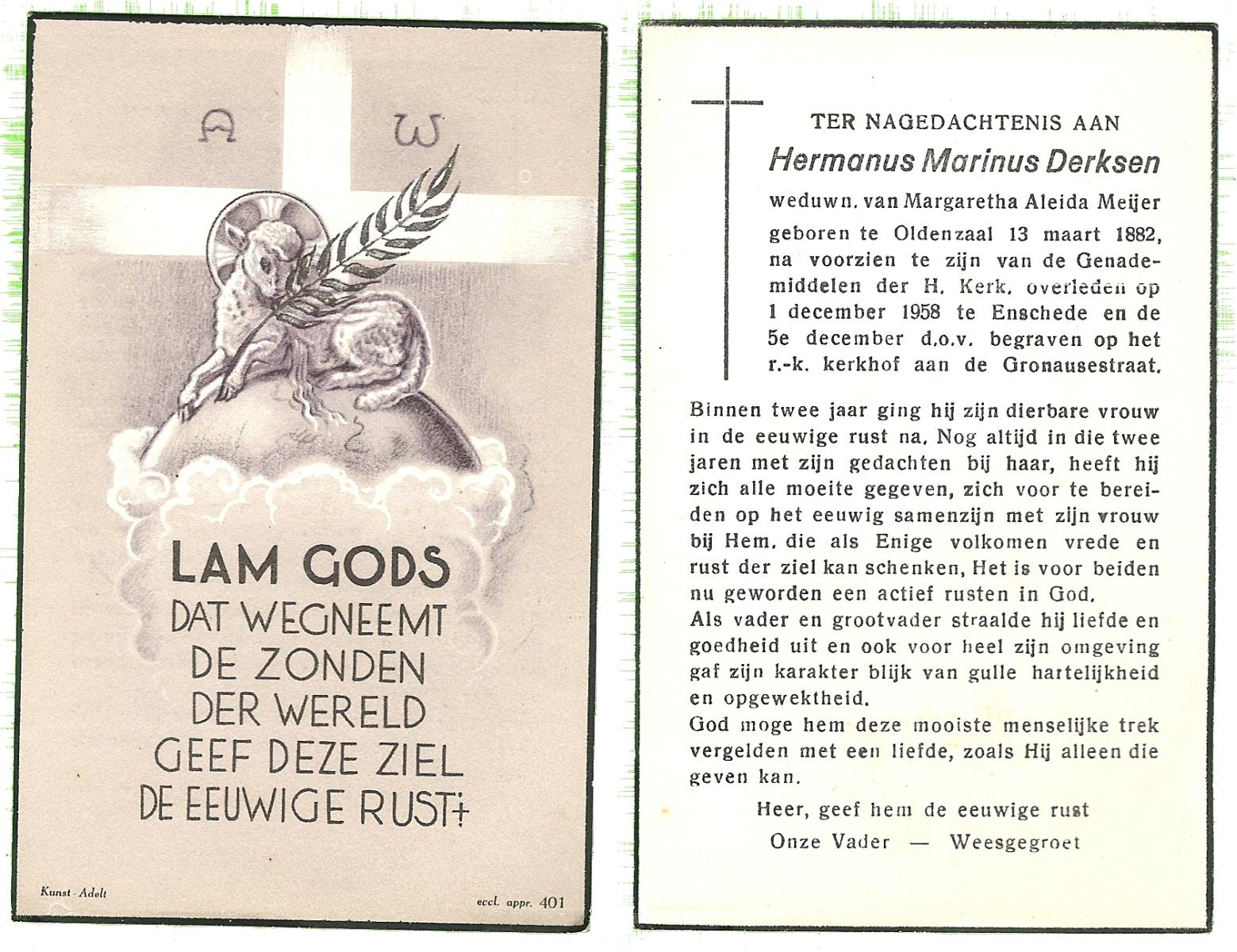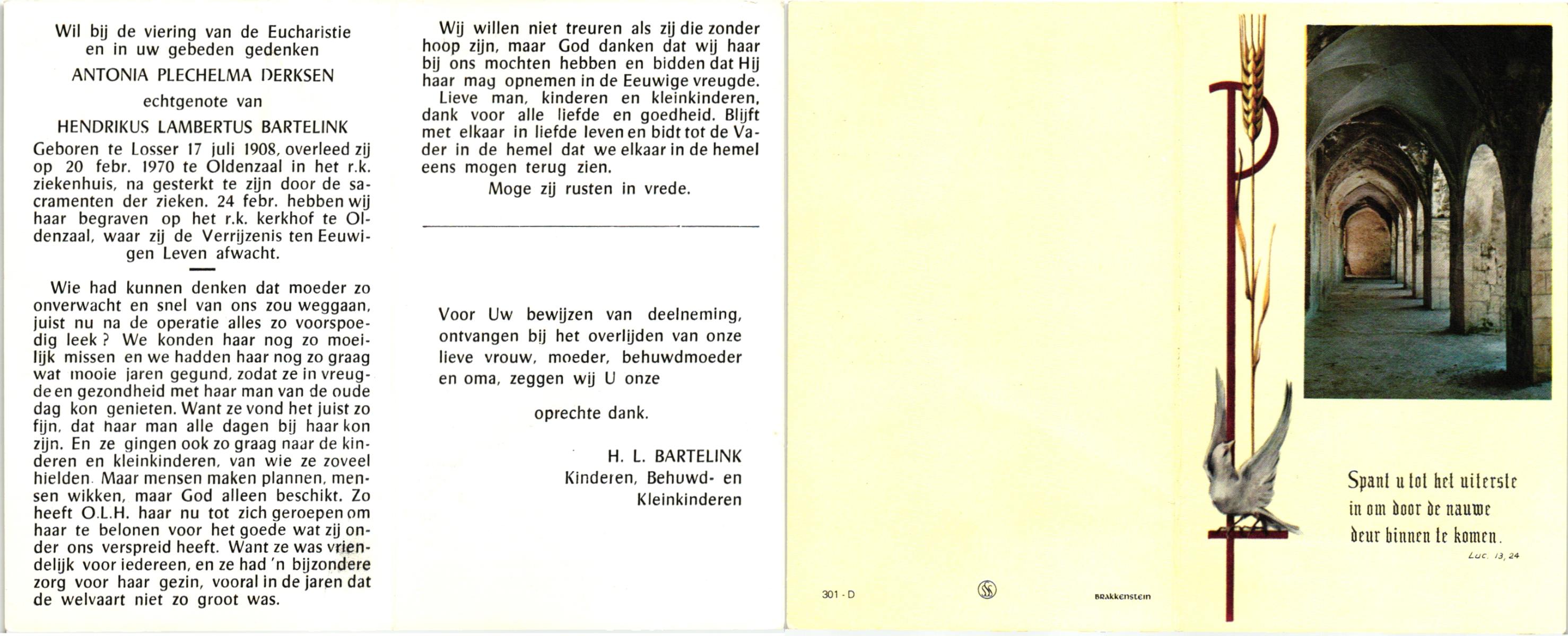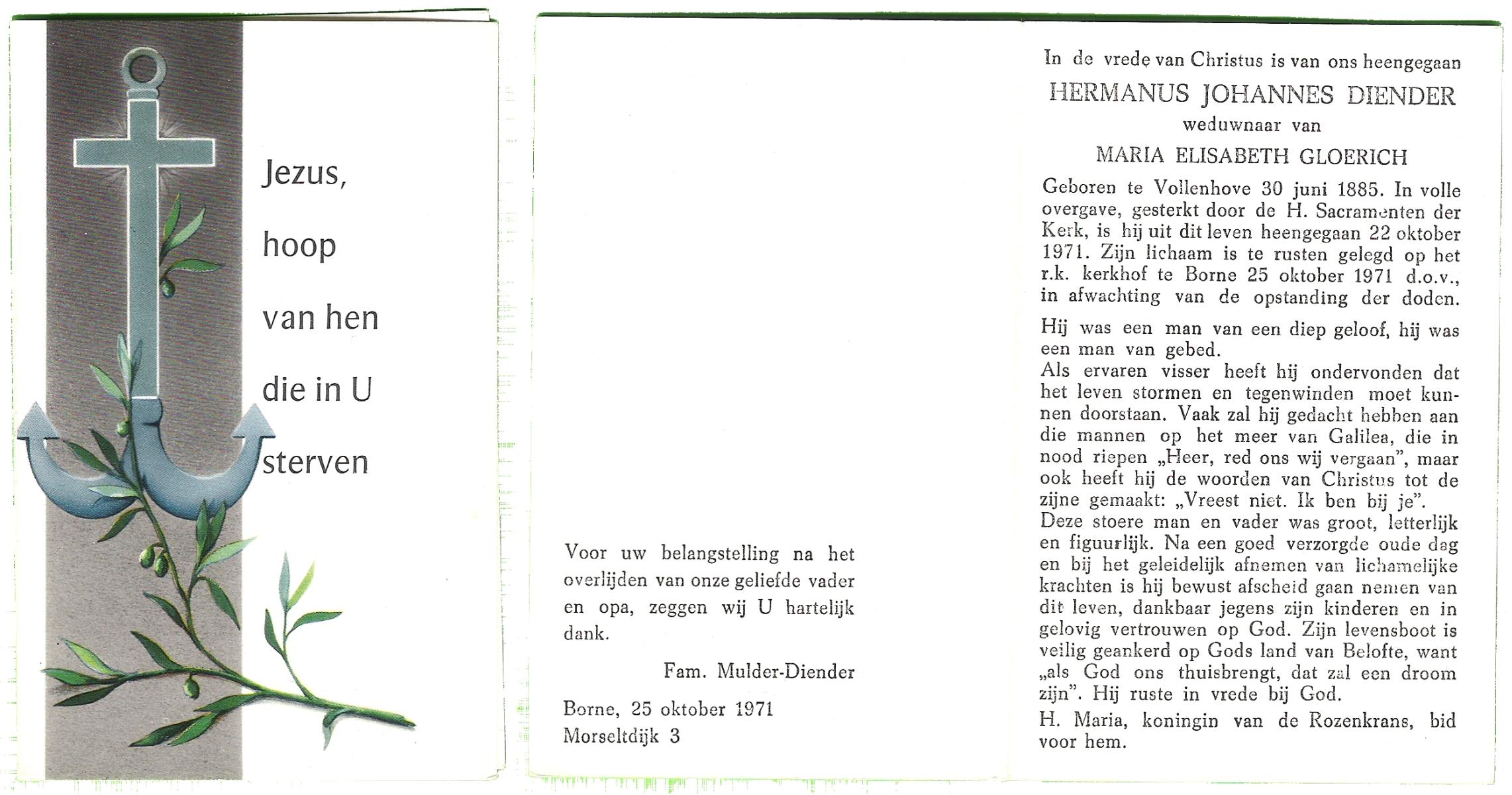 DISSEL, Herman Antonius, geboren op 29-08-1897 te Denekamp, overleden op 18-4-1972 te Oldenzaal op 74-jarige leeftijd, begraven op 21-4-1972 te Denekamp.
