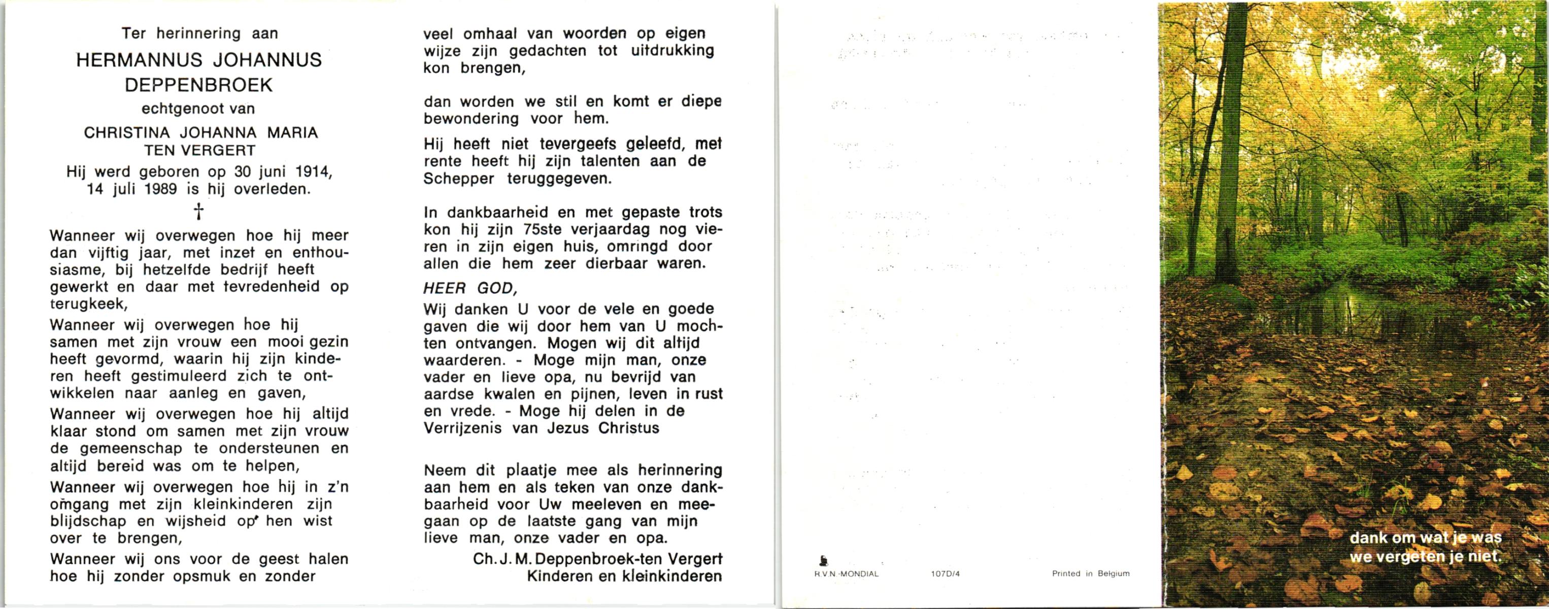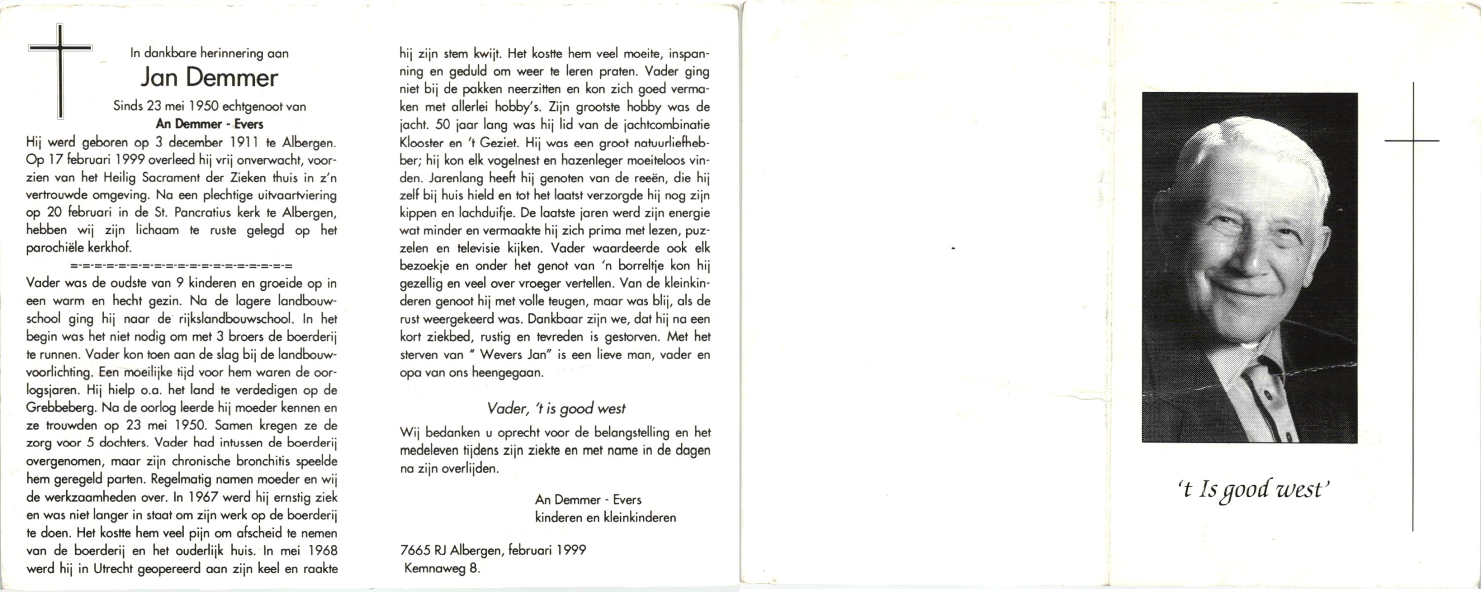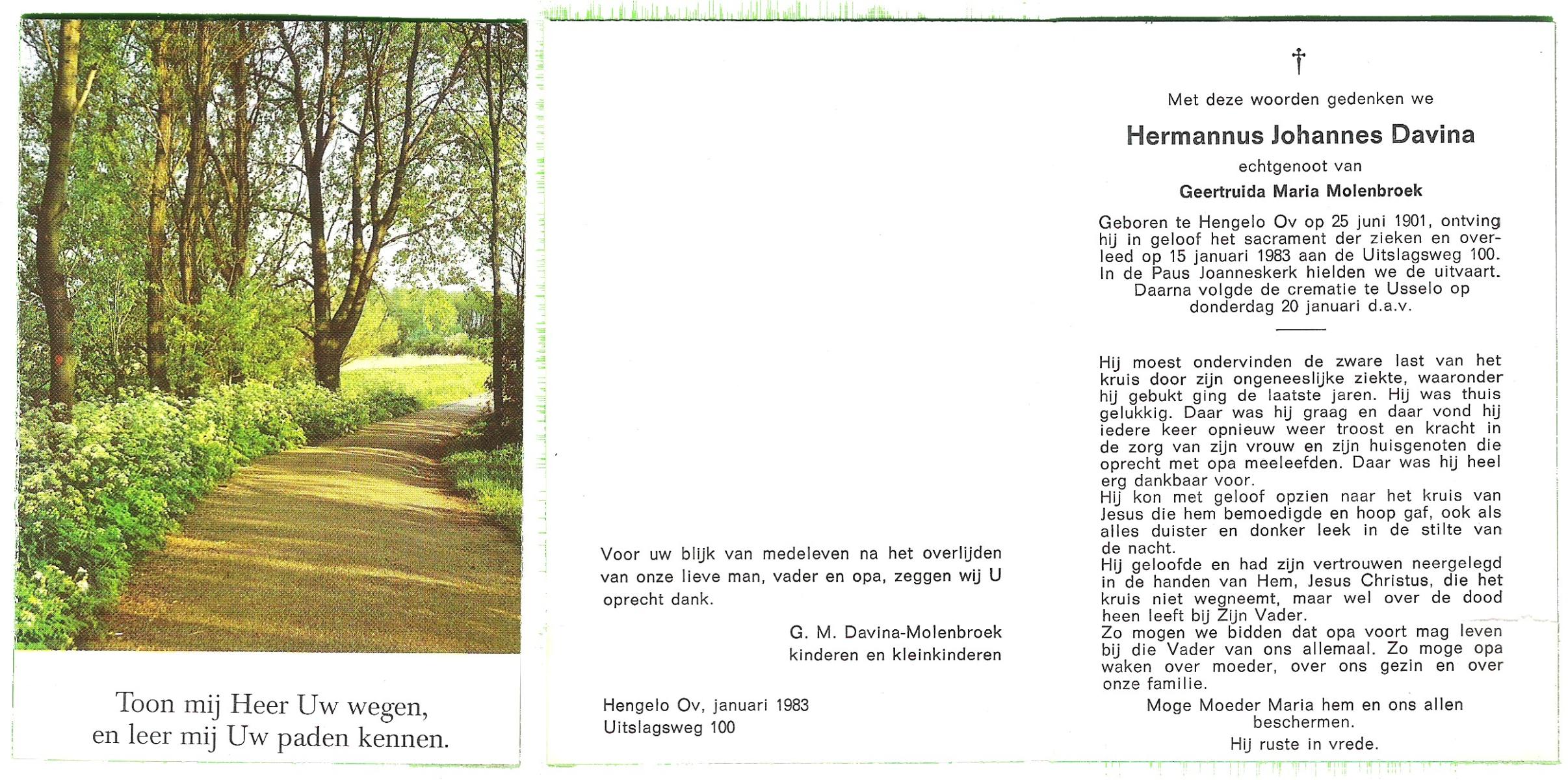 DAMGRAVE, , Johannes Hermanus, geboren op 20-11-1921 te Oldenzaal, overleden op 19-12-1999 te Hengelo (O) op 78-jarige leeftijd, begraven op 23-12-1999 te Borne.