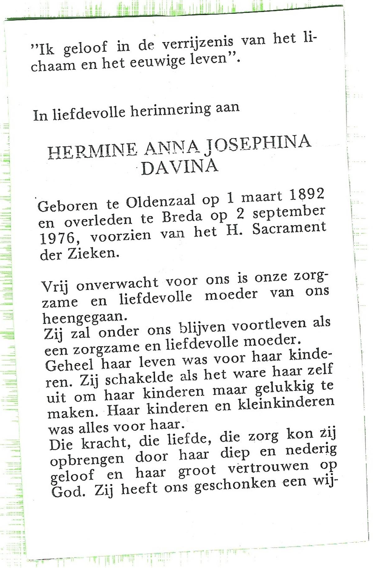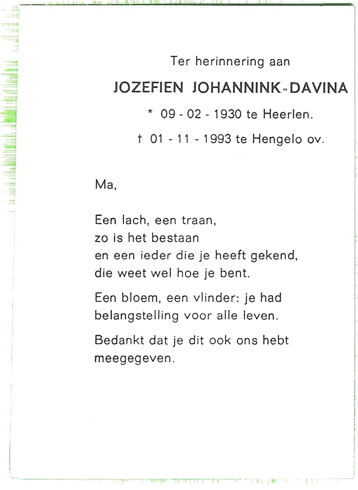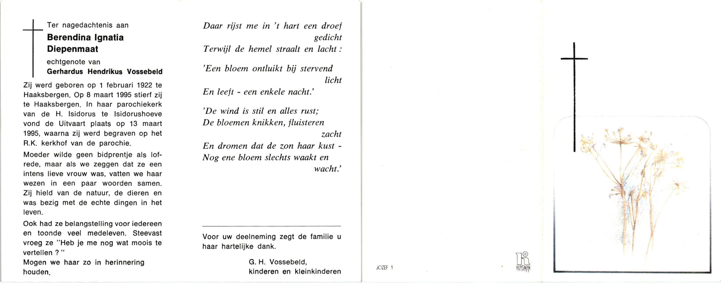 DISSEL, Hermanna Josephina, geboren op 9-3-1901 te Denekamp, overleden op 27-7-1991 op 90-jarige leeftijd, begraven op 31-7-1991 te Denekamp.