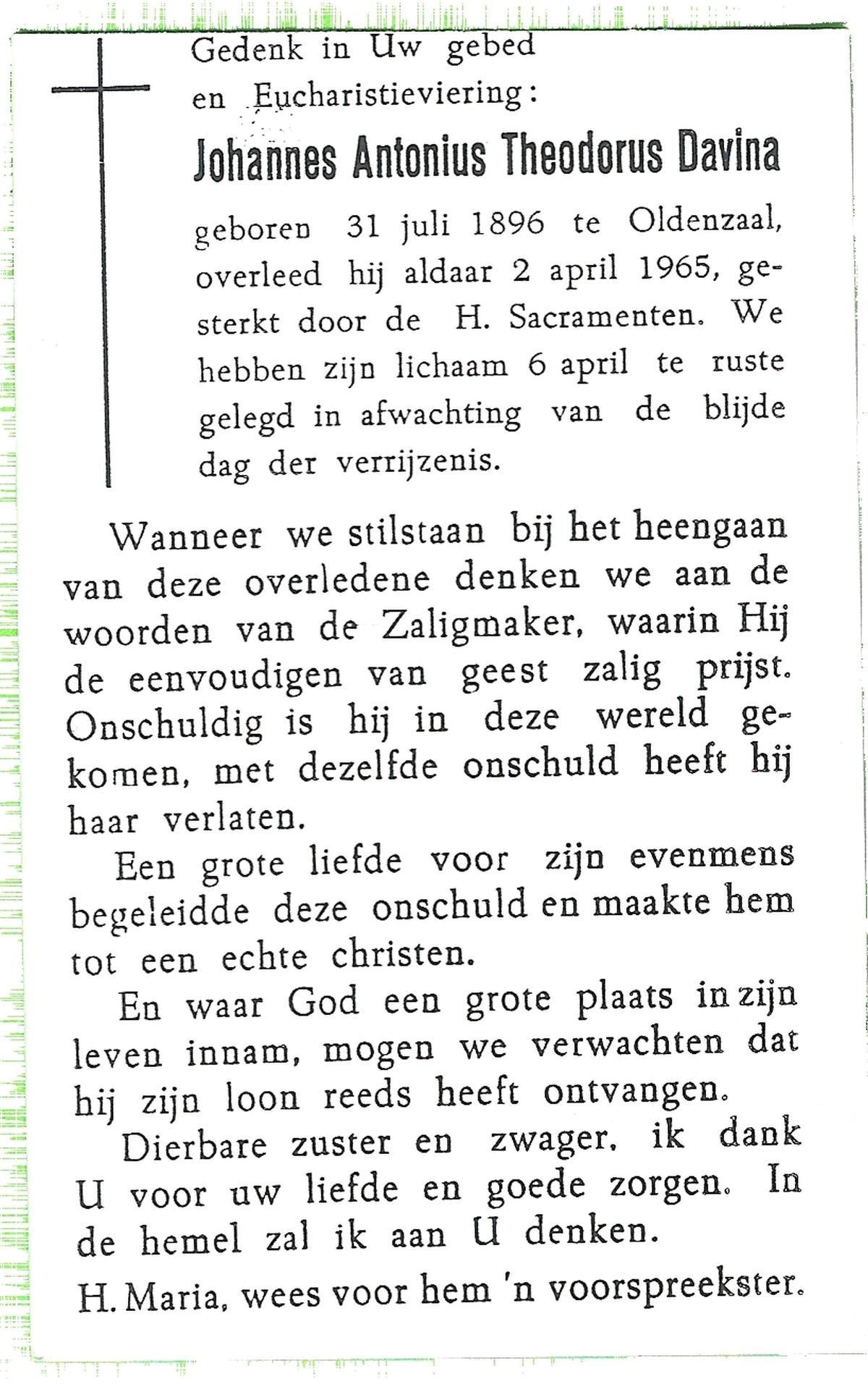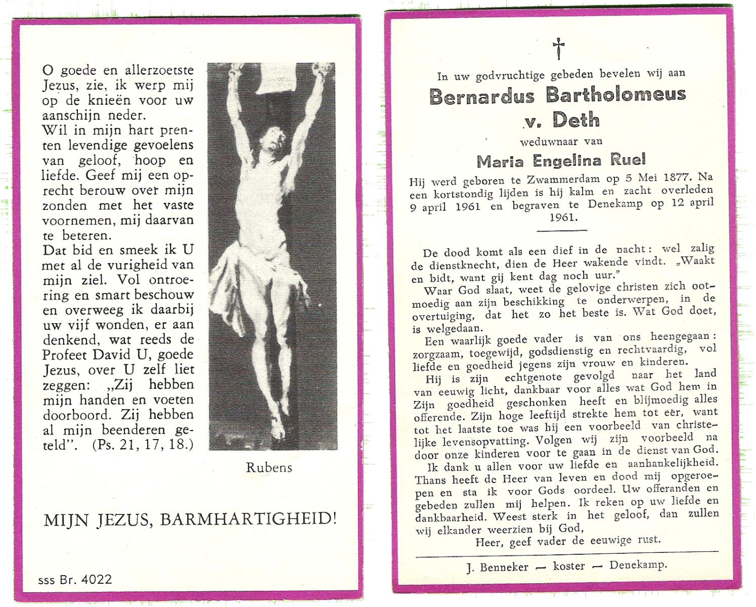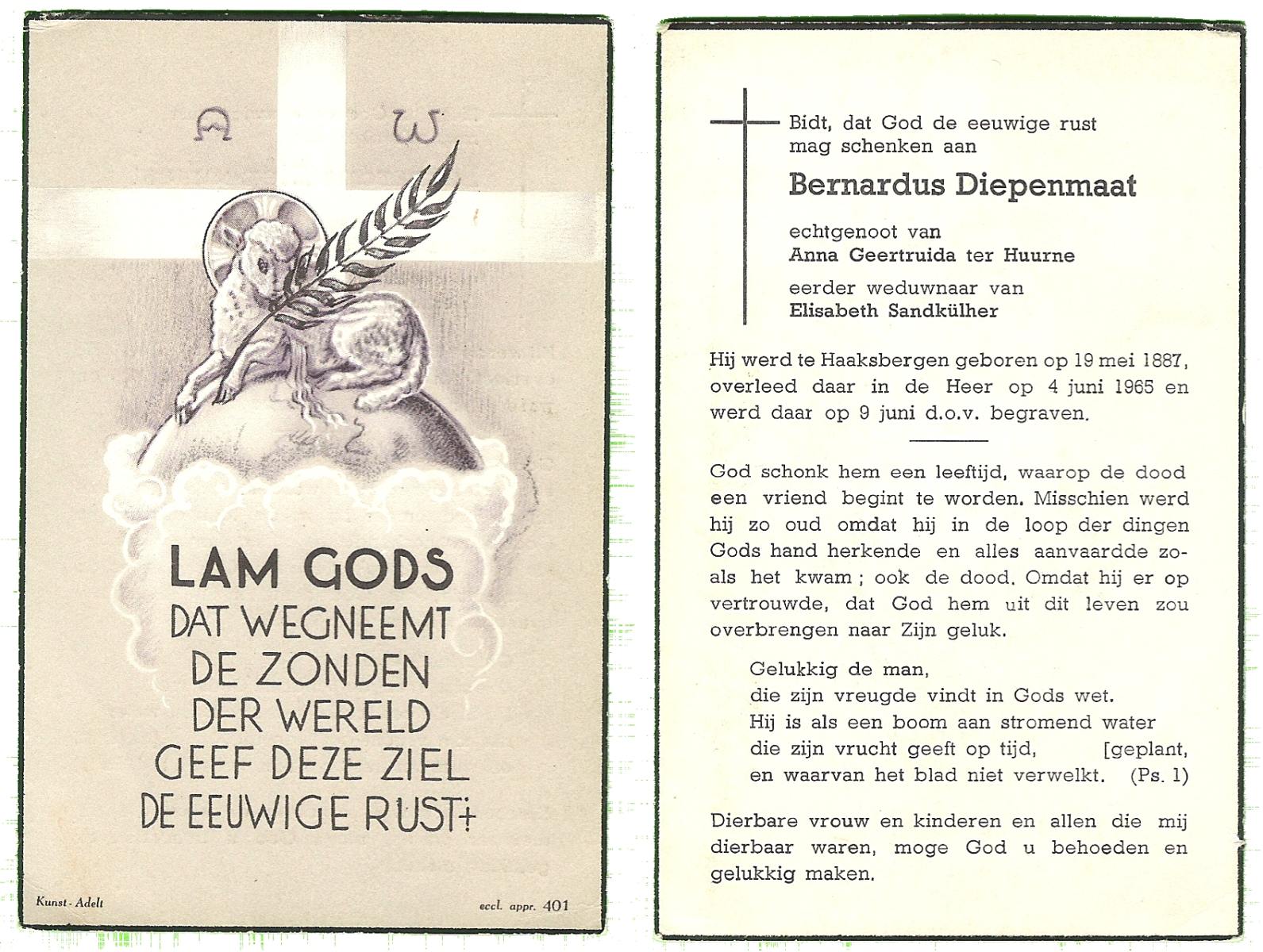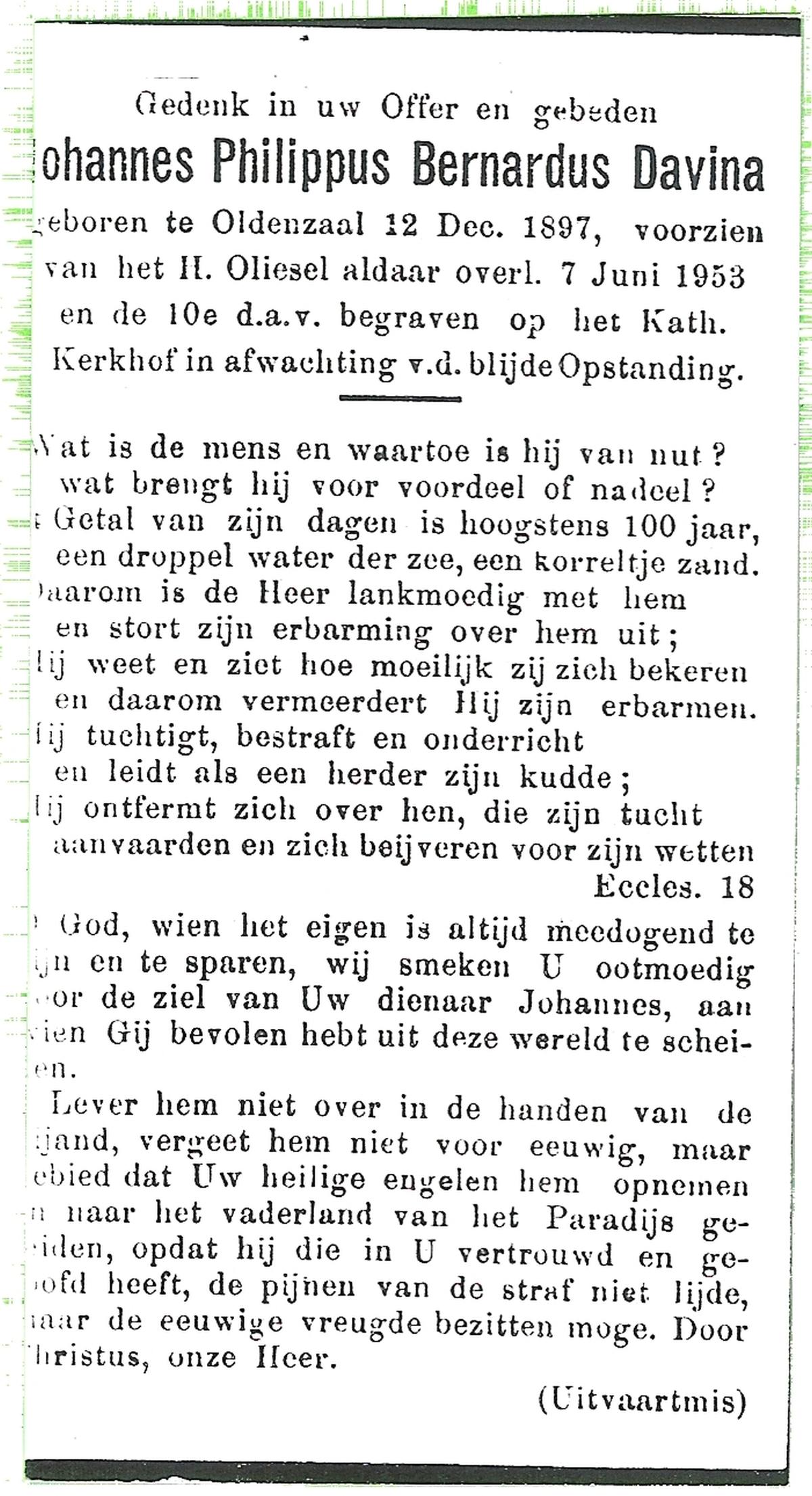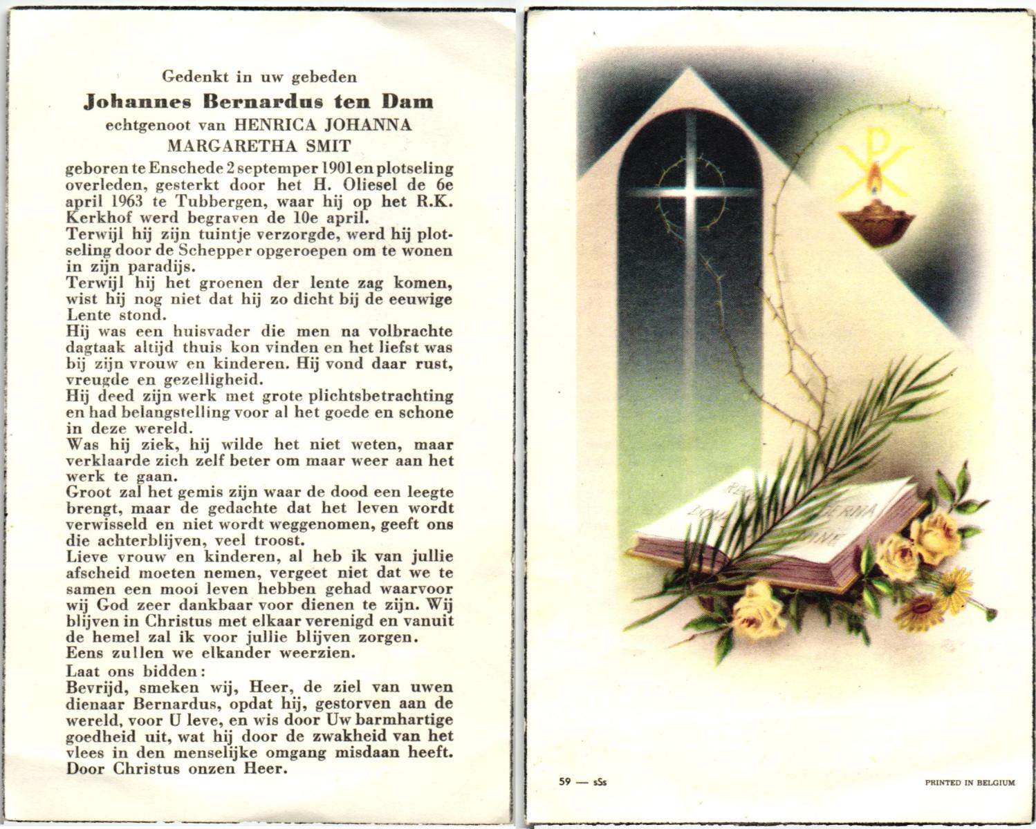 DAM, ten, Johannes Bernardus, geboren op 2-9-1901 te Enschede, overleden op 6-4-1963 te Tubbergen op 61-jarige leeftijd, begraven op 10-4-1963 te Tubbergen.