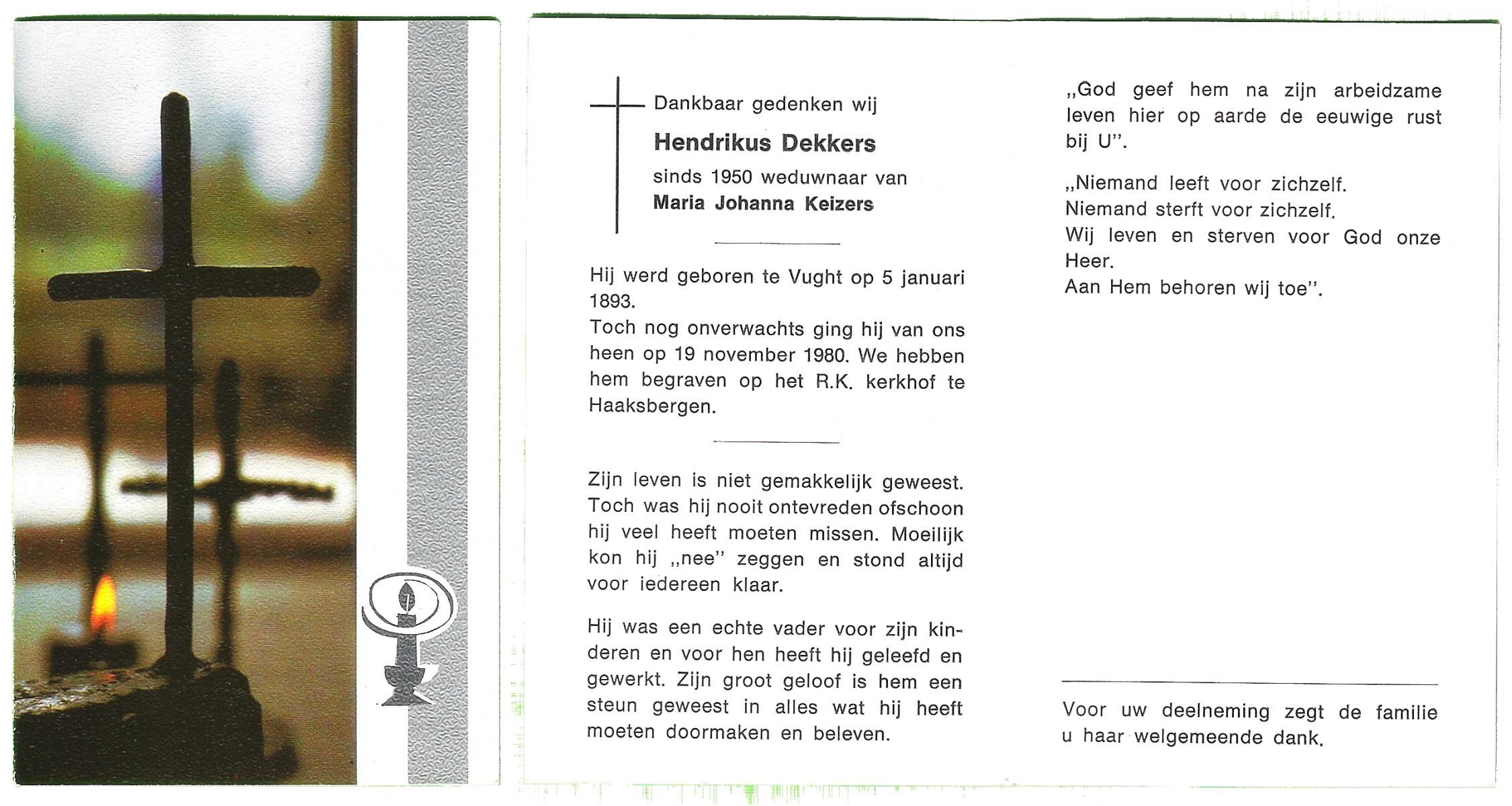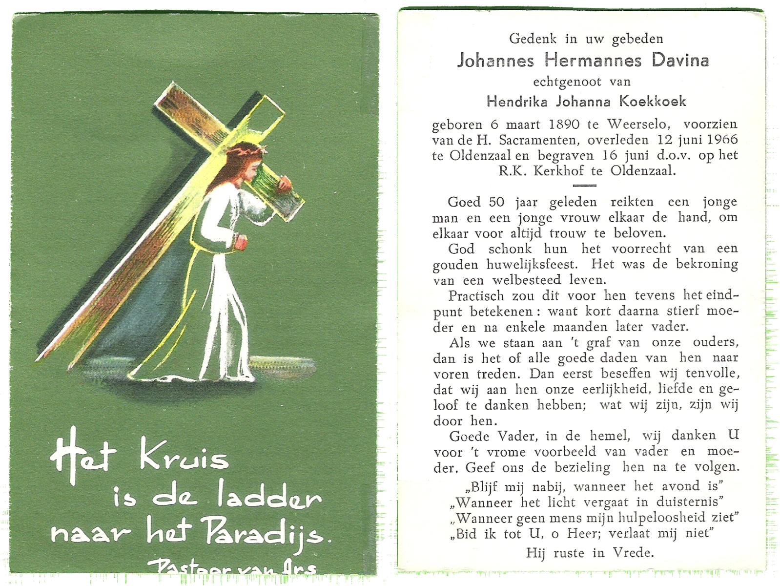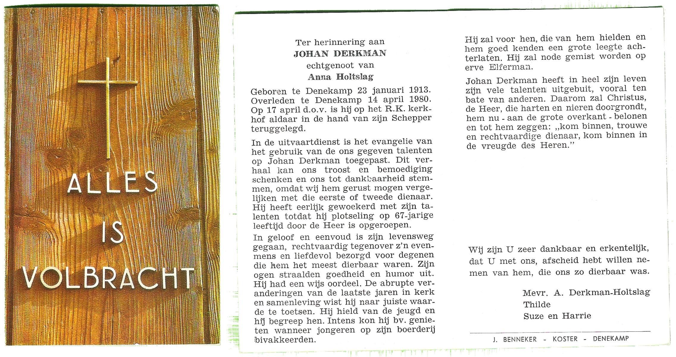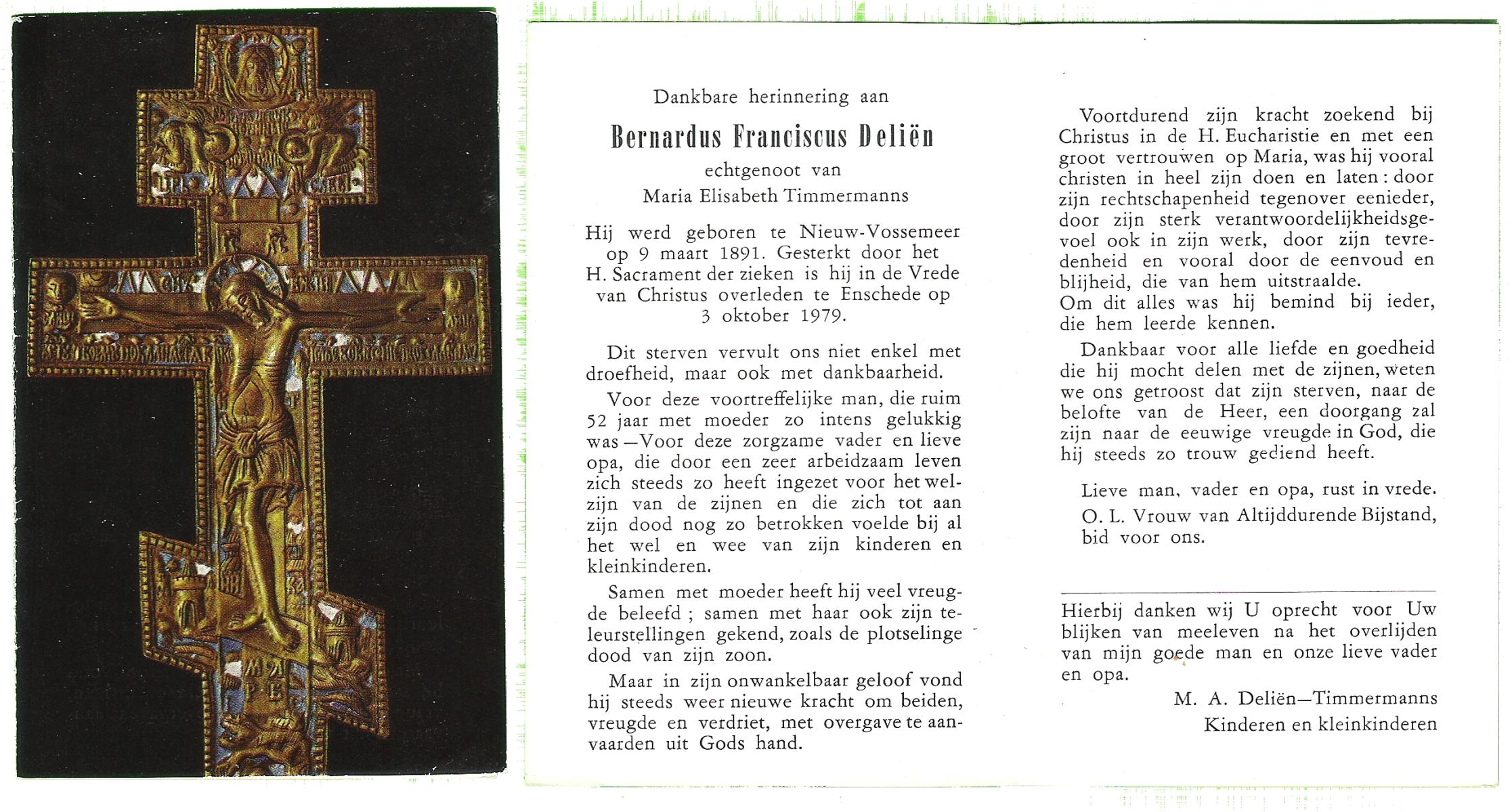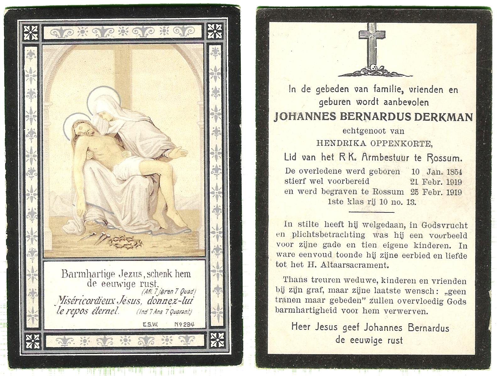 DIJKMANS, Johannes Petrus, geboren op 21-4-1911 te den Hout, overleden op 29-3-1961 te Delden op 59-jarige leeftijd, begraven op 4-4-1961 te Delden.