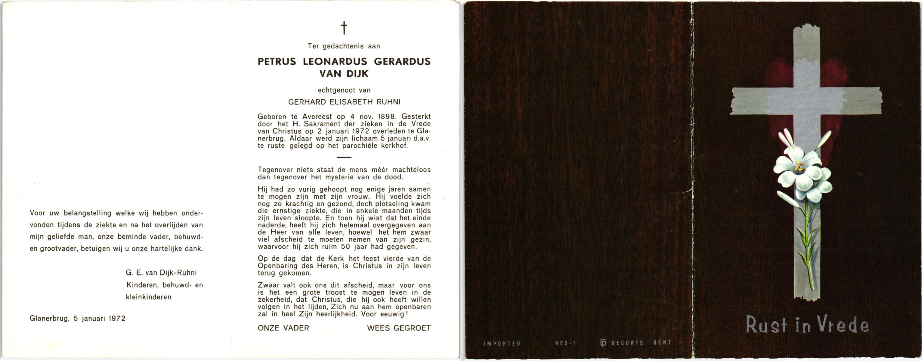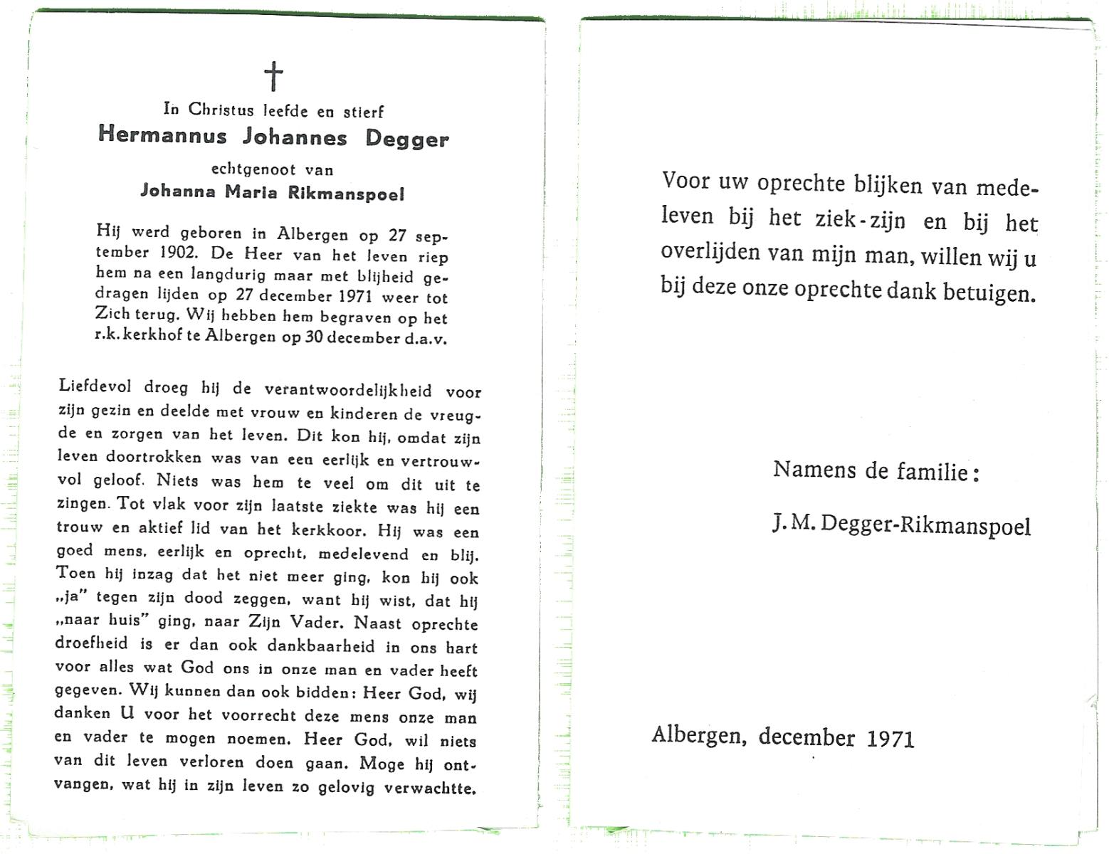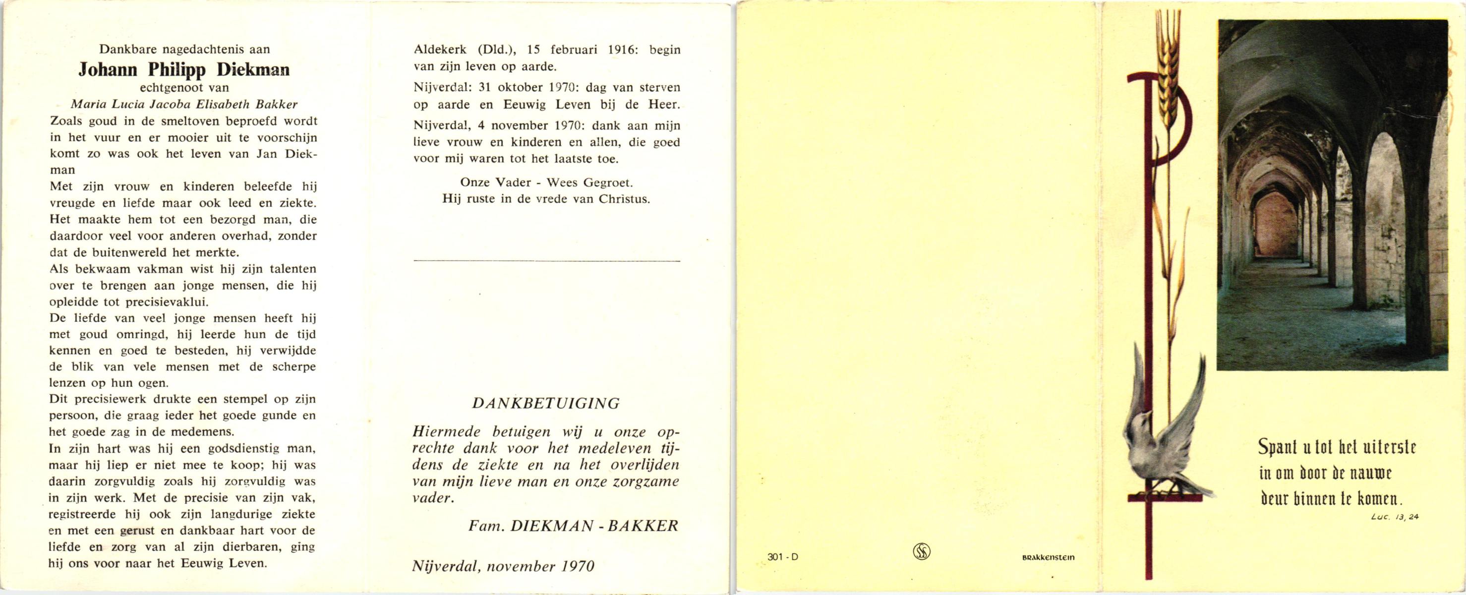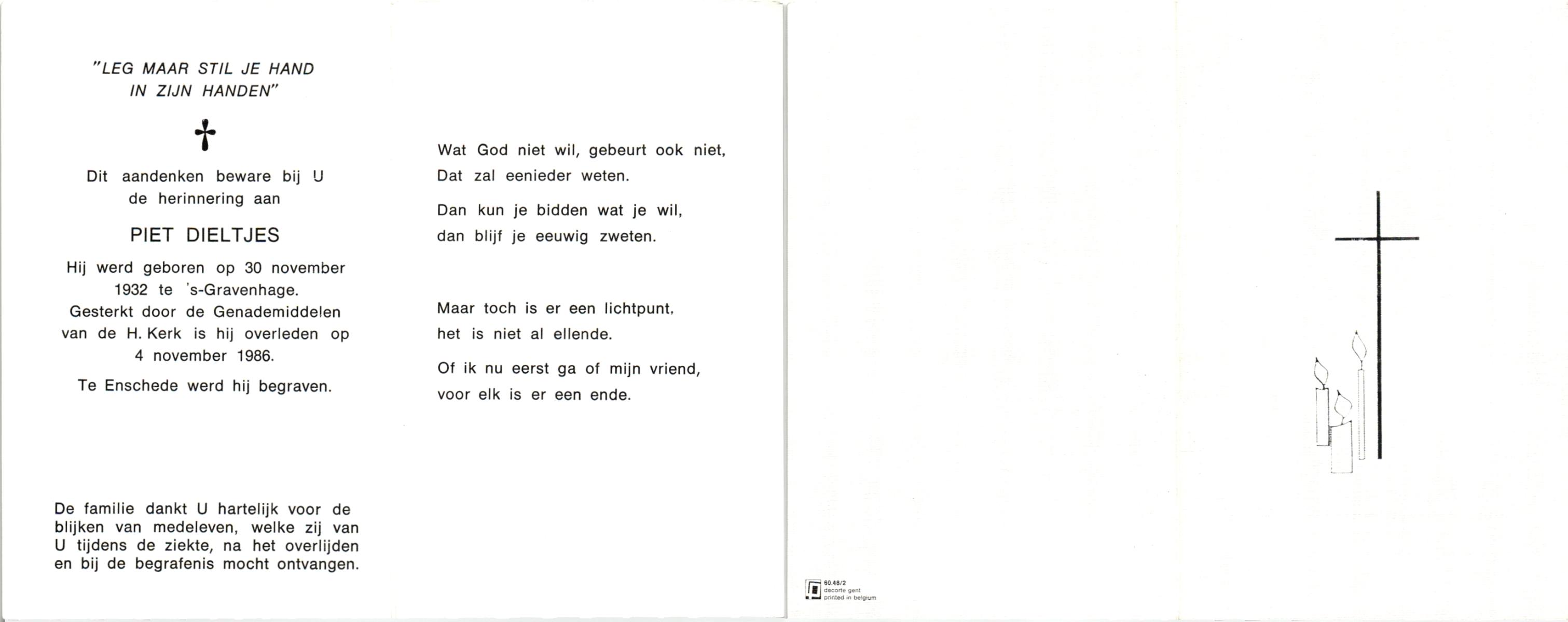 DIJKMANS, Johannes Petrus, geboren op 21-4-1911 te den Hout, overleden op 29-3-1961 te Delden op 59-jarige leeftijd, begraven op 4-4-1961 te Delden.