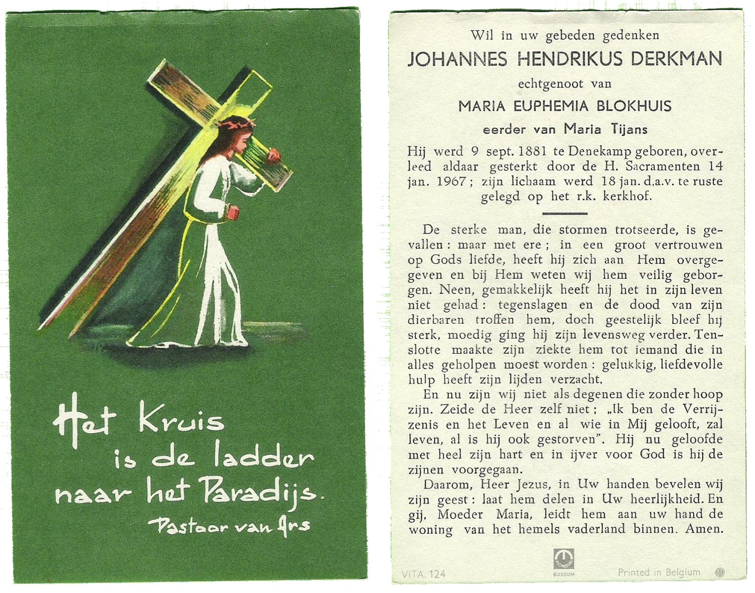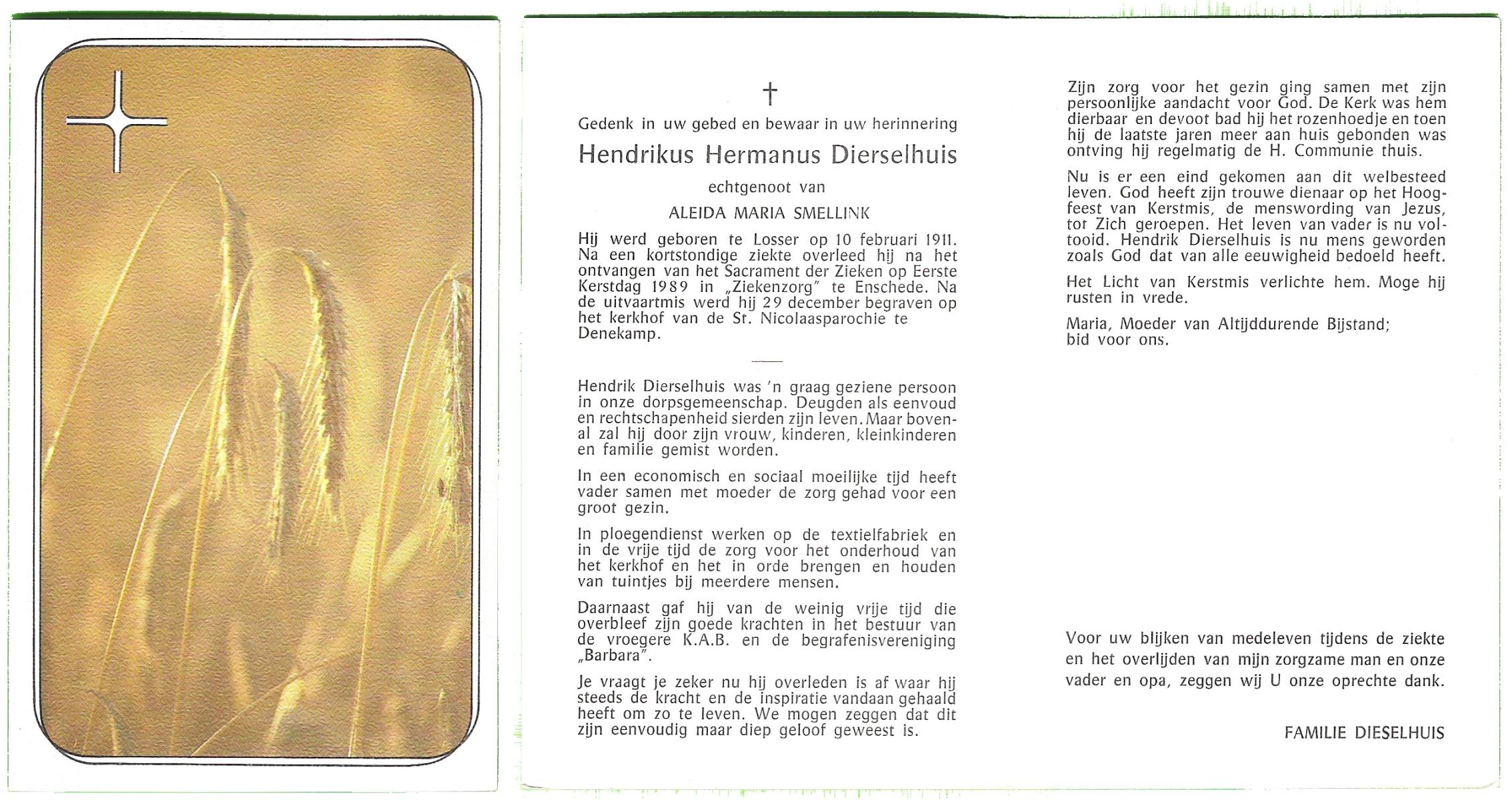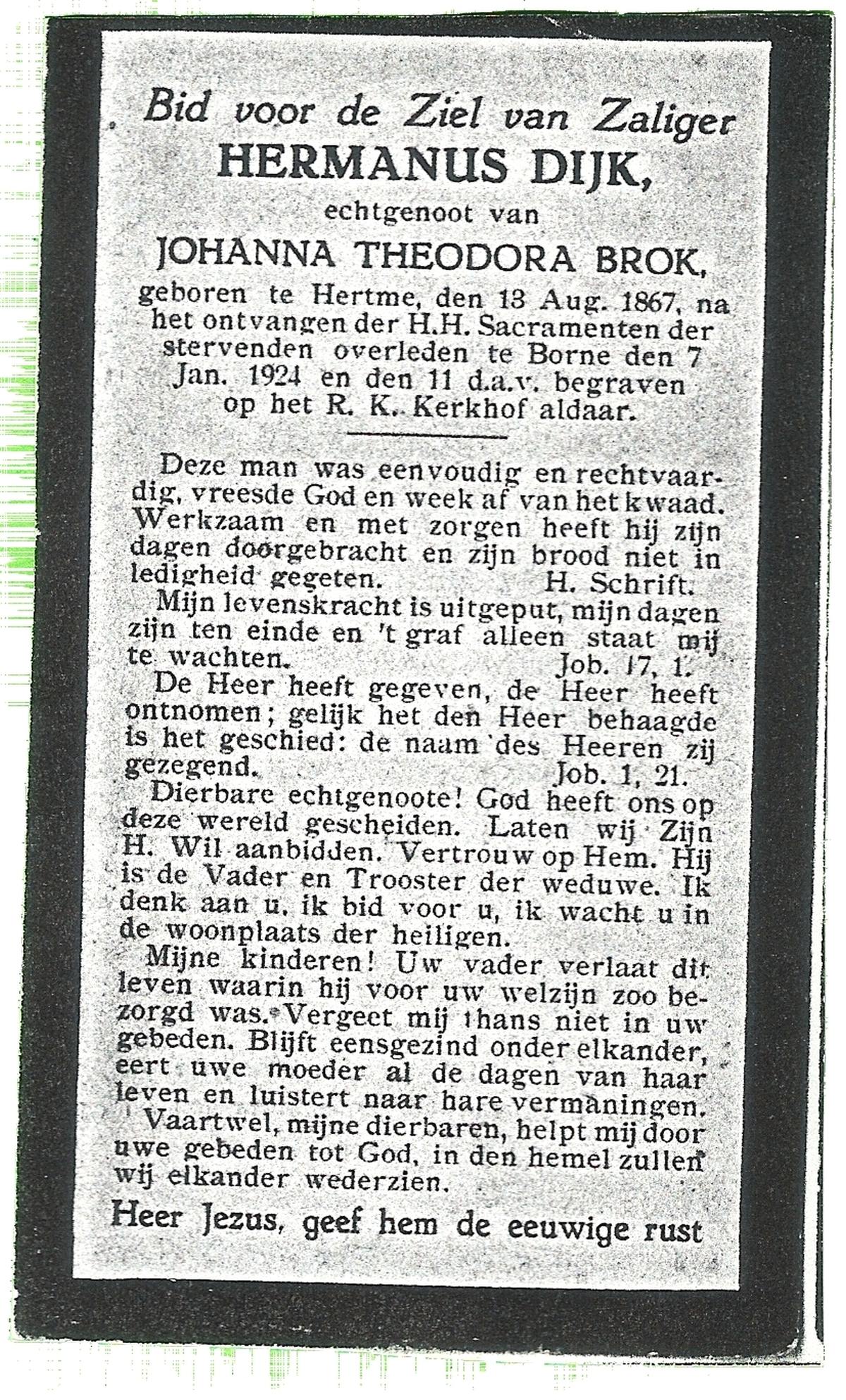 DIJKHUIS, Henricus Johannes, geboren op 30-03-1896 te Borne, overleden op 27-7-1980 te Eibergen op 84-jarige leeftijd.