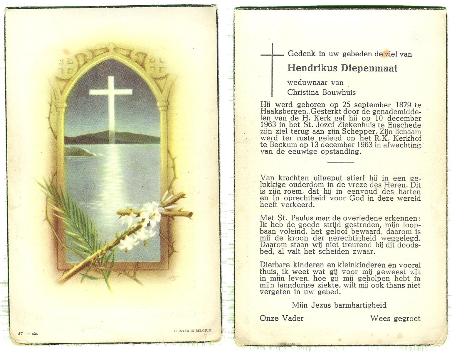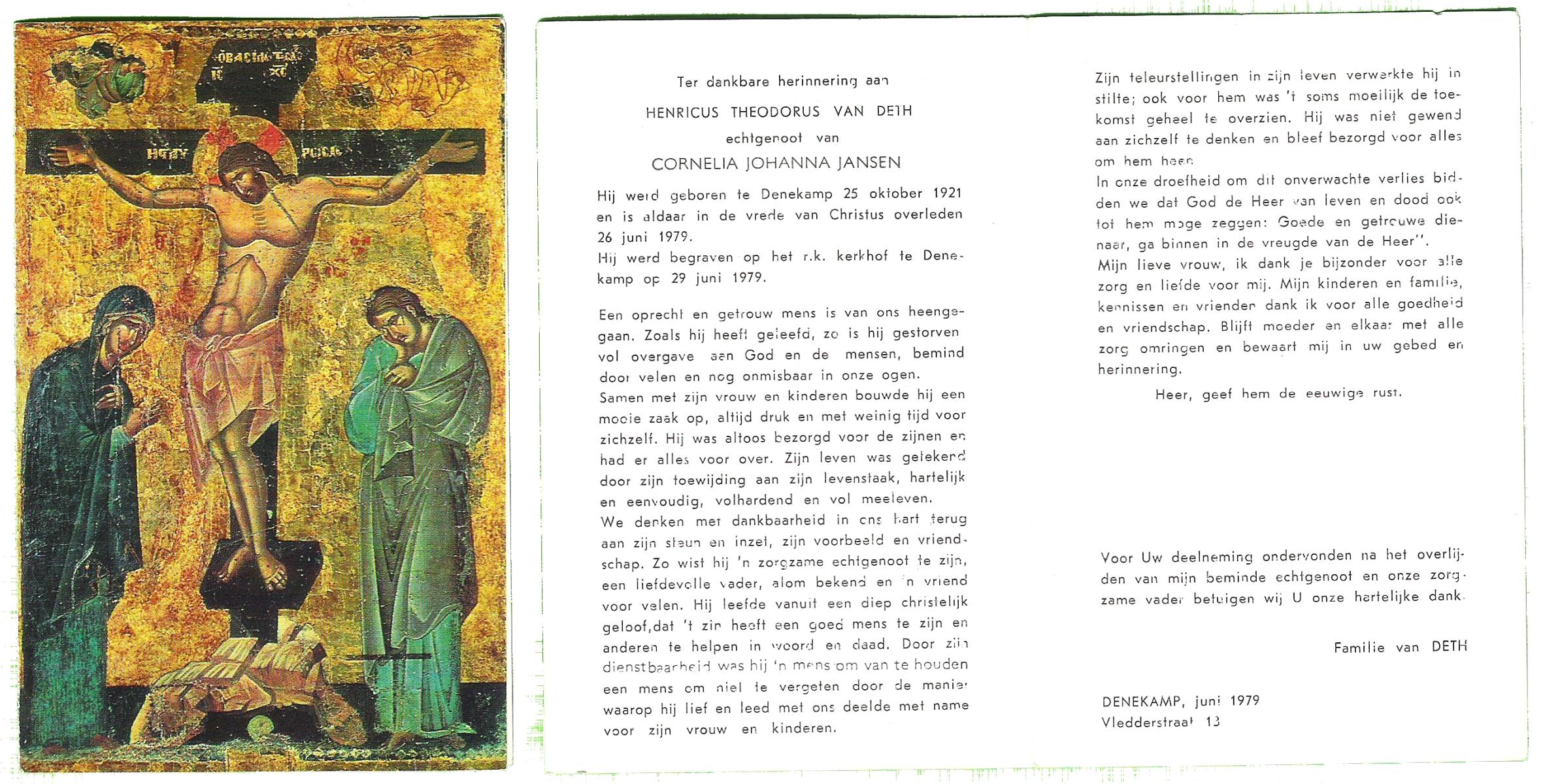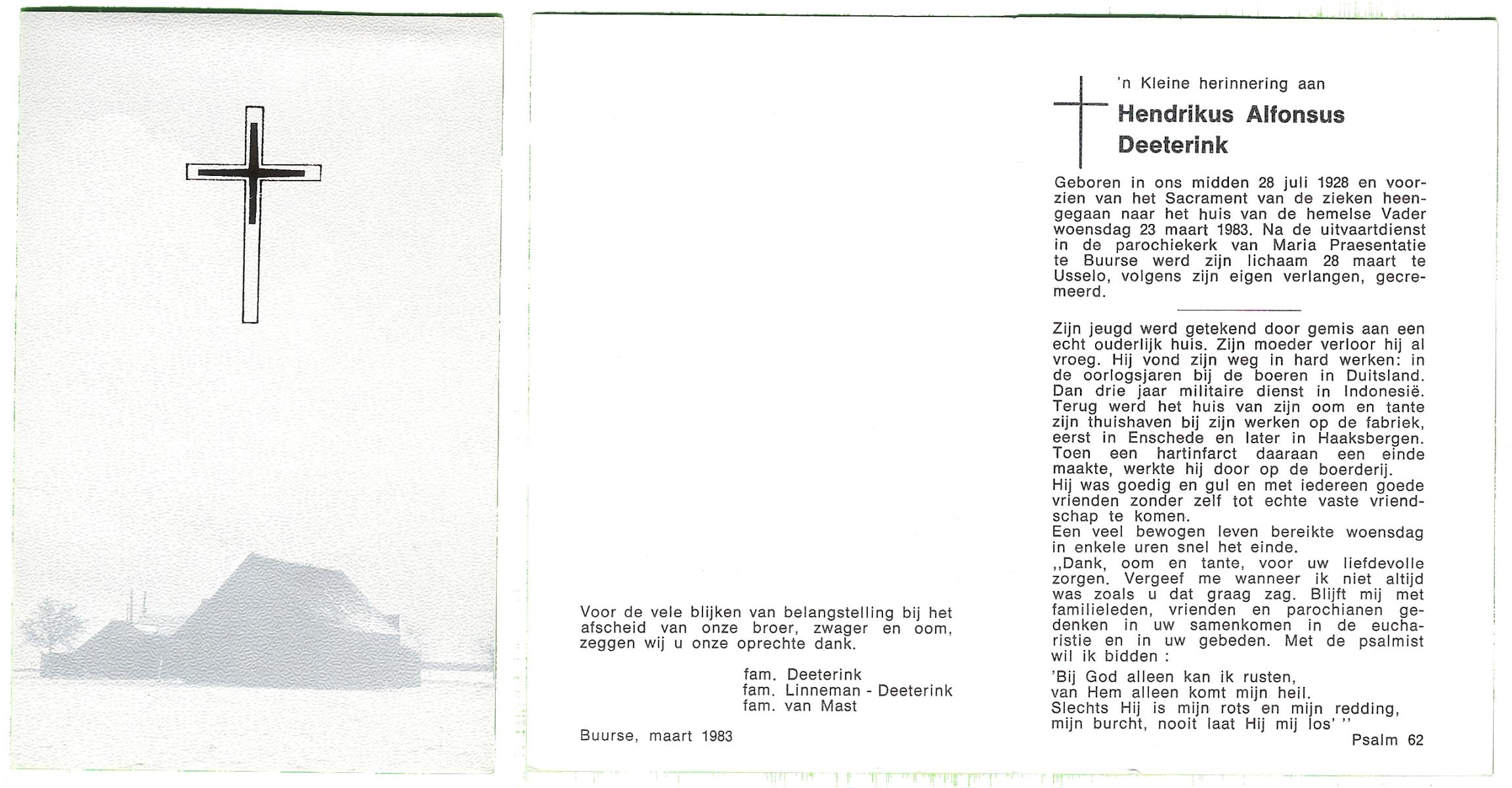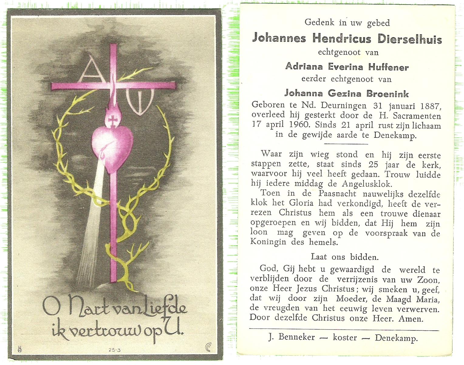 DIJKHUIS, Henricus Johannes, geboren op 30-03-1896 te Borne, overleden op 27-7-1980 te Eibergen op 84-jarige leeftijd.
