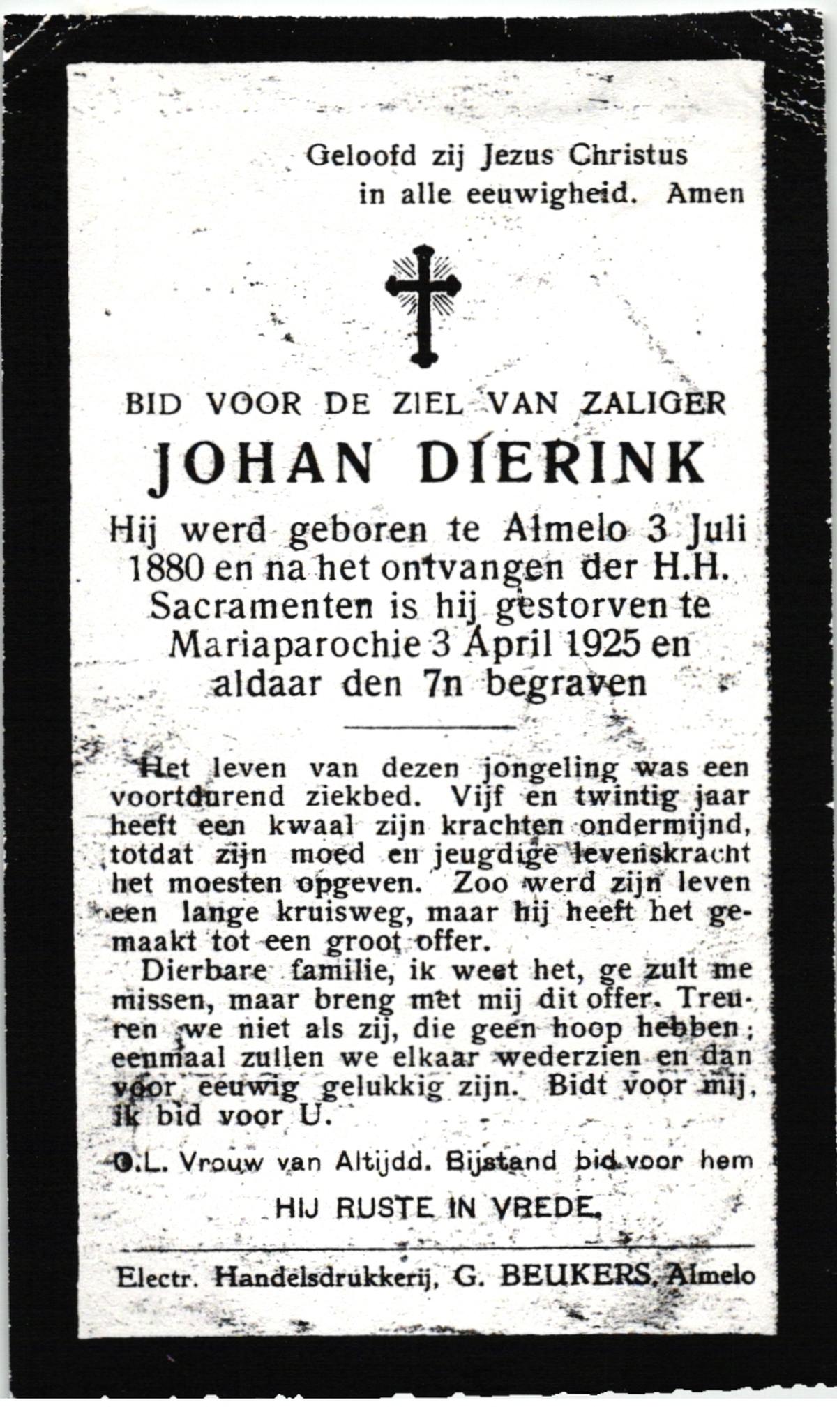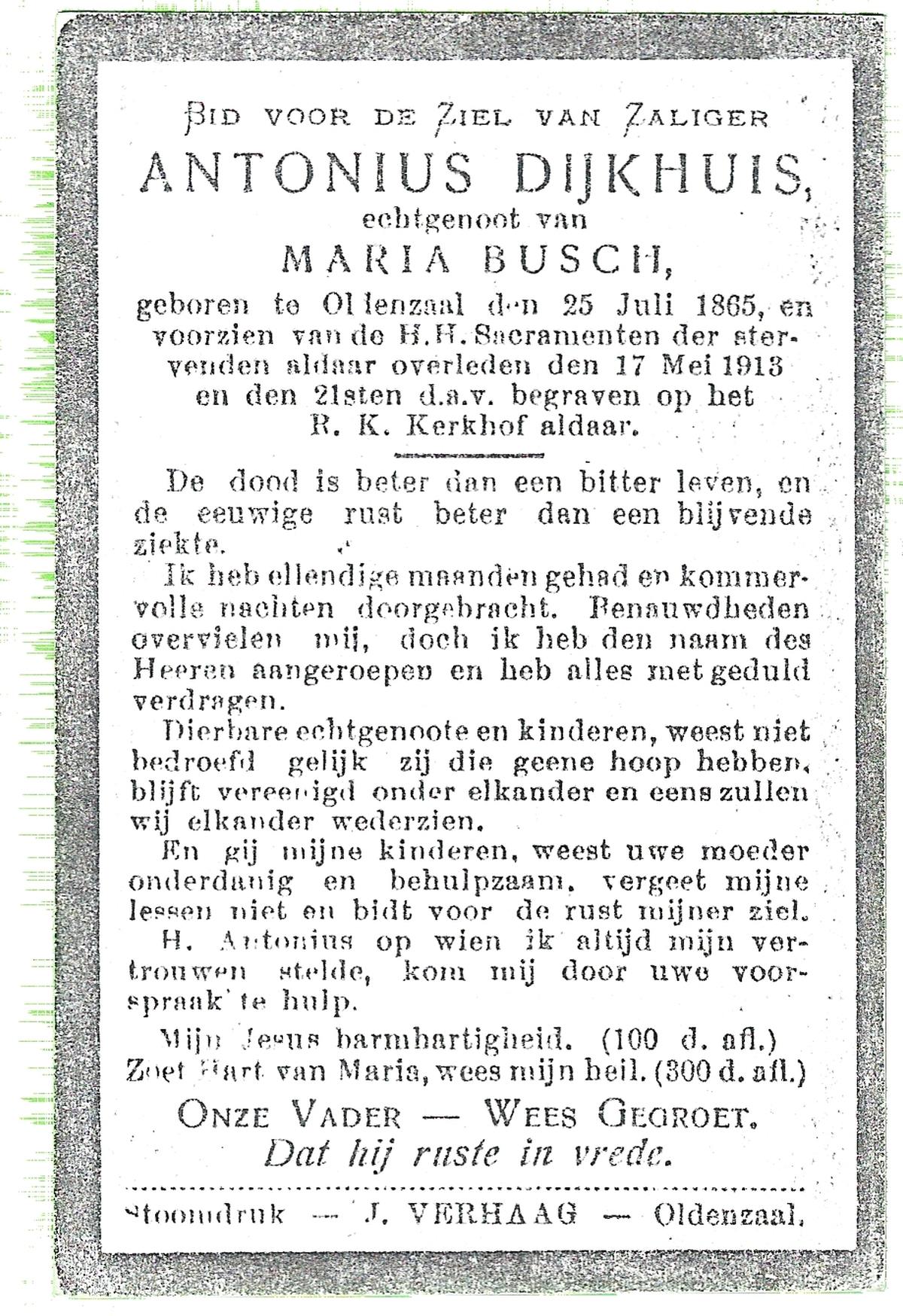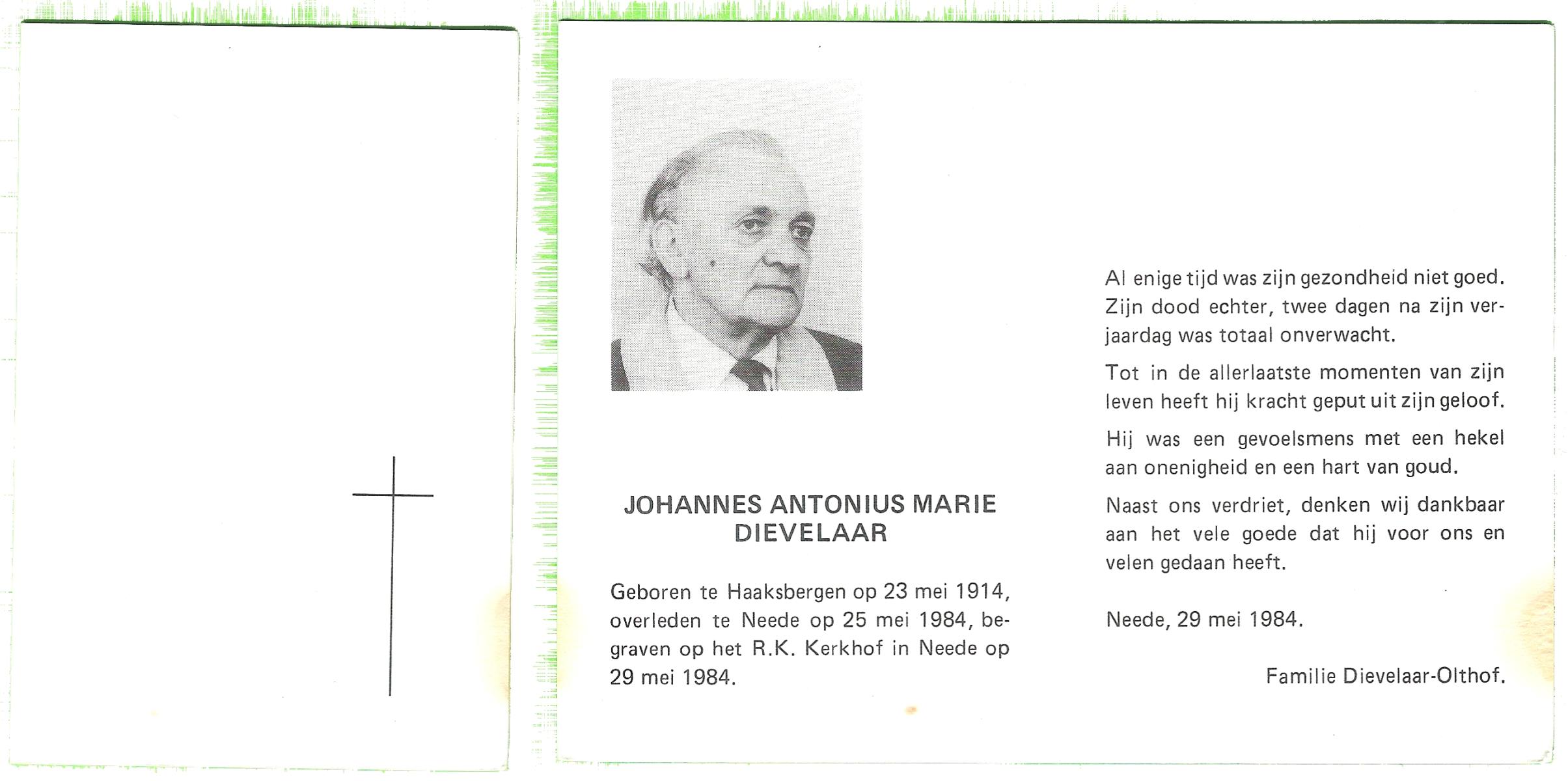 DIJKHUIS, Johannes Antonius, geboren op 29-08-1899 te Oldenzaal, overleden op 4-3-1986 te Oldenzaal op 86-jarige leeftijd.