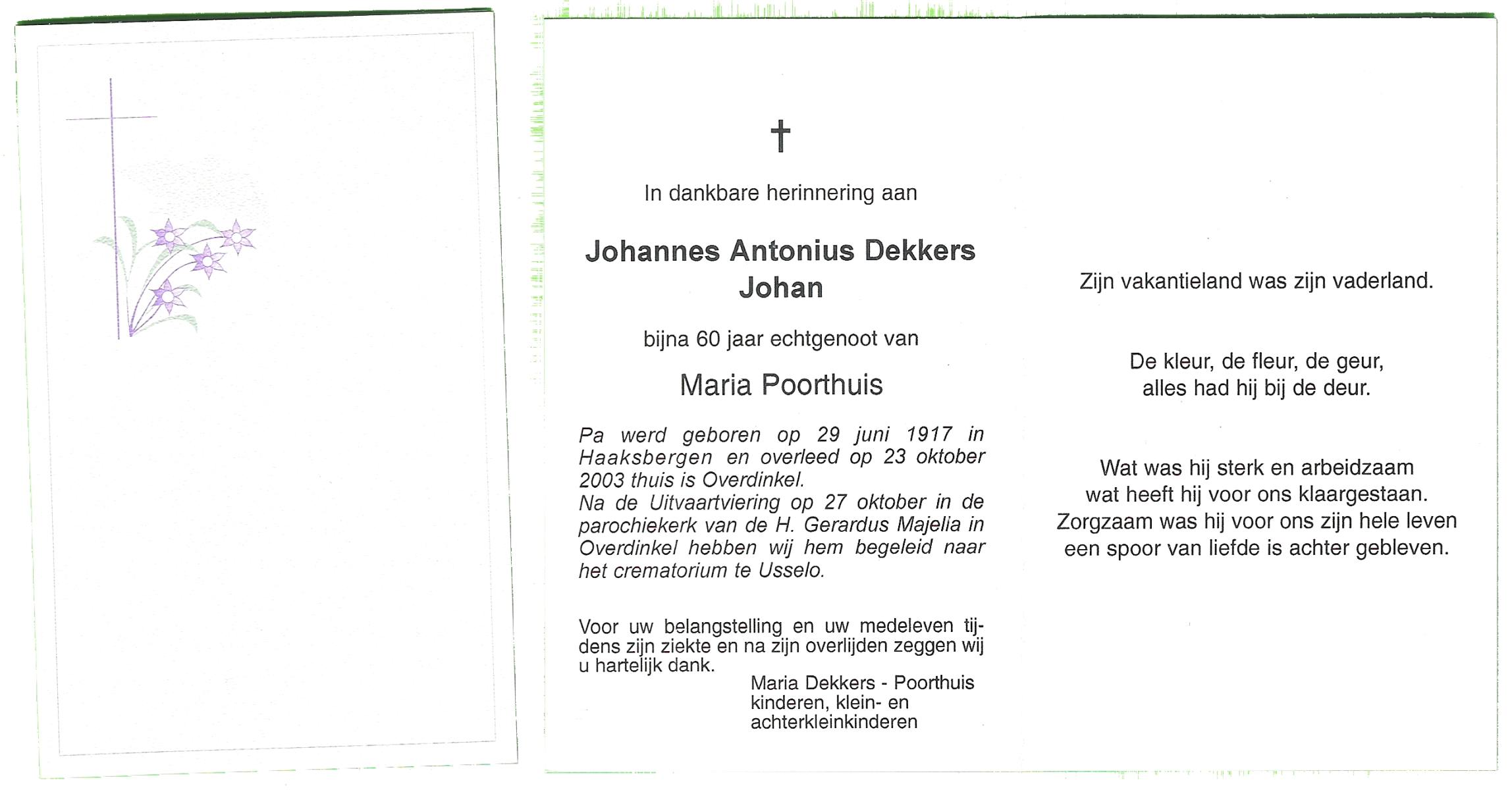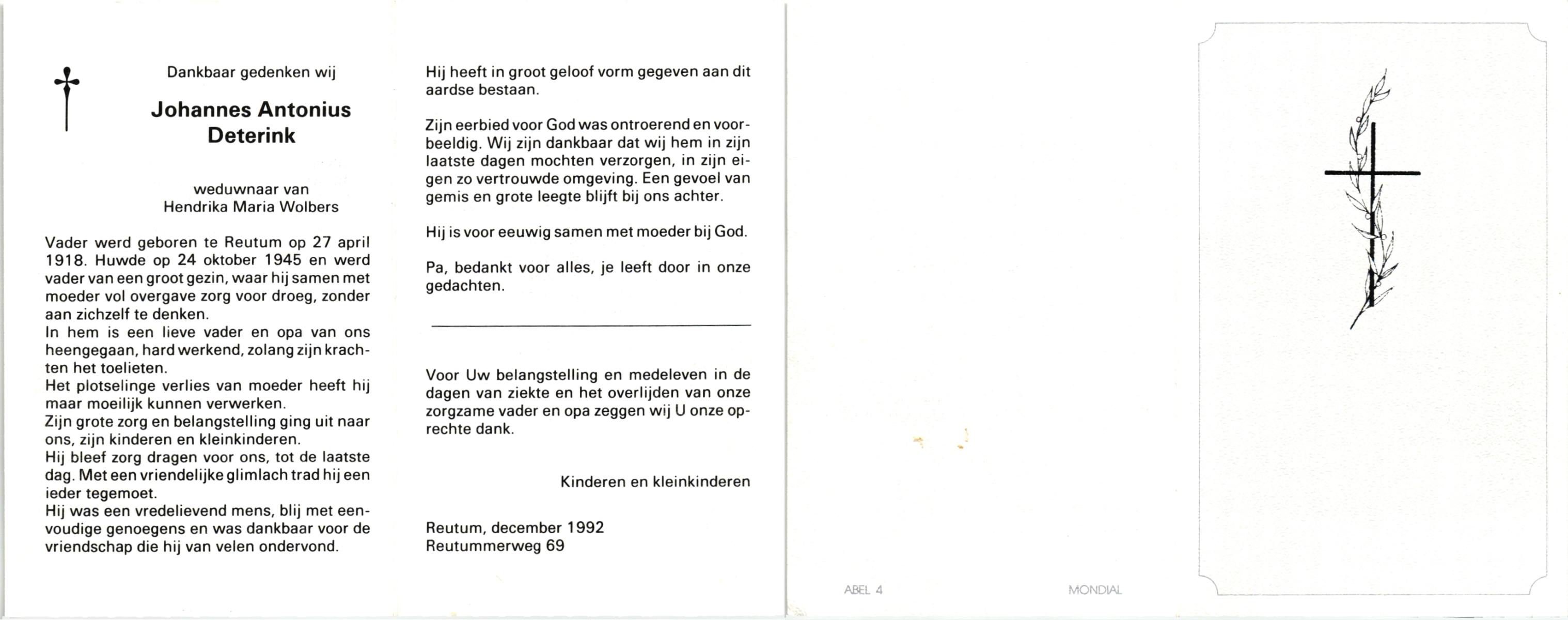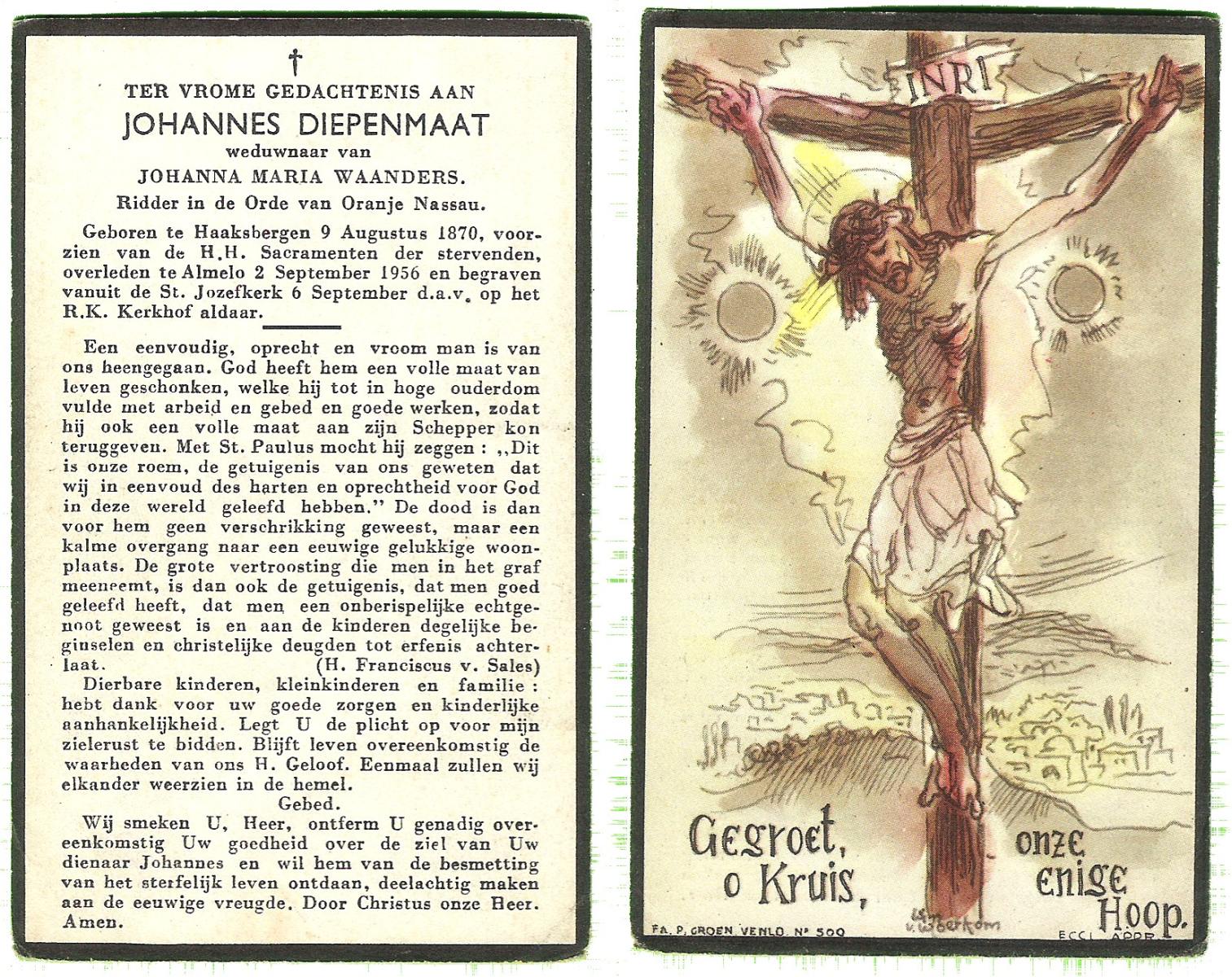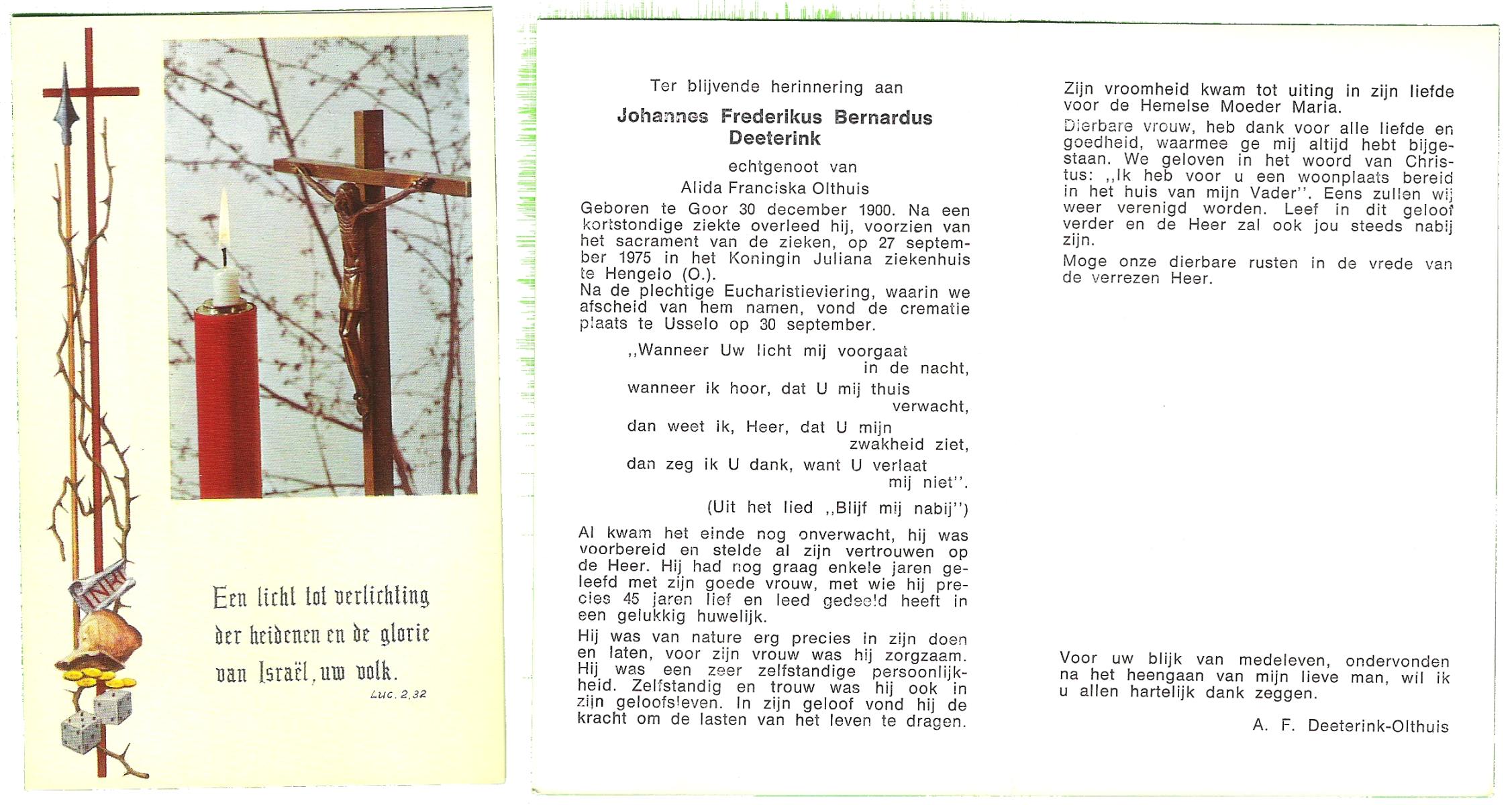 DIJKHUIS, Johannes Antonius, geboren op 29-08-1899 te Oldenzaal, overleden op 4-3-1986 te Oldenzaal op 86-jarige leeftijd.