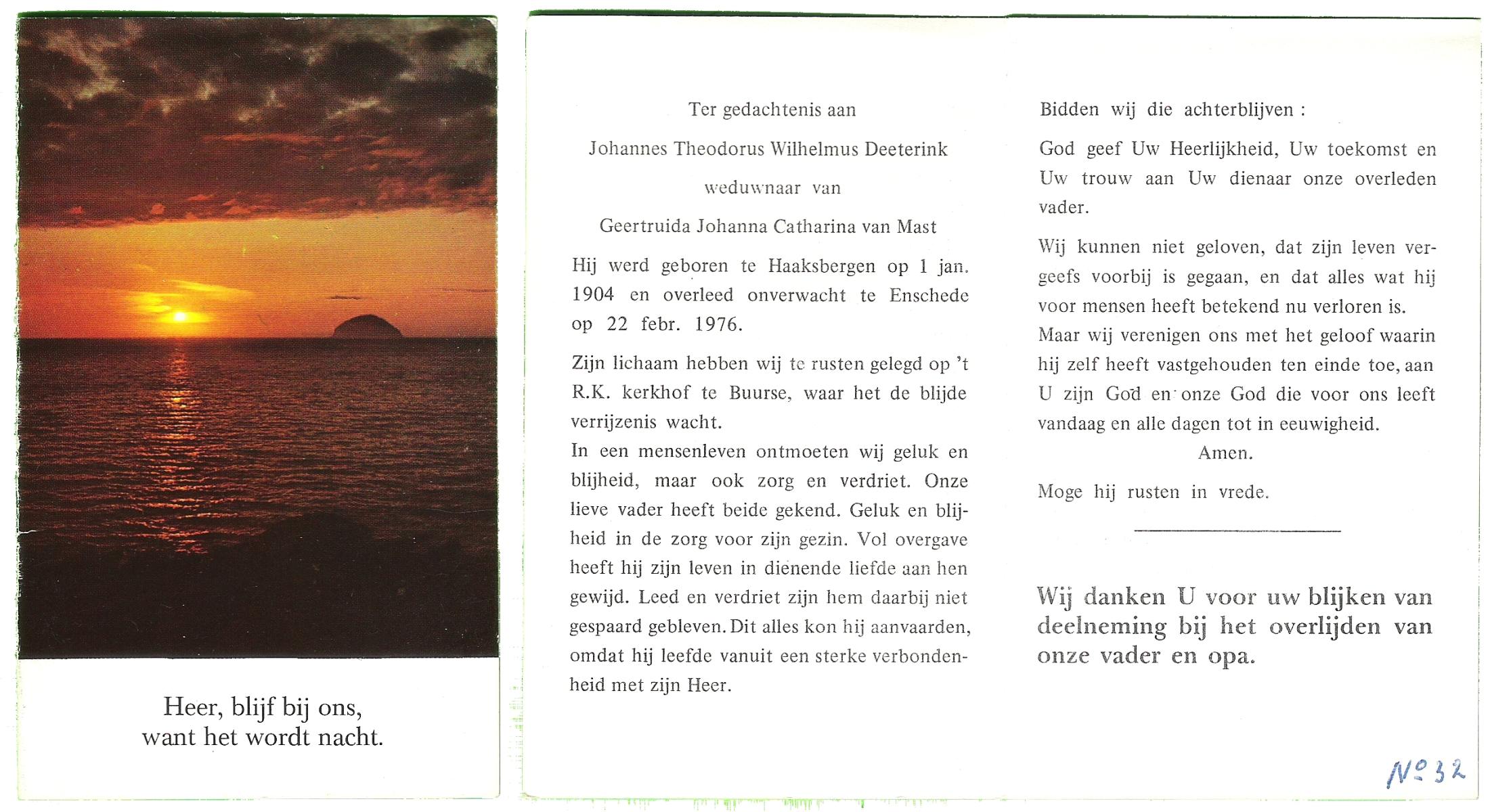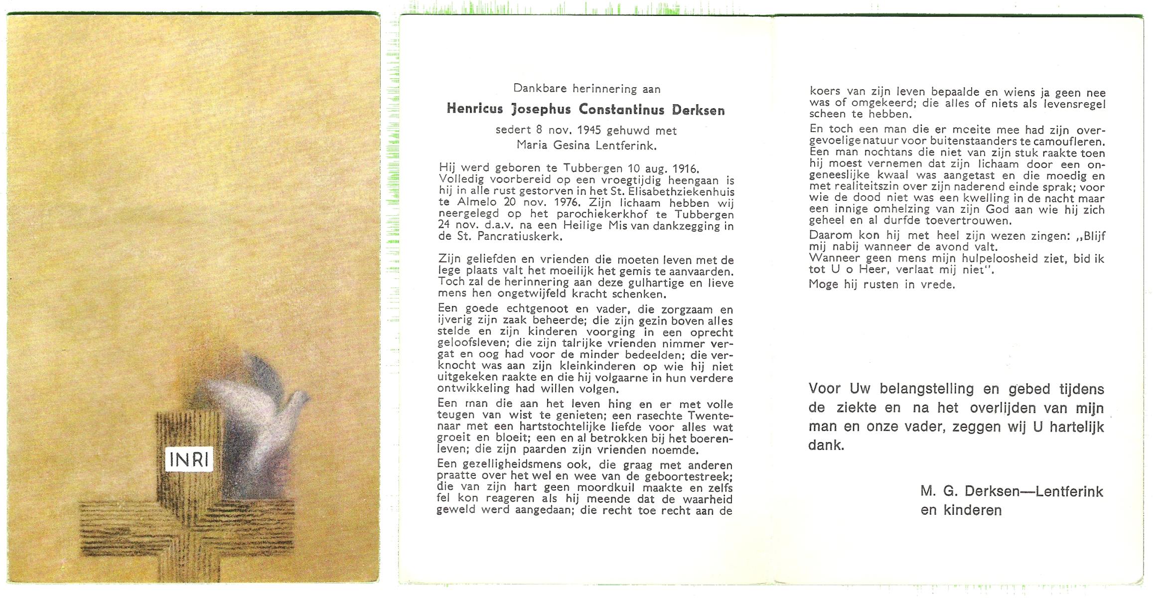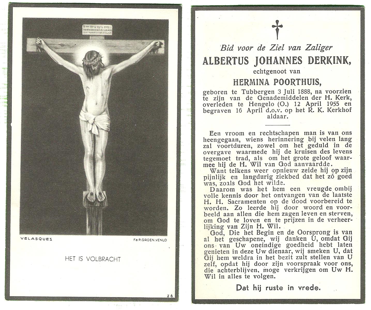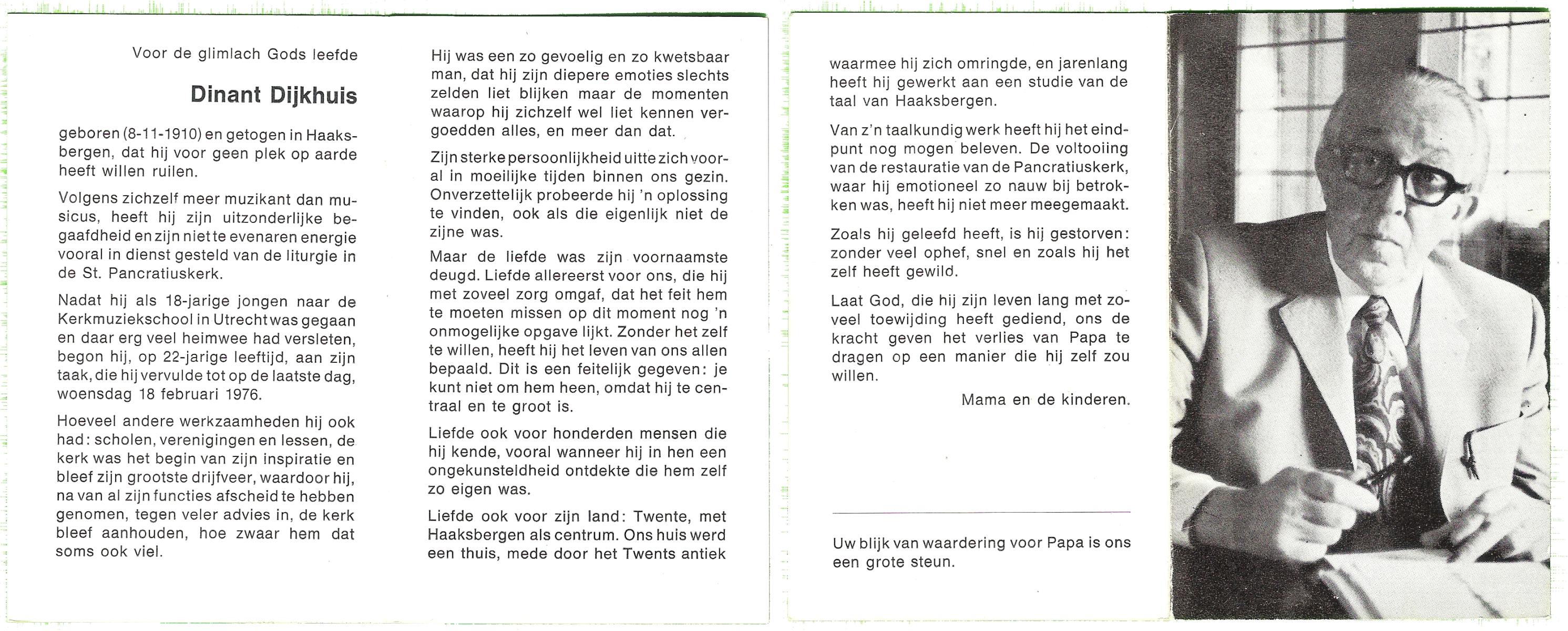 DIJKHUIS, Dinant, geboren op 8-11-1910 te Haaksbergen, overleden op 18-2-1976 te Haaksbergen op 65-jarige leeftijd.