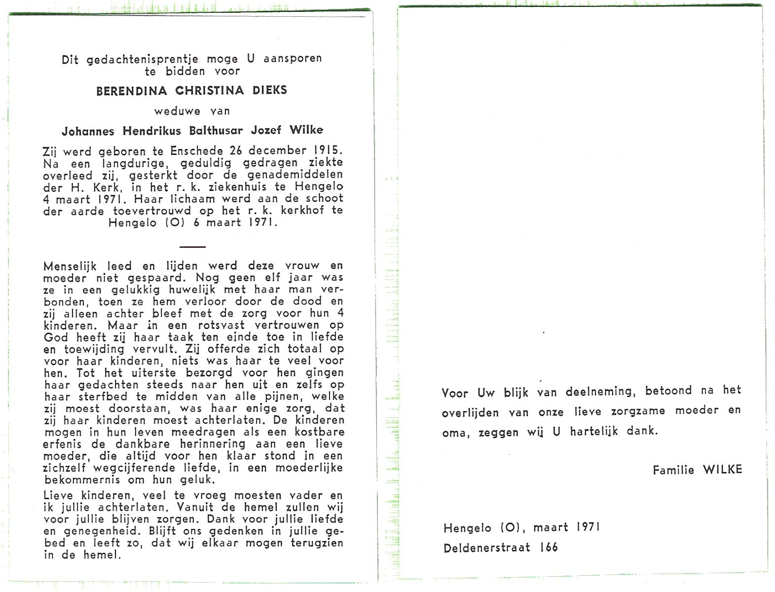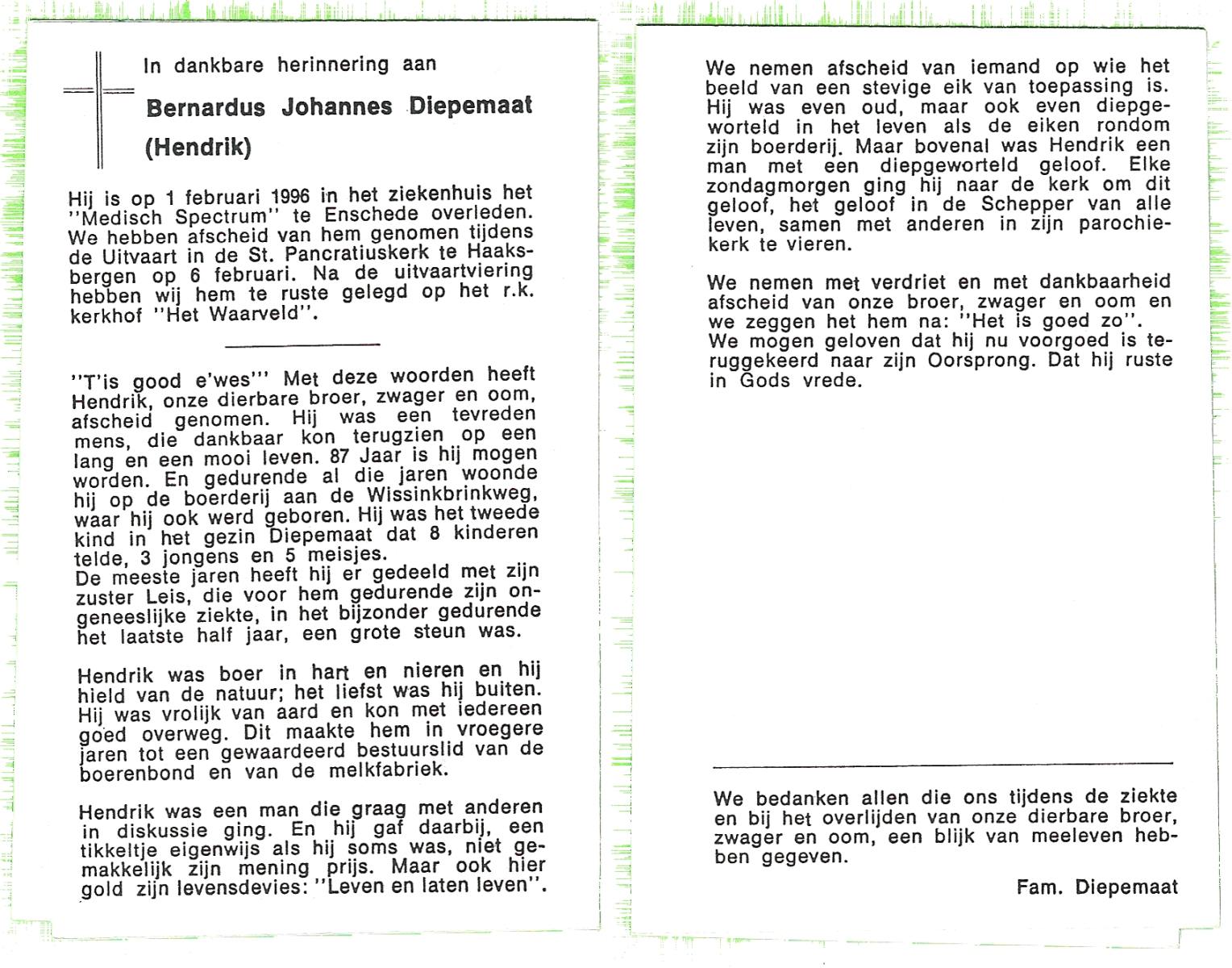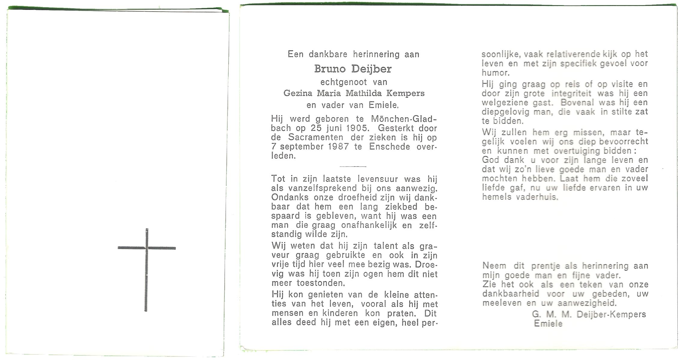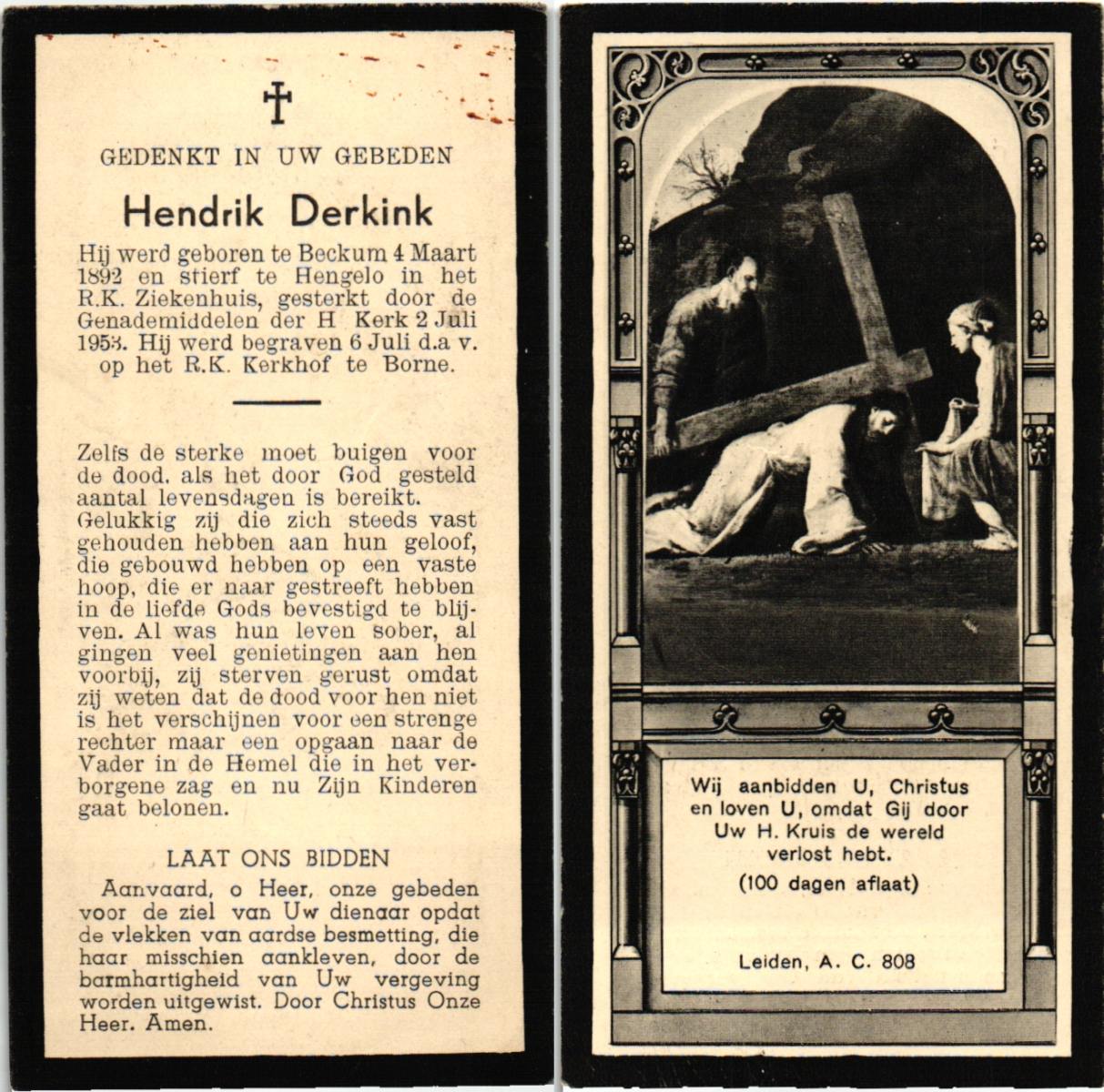 DIRKS, Hendrikus Bernard Jozef, geboren op 23-3-1907 te Borne, overleden op 8-2-1975 te Hengelo (Ov.) op 67-jarige leeftijd, begraven op 12-2-1975 te Borne.